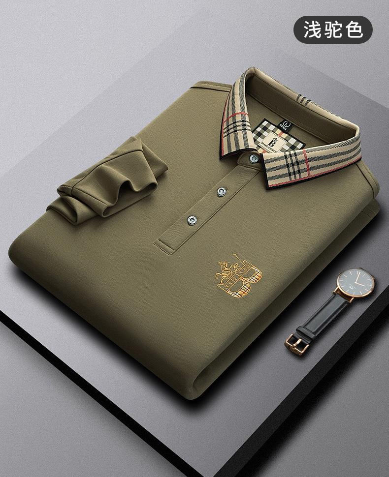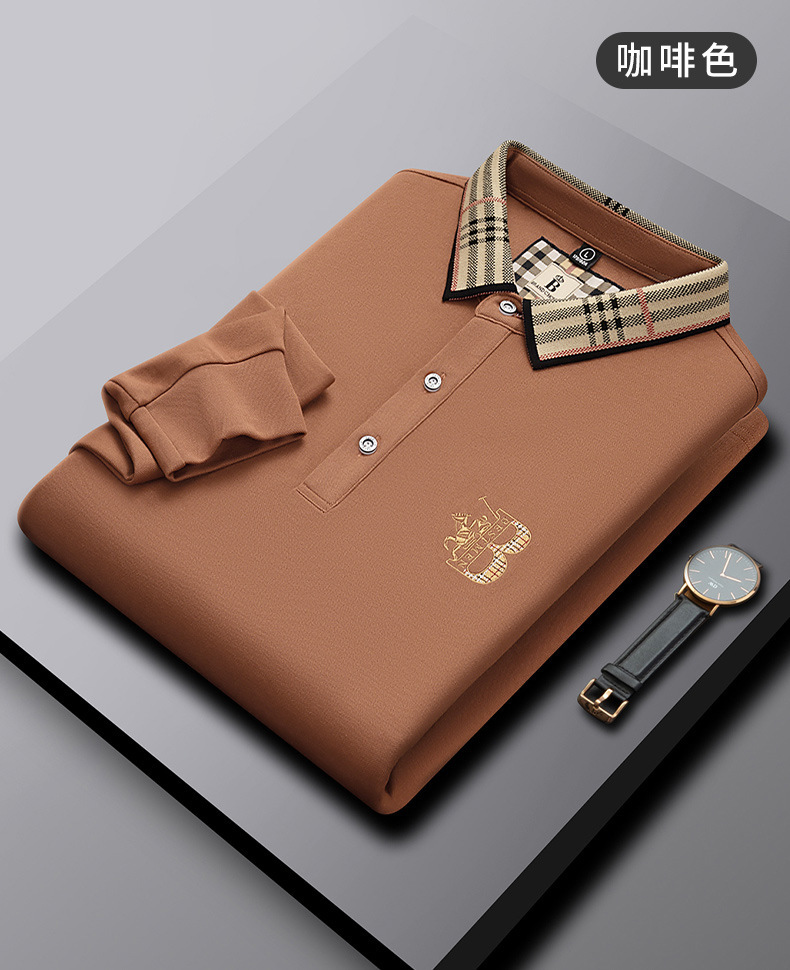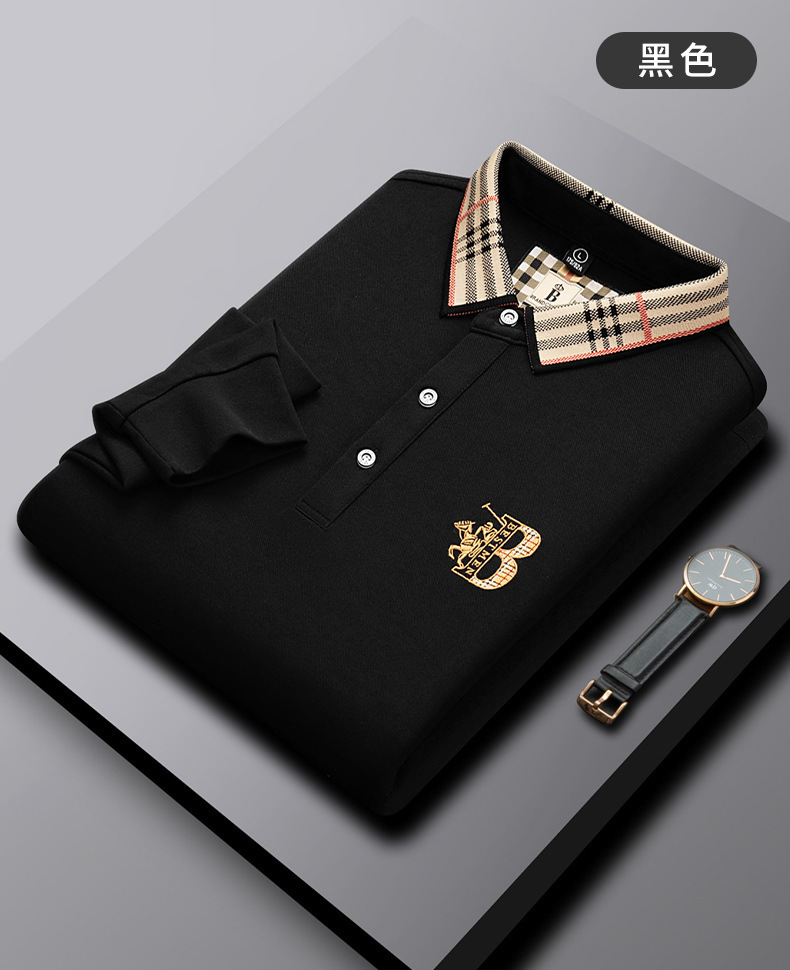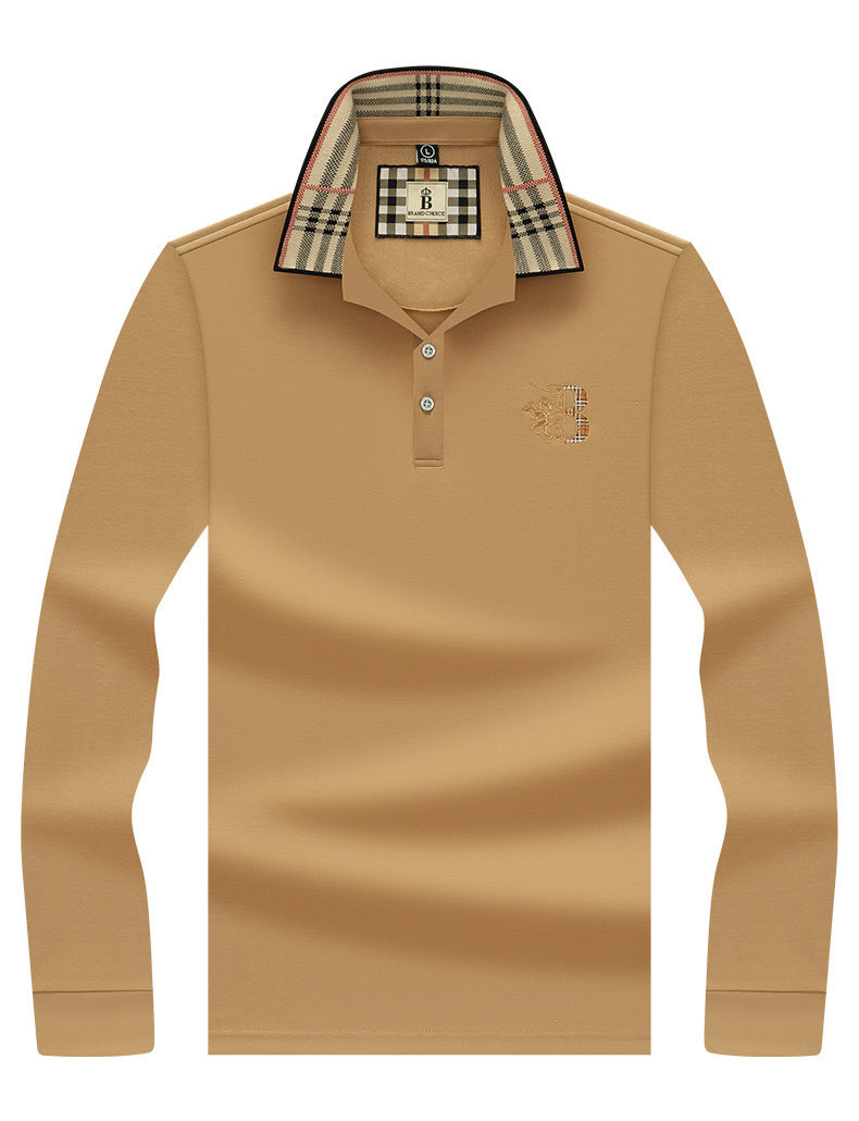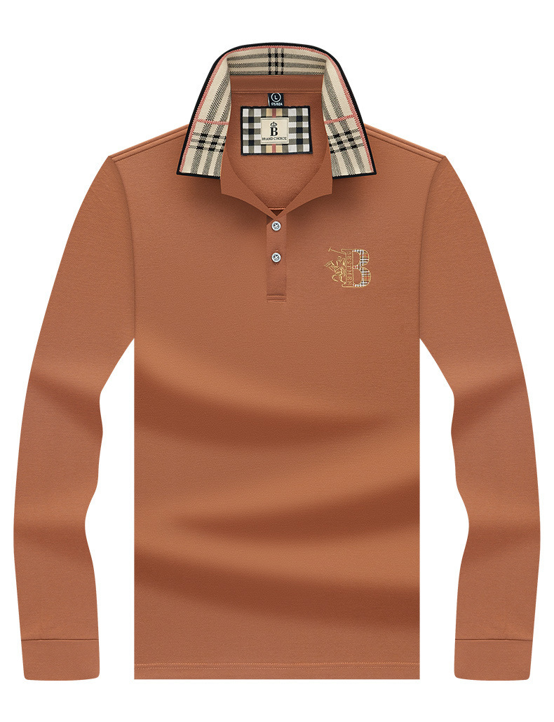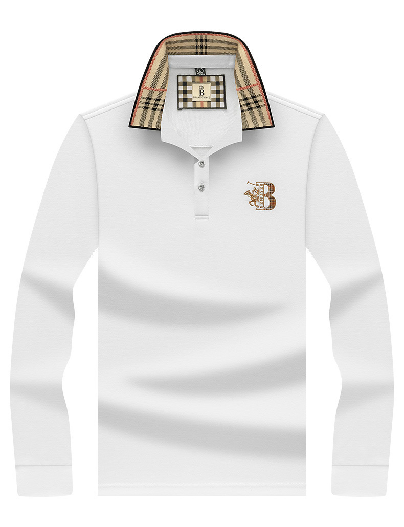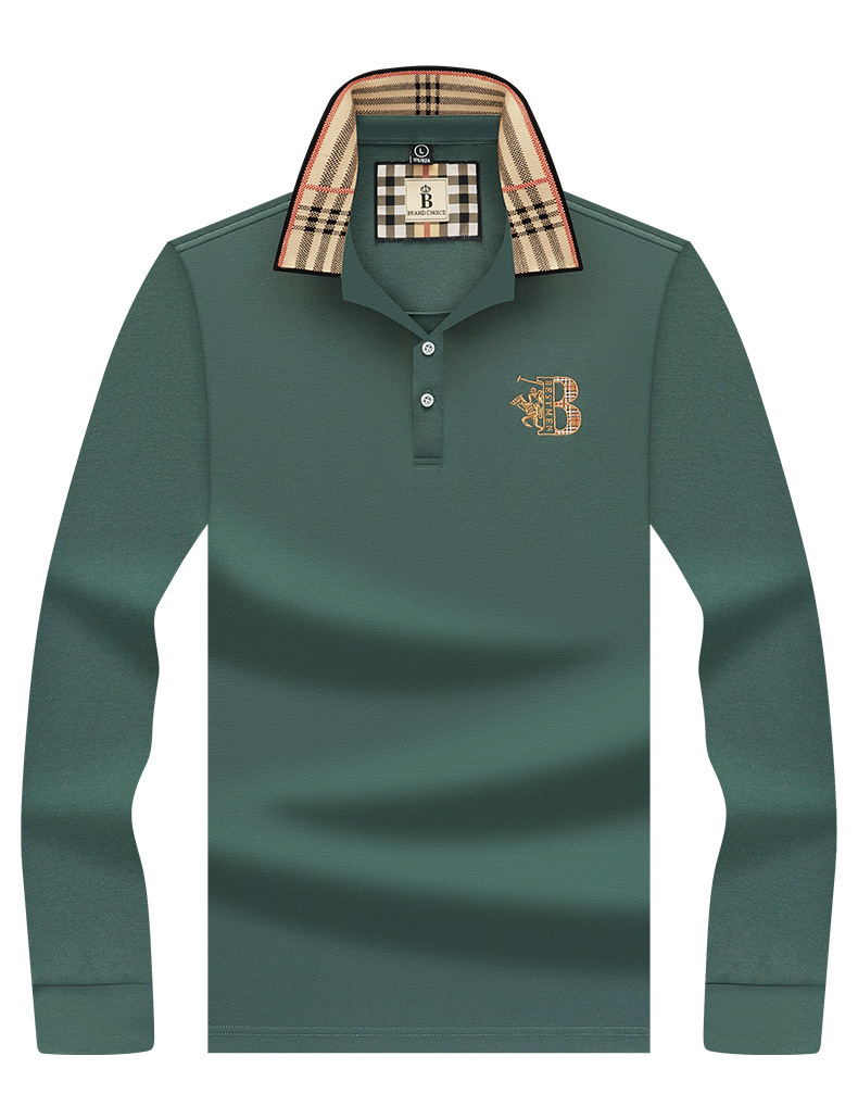 폴로 셔츠 남성 체크 칼라 이너 남성 폴로 셔츠 긴팔 티셔츠 비즈니스 캐주얼 자수