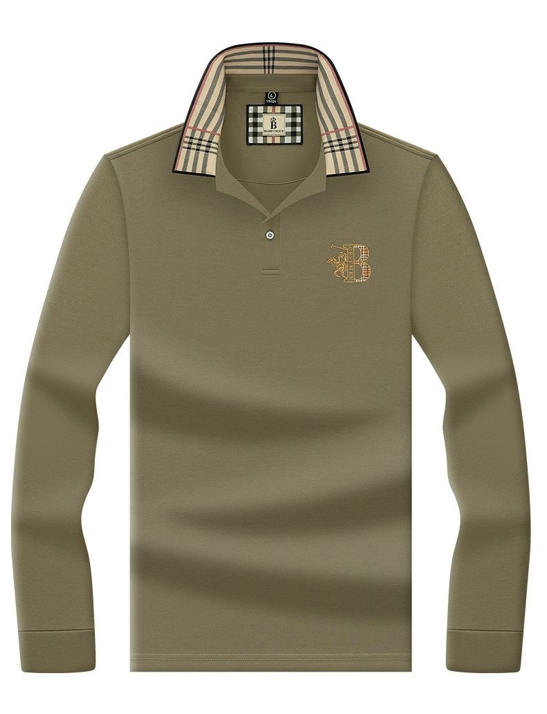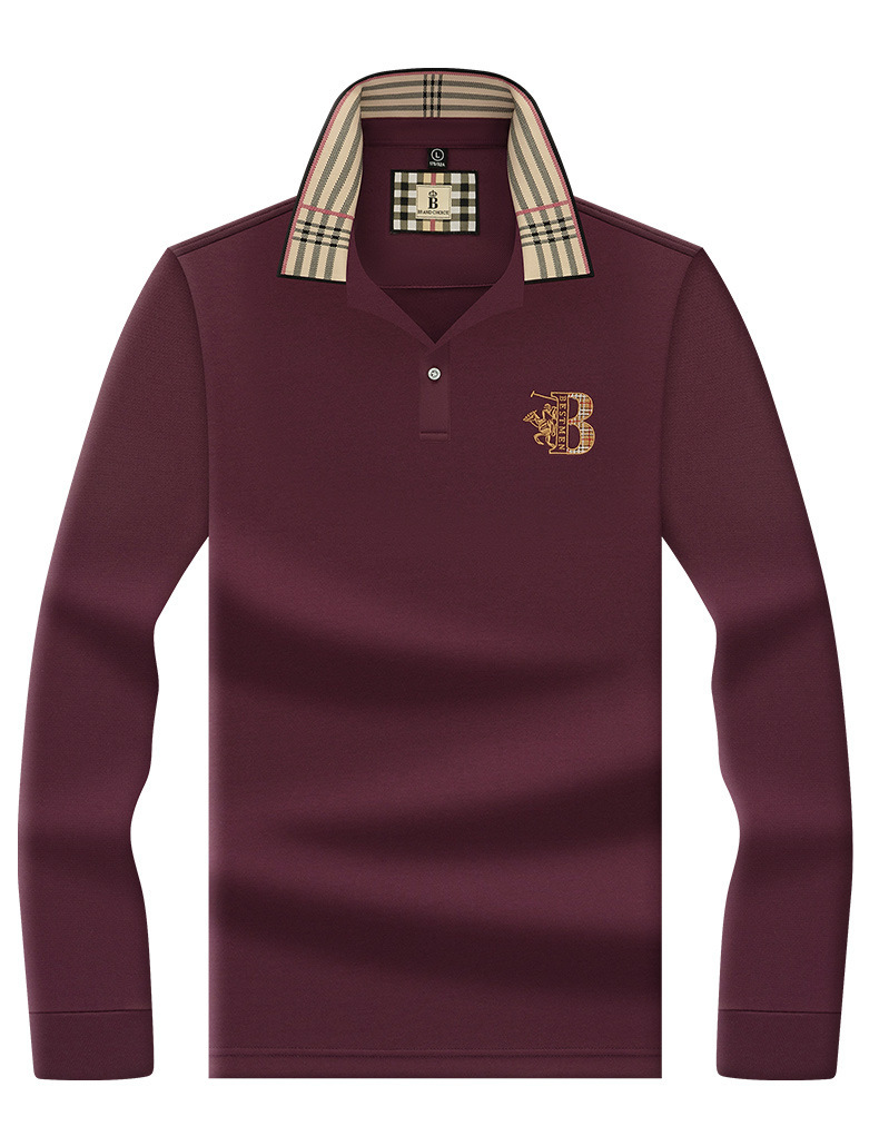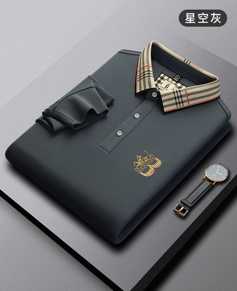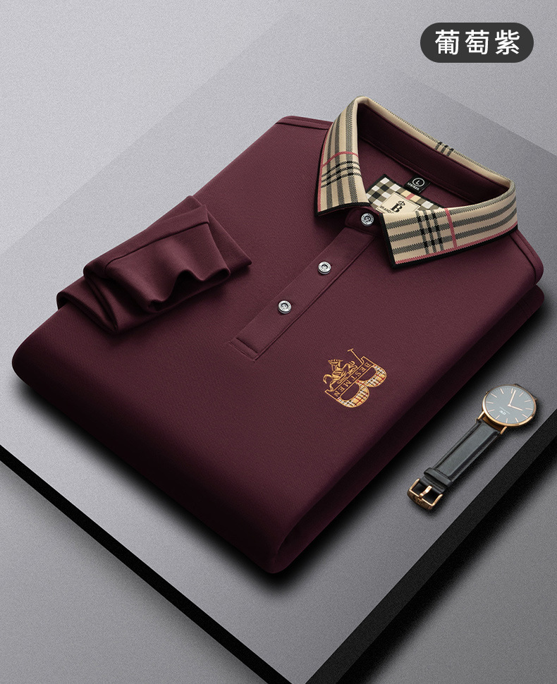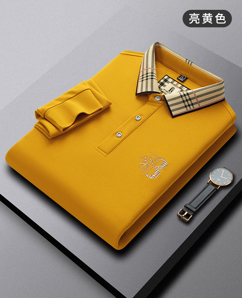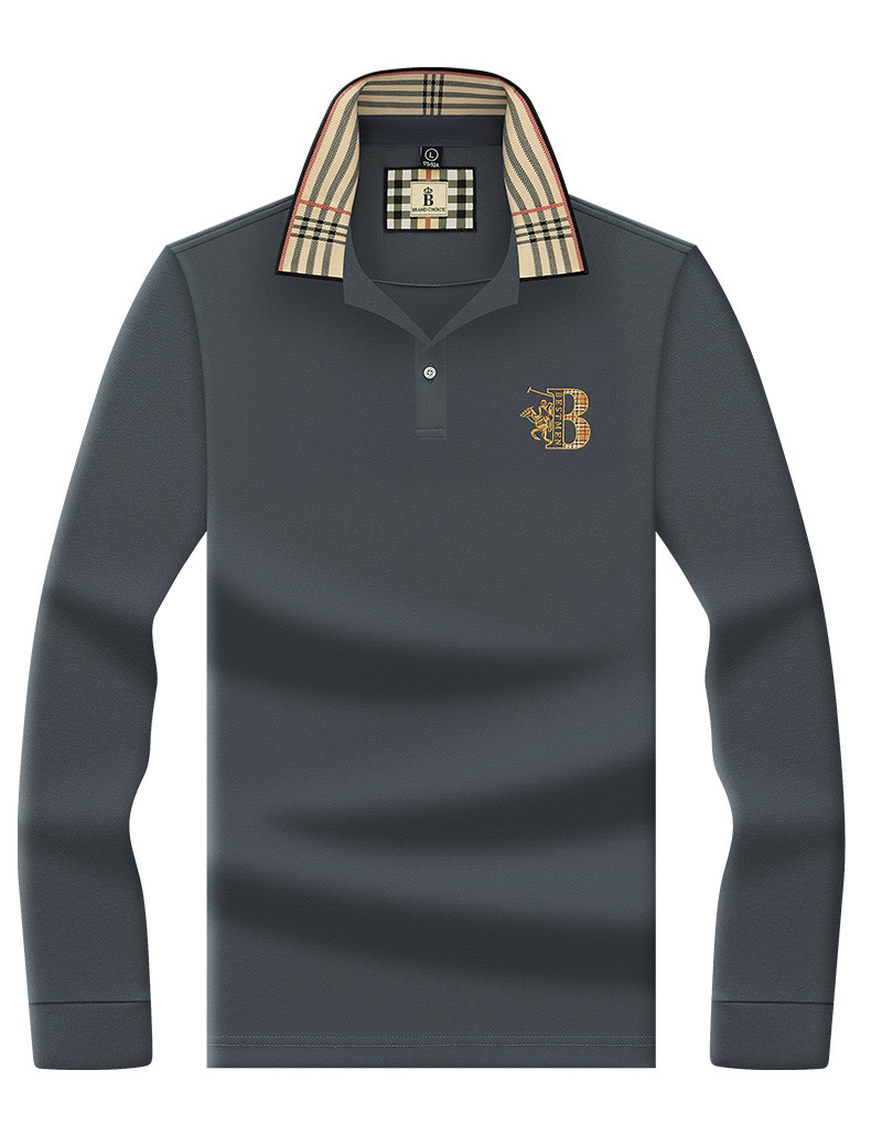 폴로 셔츠 남성 체크 칼라 이너 남성 폴로 셔츠 긴팔 티셔츠 비즈니스 캐주얼 자수