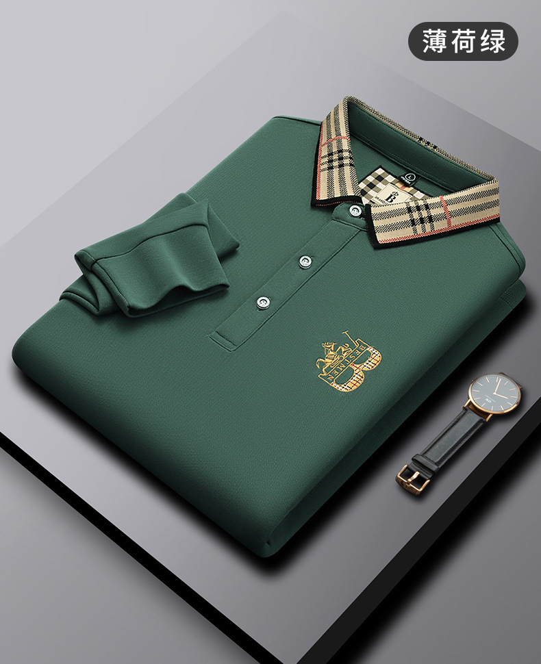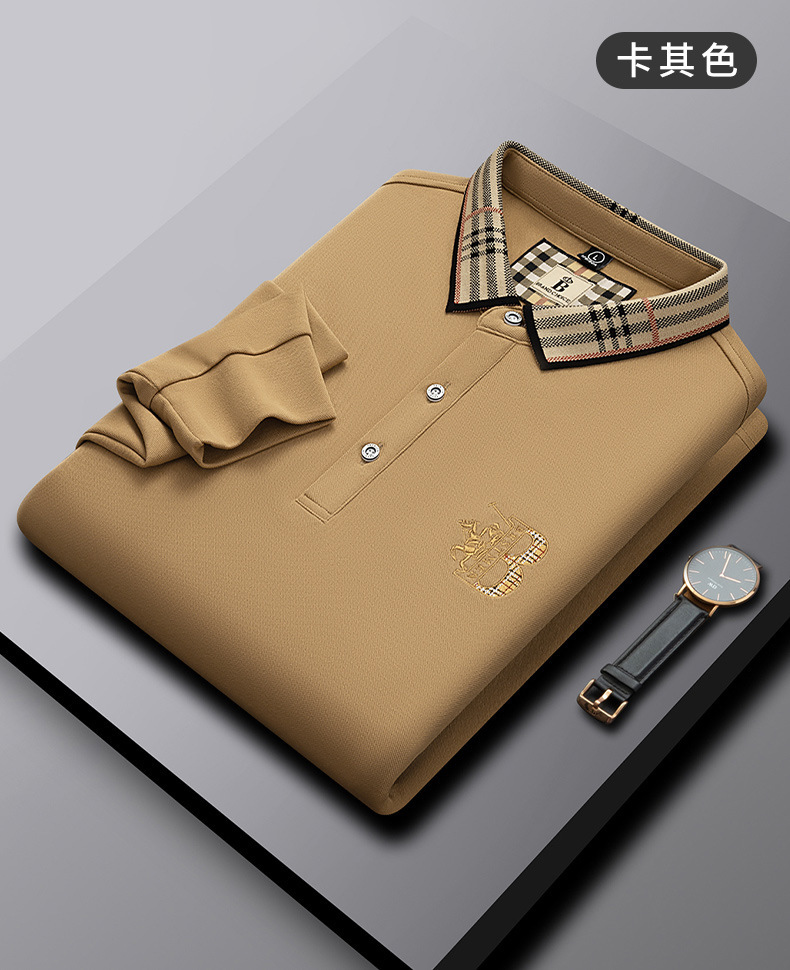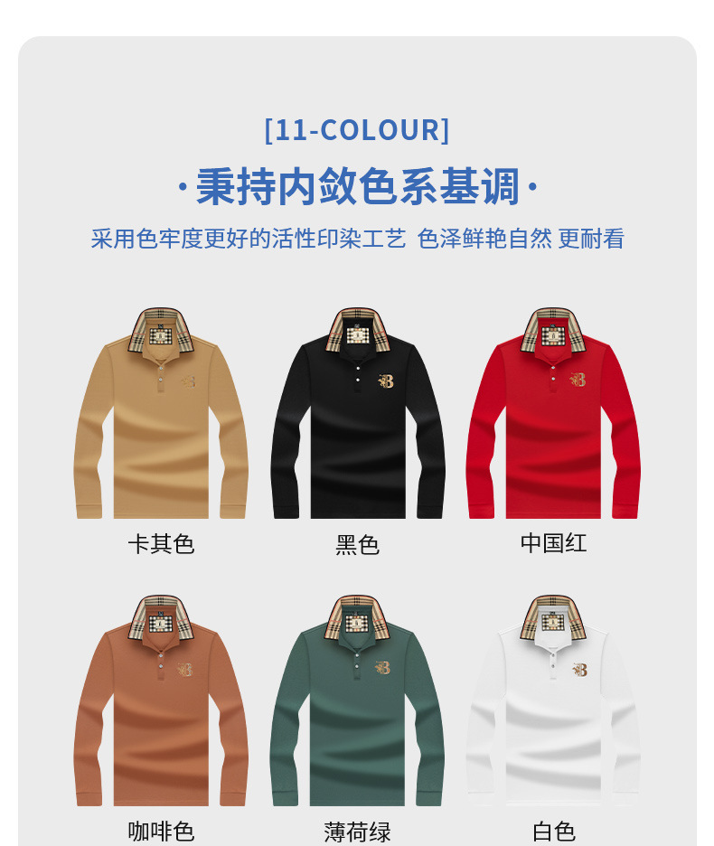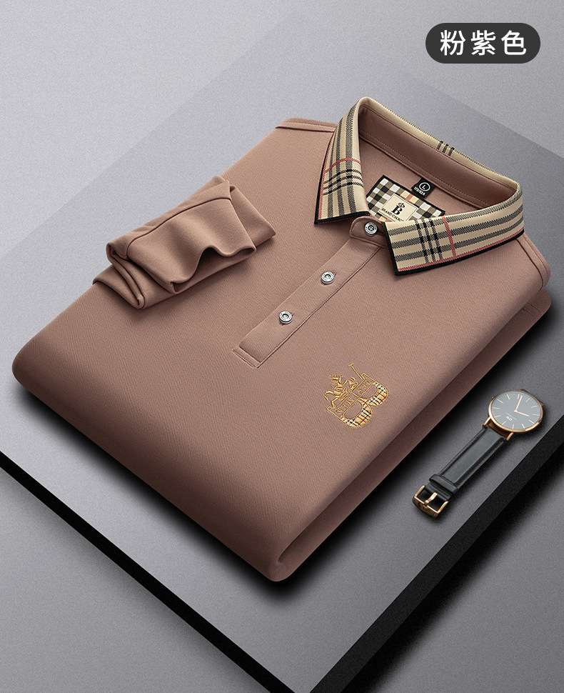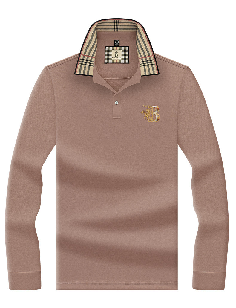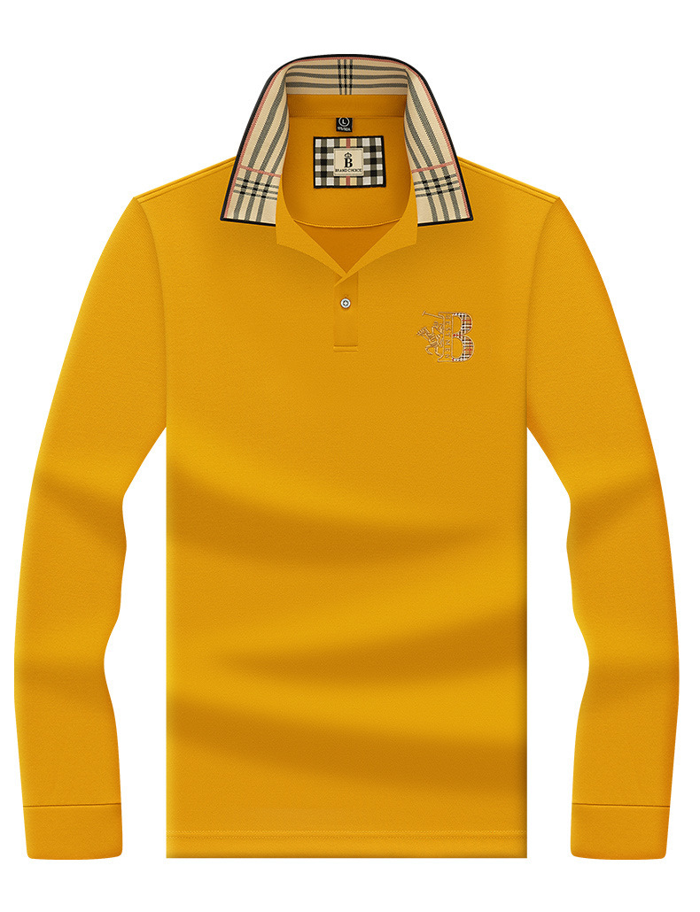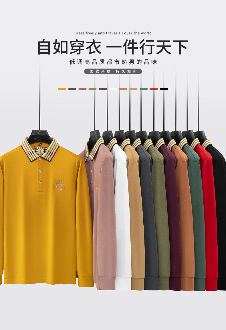 폴로 셔츠 남성 체크 칼라 이너 남성 폴로 셔츠 긴팔 티셔츠 비즈니스 캐주얼 자수