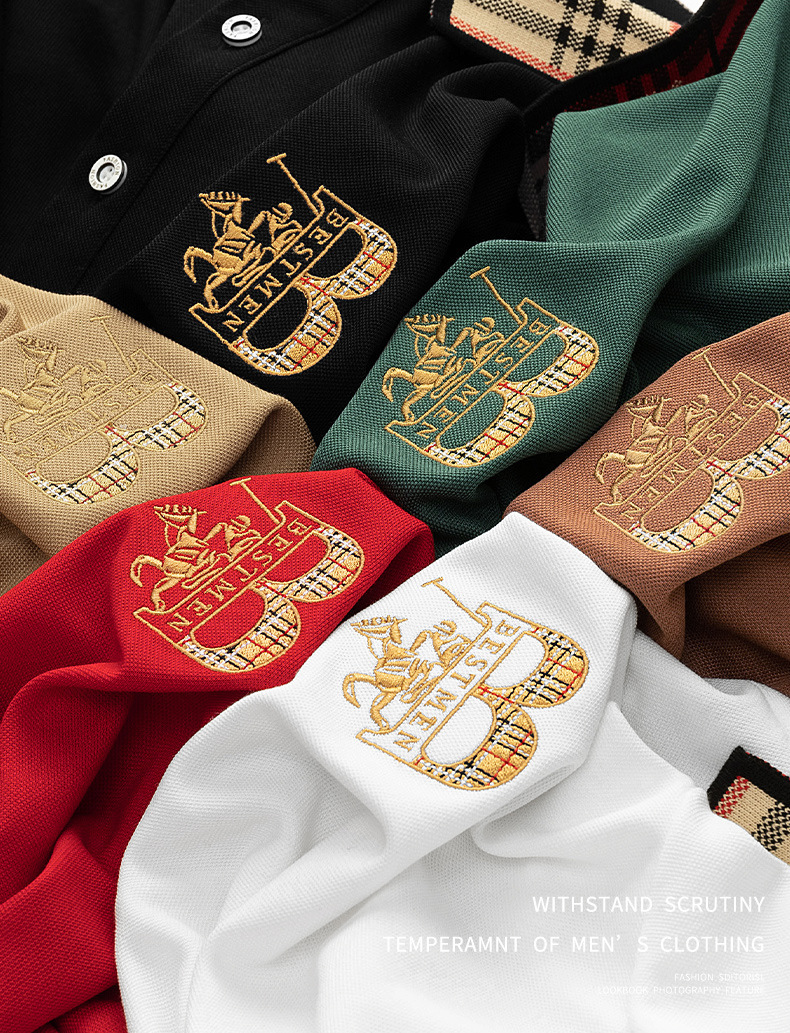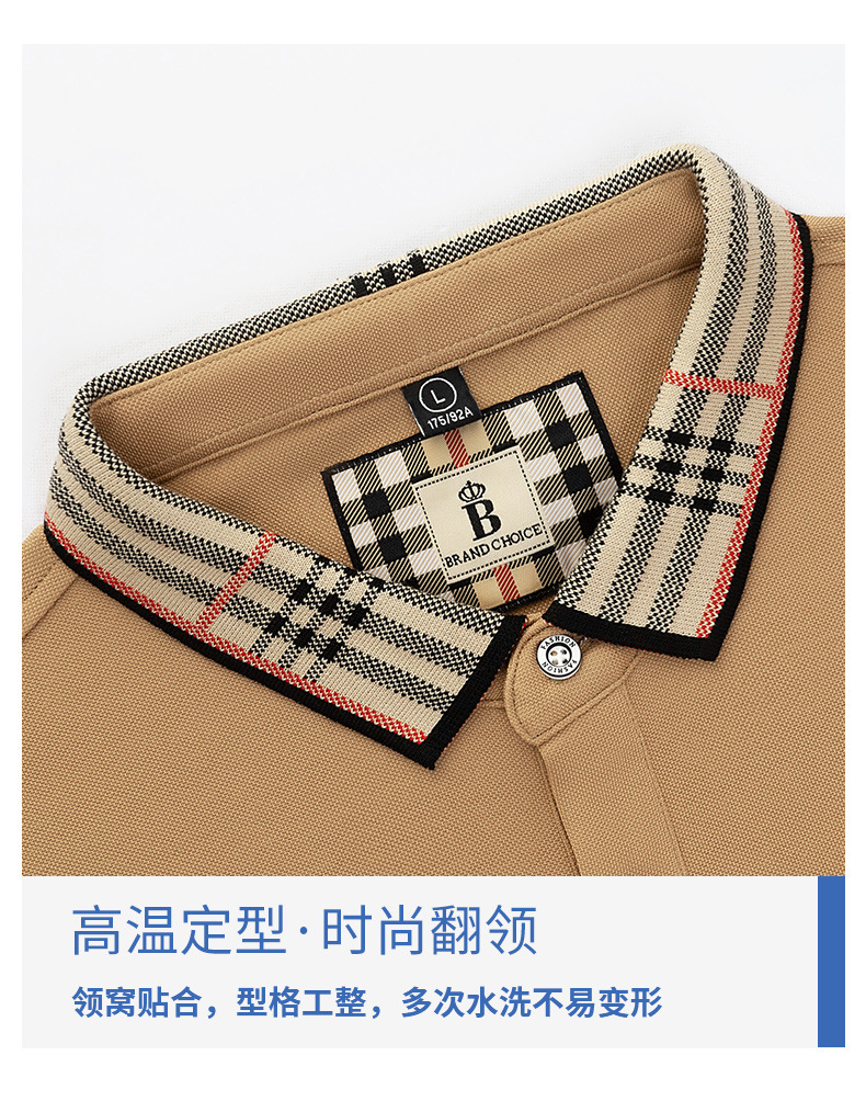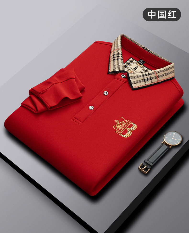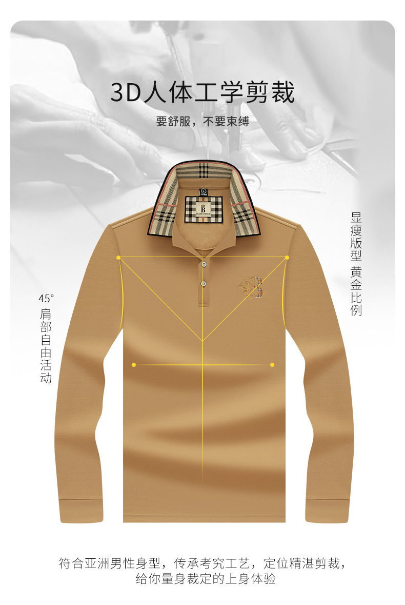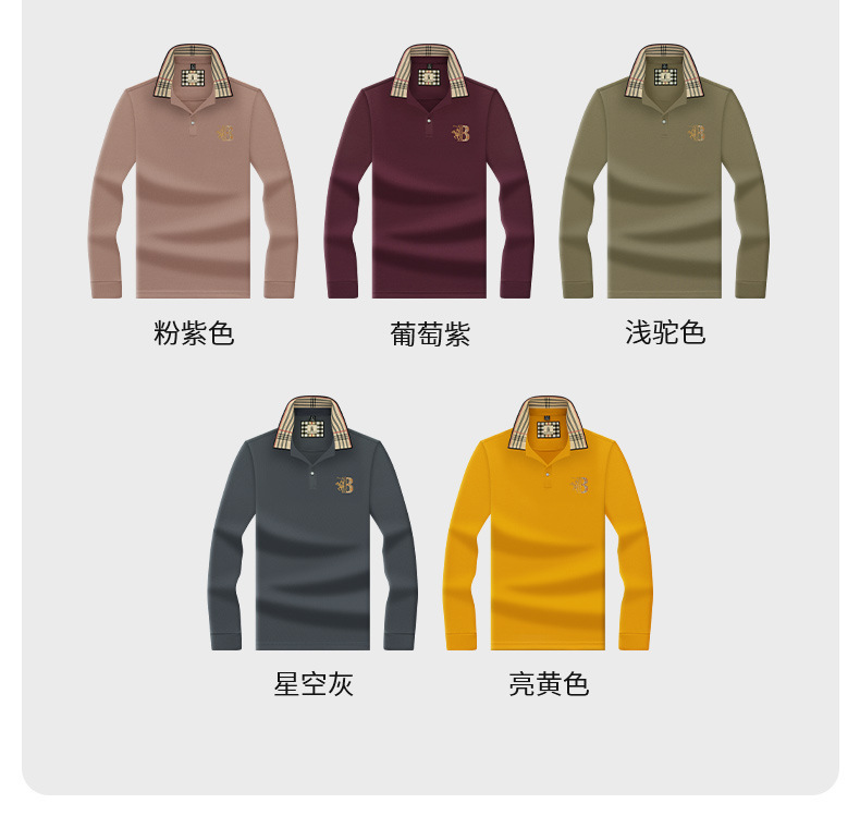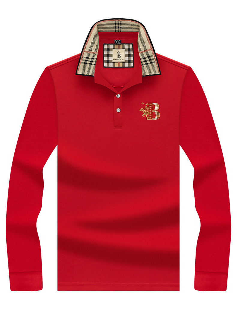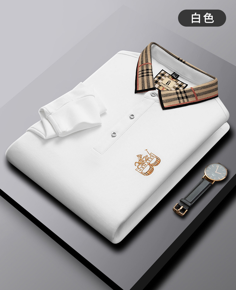 폴로 셔츠 남성 체크 칼라 이너 남성 폴로 셔츠 긴팔 티셔츠 비즈니스 캐주얼 자수