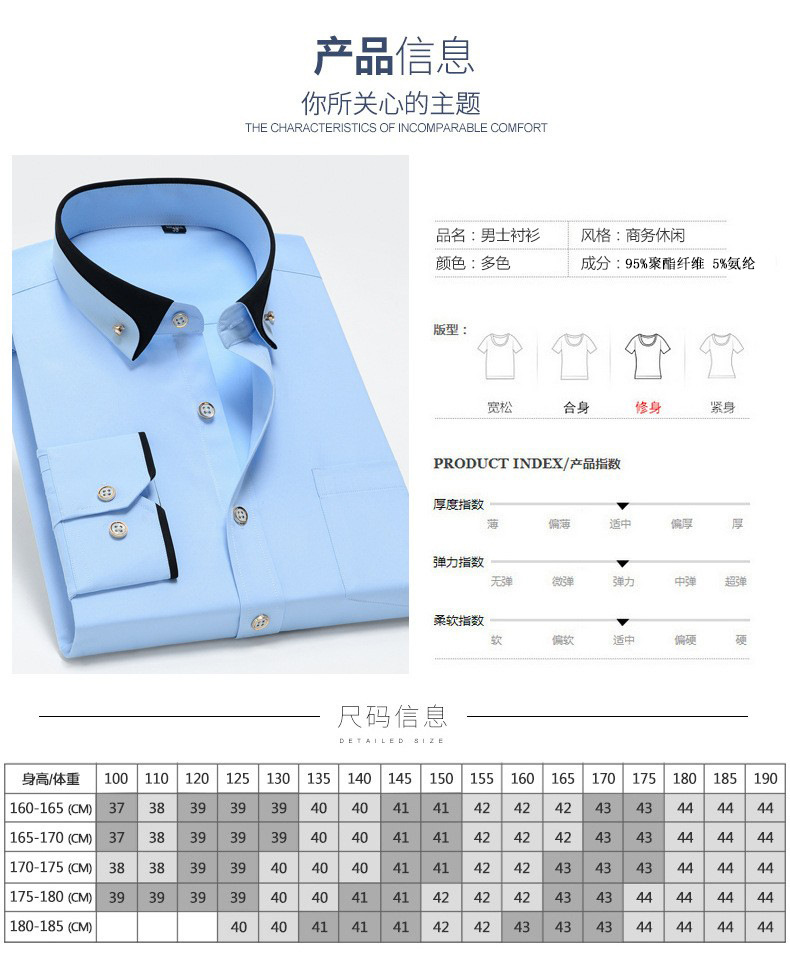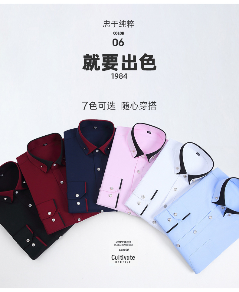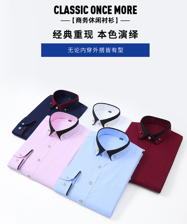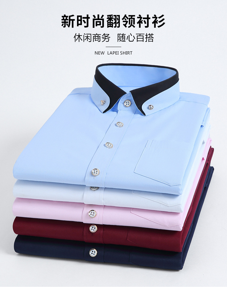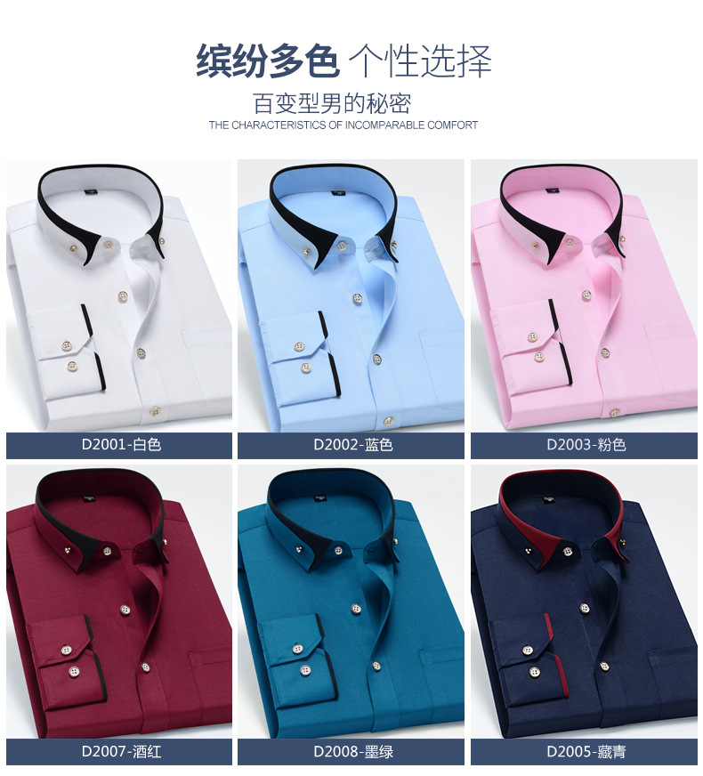 뉴 남성 칼라 스트레치 긴팔 셔츠 비즈니스 캐주얼 다림질 프리 셔츠