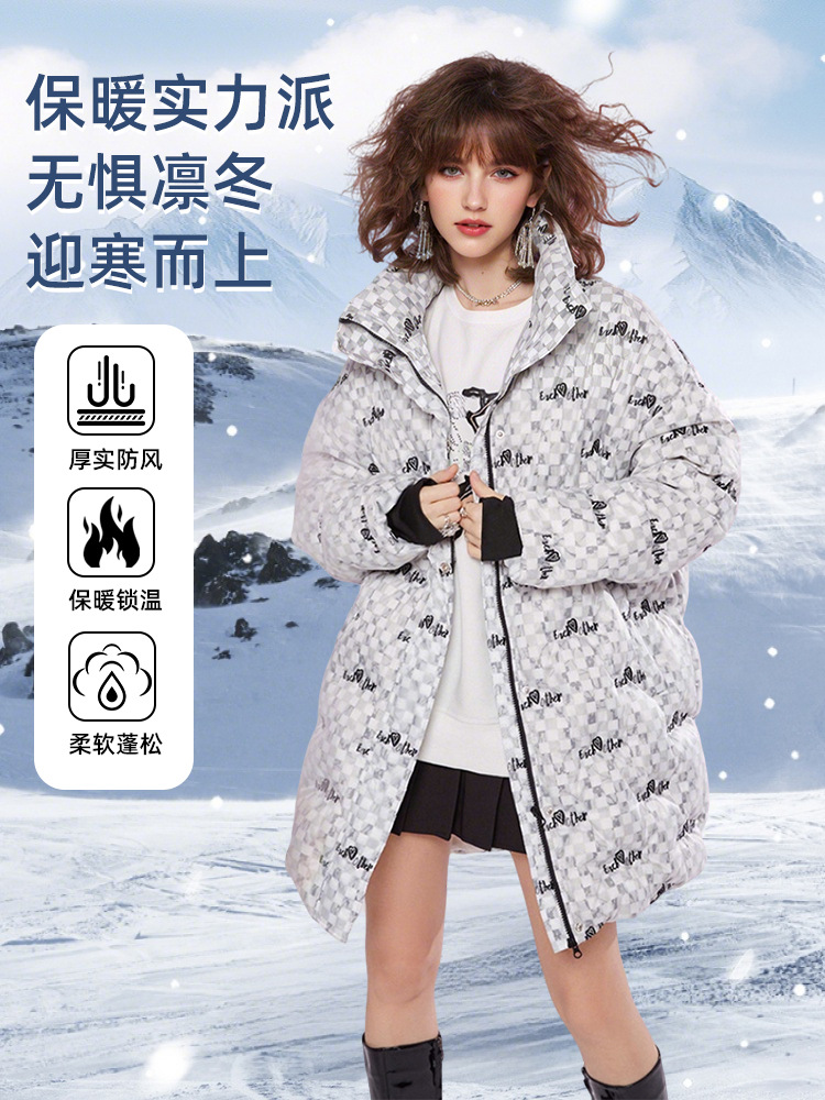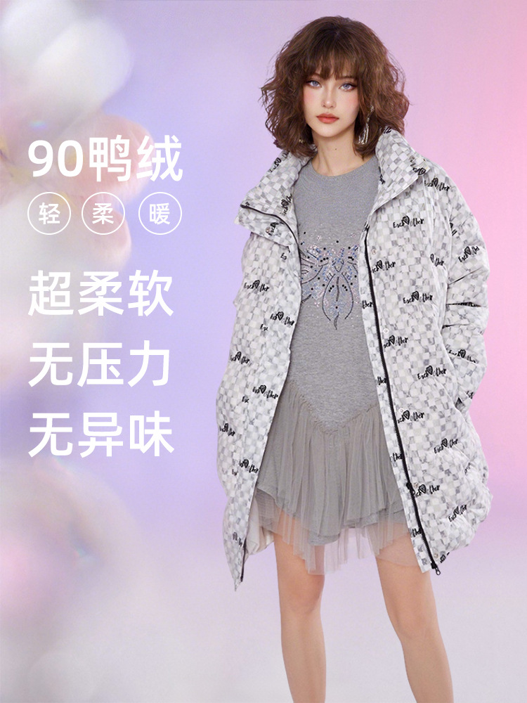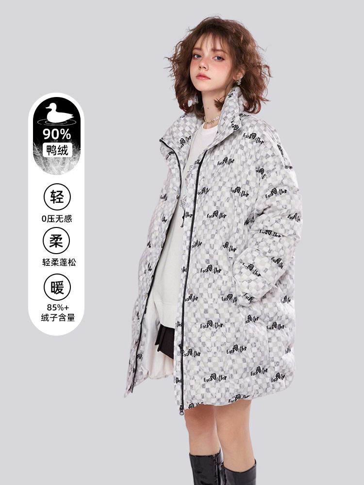 2025 신상품 유미 롱 체판 자수 고급 감각의 스타일리시한 빵옷 내추럴 아우터 다운