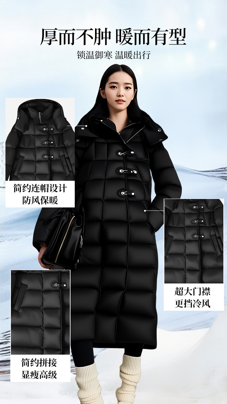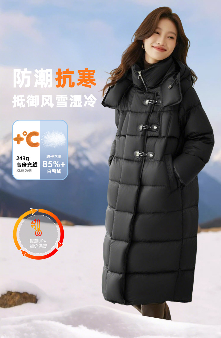 롱 기장의 화이트 오리털 패딩 여성 고급감 도톰한 루즈핏 살 커버 라지 사이즈 무릎 위로 내려오는 점퍼