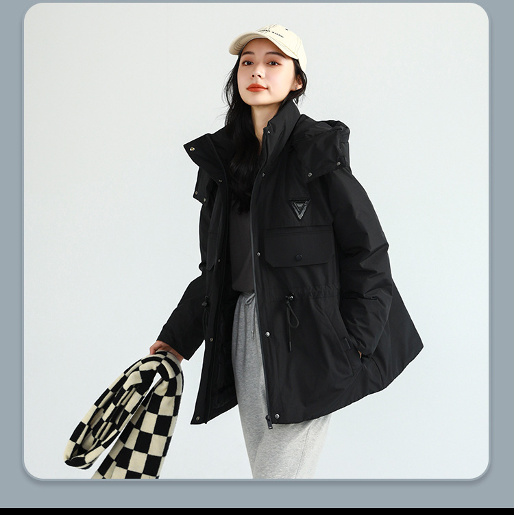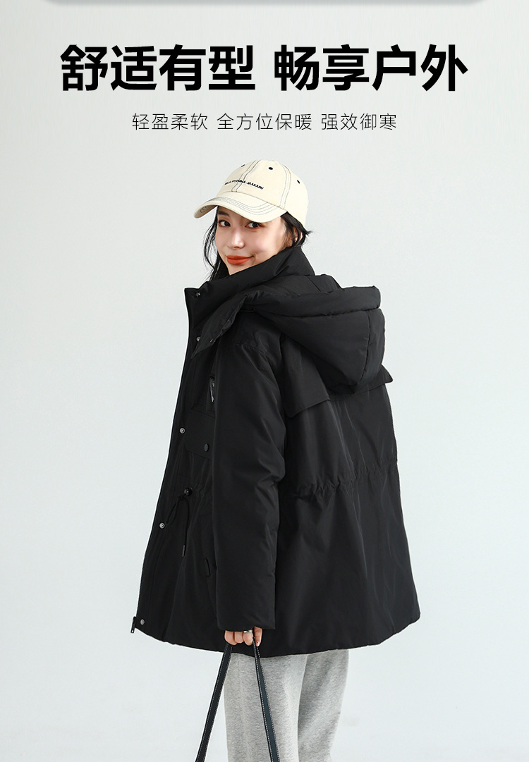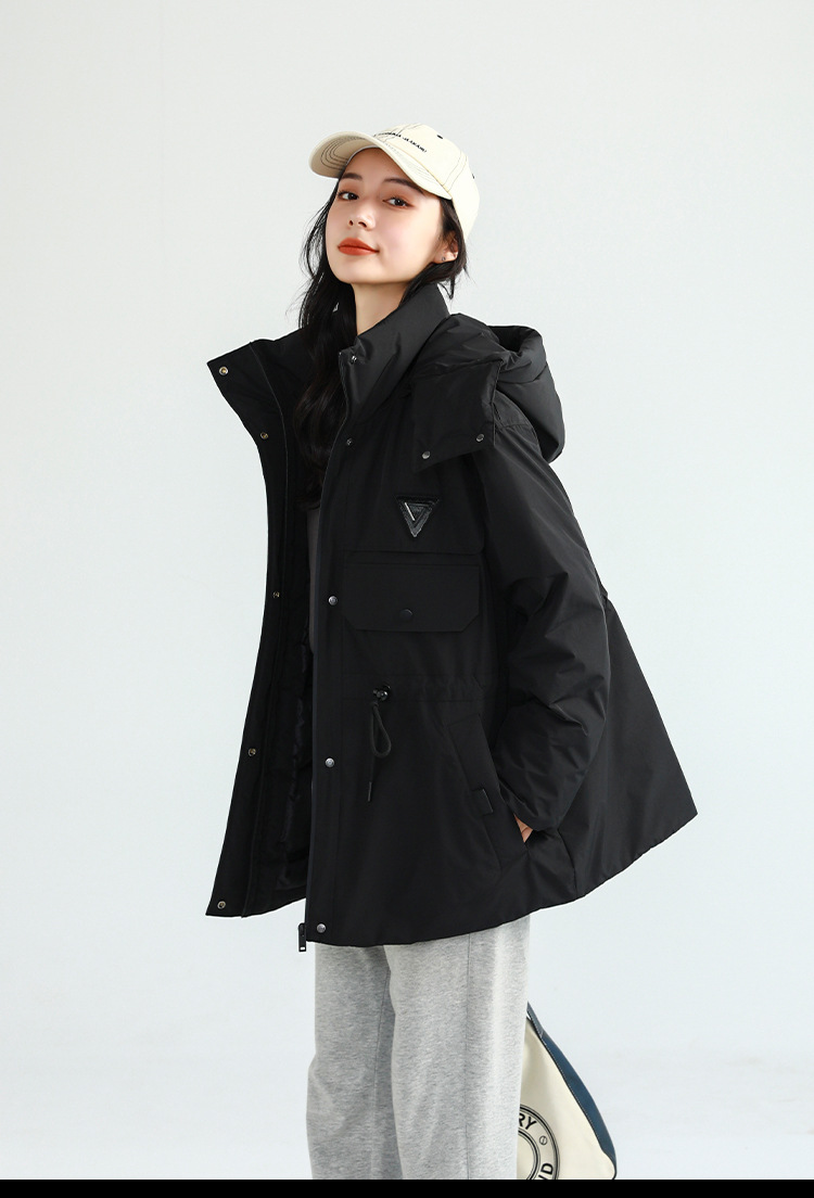 90 구스 다운 야상 극한대 방풍 스타일리시한 후드 하프 기장 다운점퍼입니다
