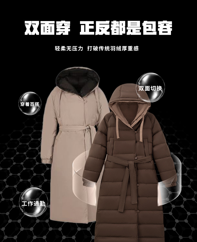 패딩에 롱 니하이 오리털로 심플한 분위기 여성복 신상품 후드 양면으로 착용