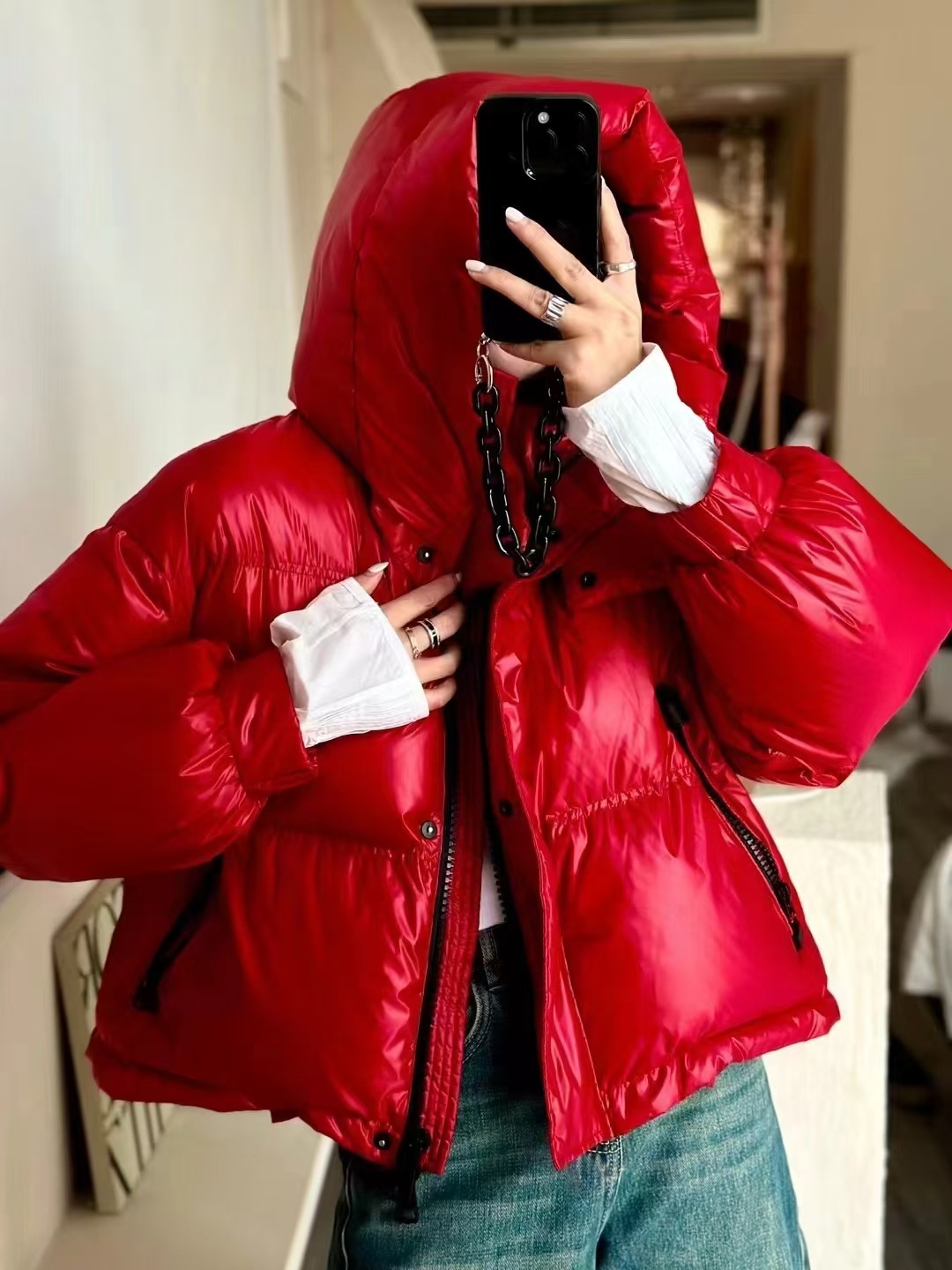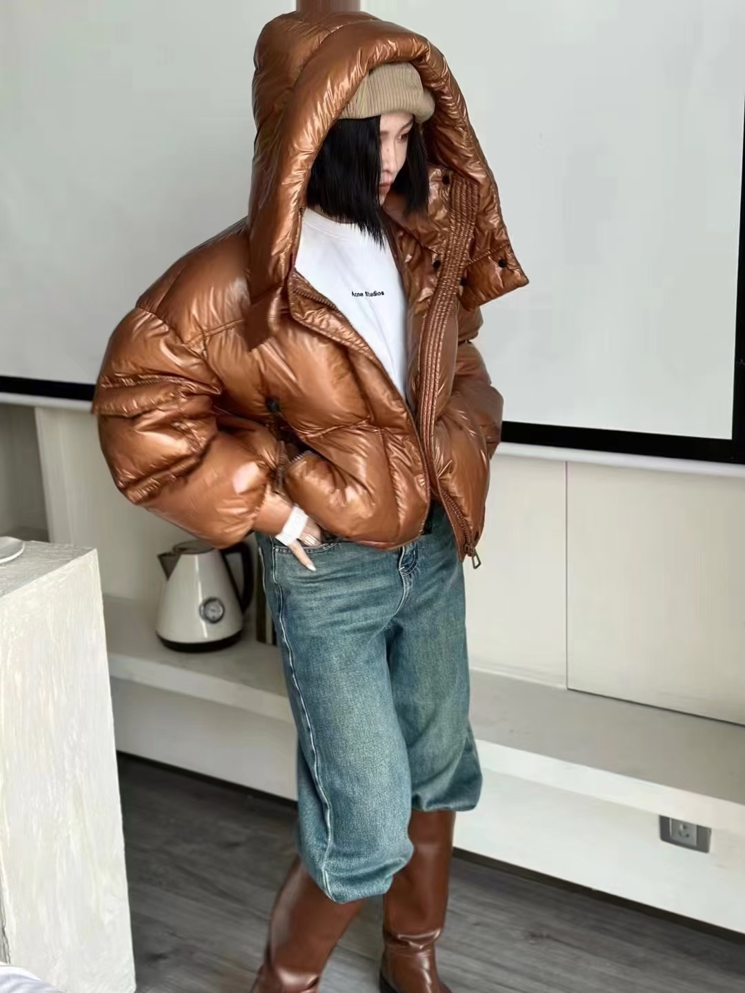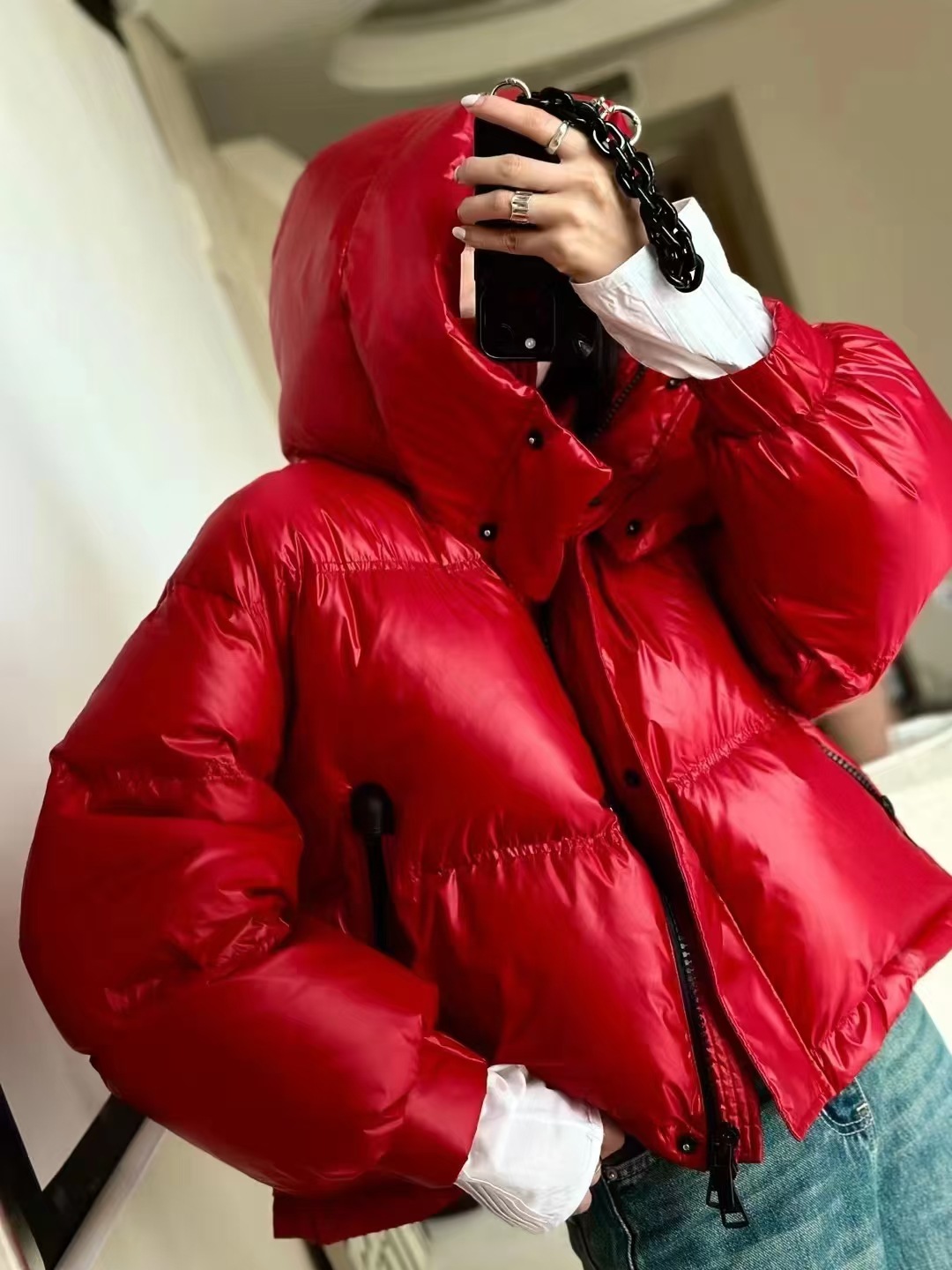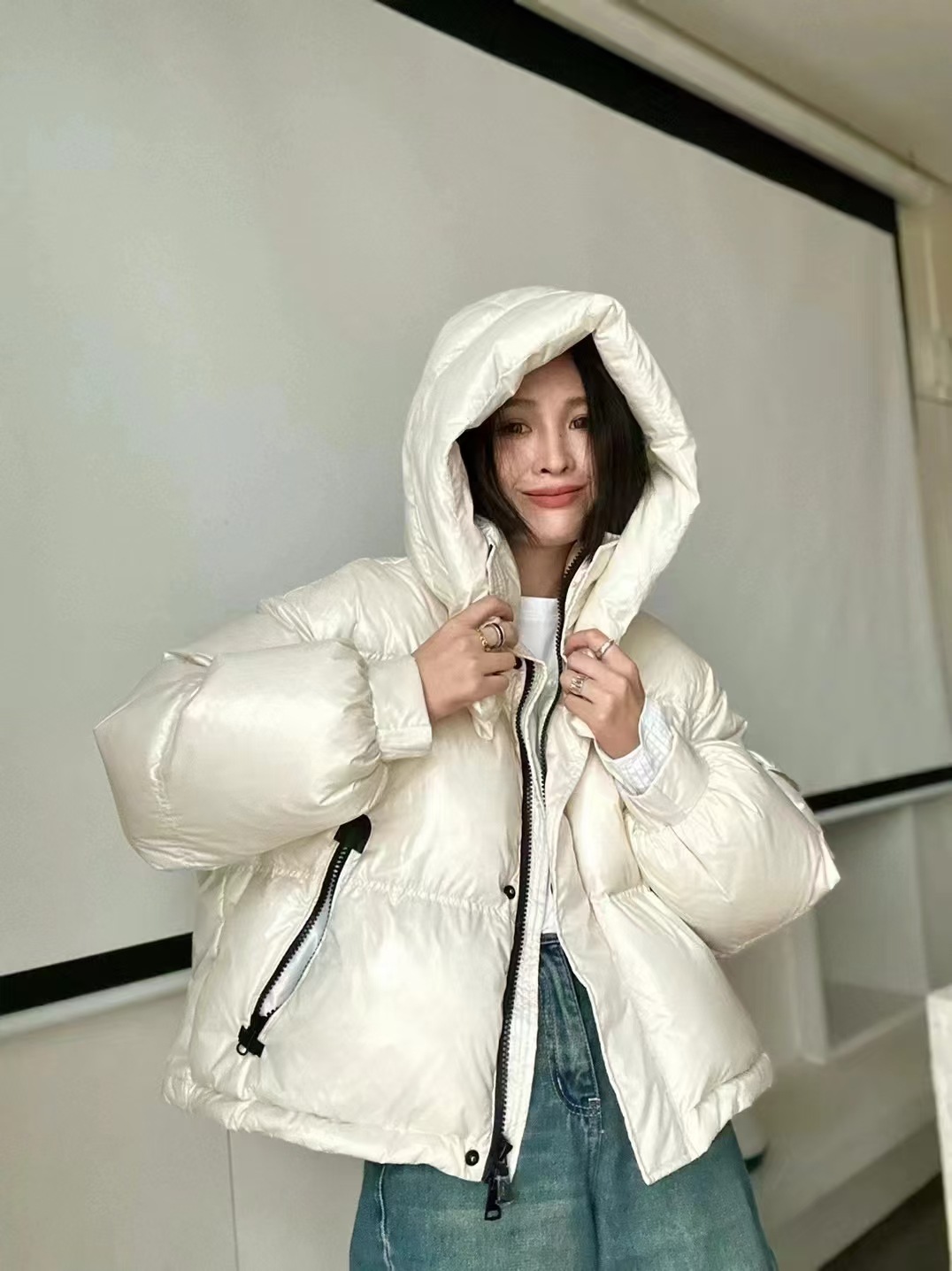 겨울옷 신상 여성복 패딩 후드 칼라식빵 점퍼 흰색 오리털 점퍼 반바지 신상