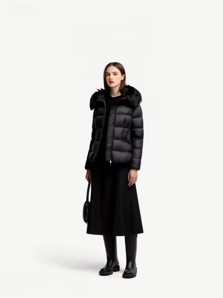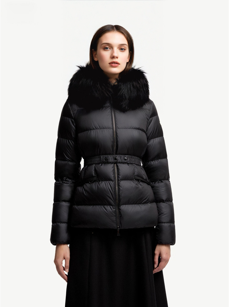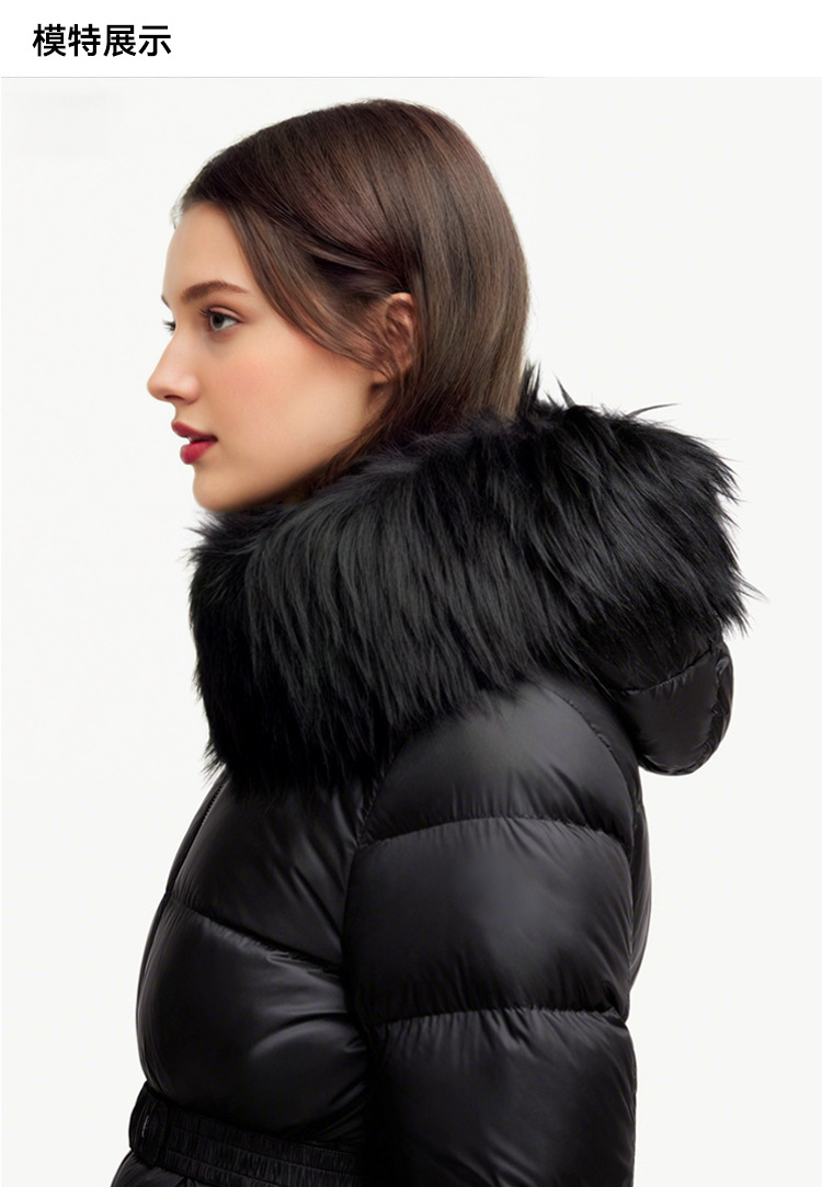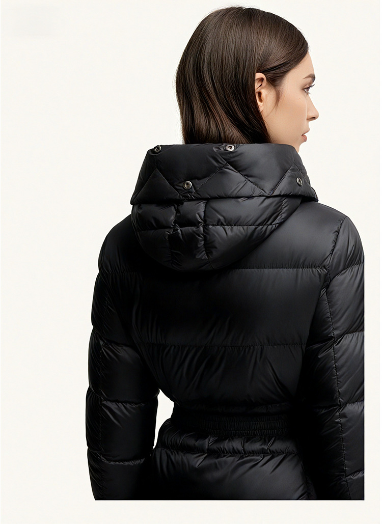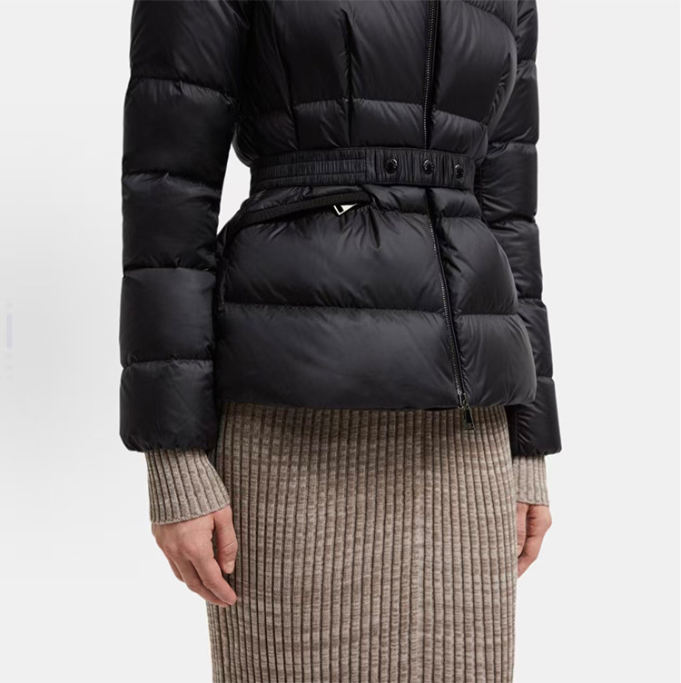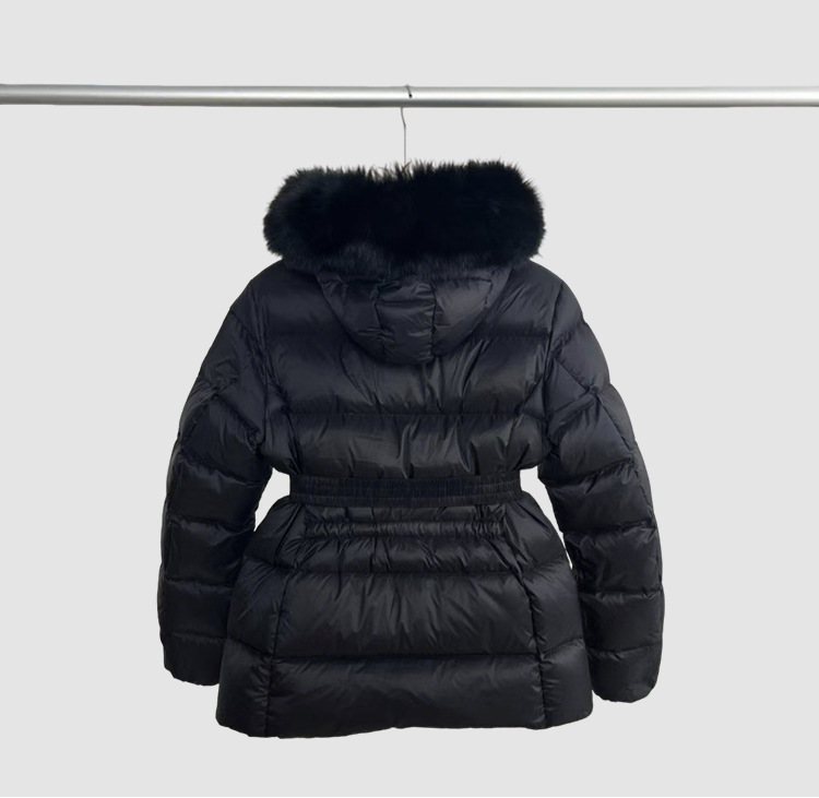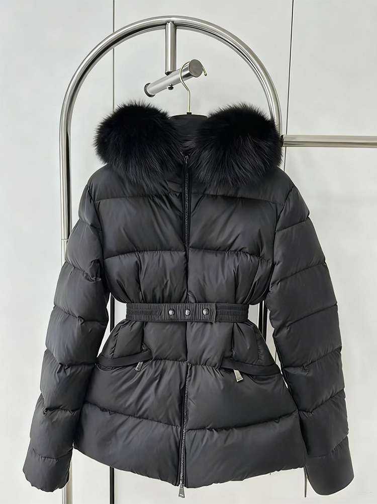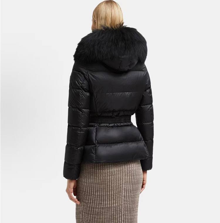 가을 겨울 boed 퍼 구스다운 신상 여성 보온 쇼트 후드 슬림핏 벨트 다운 점퍼입니다