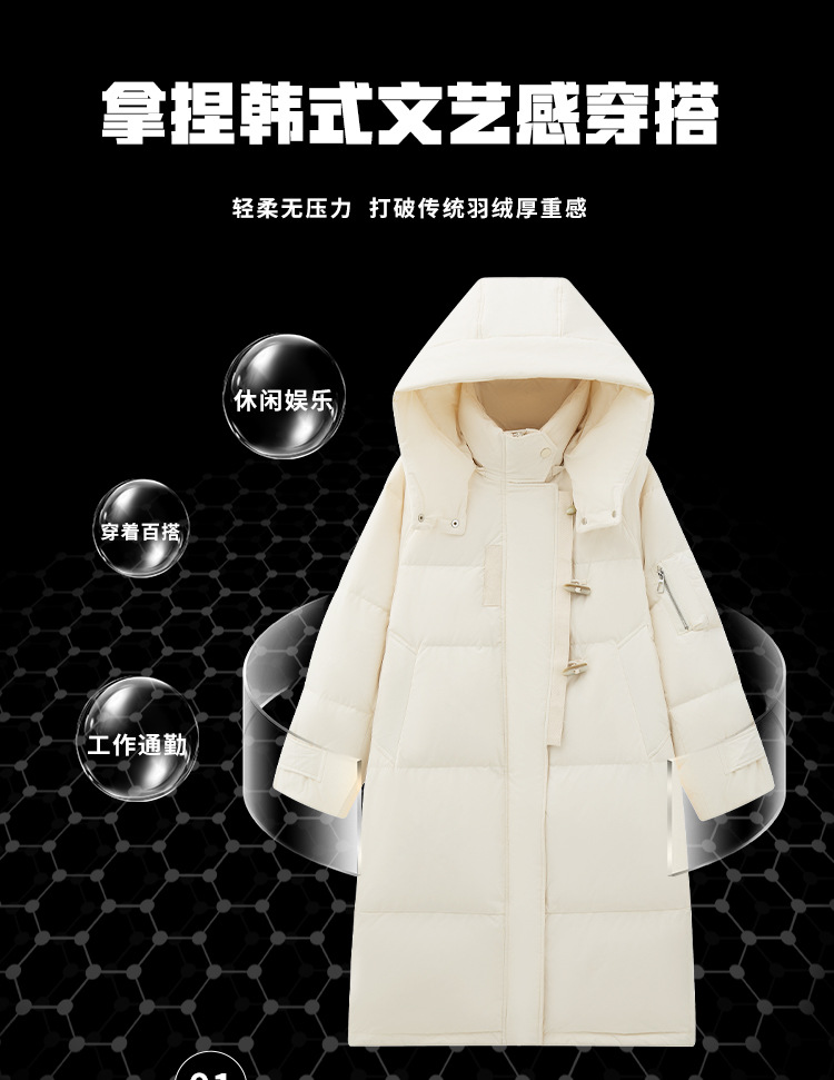 패딩 동복 신상 여성 한국판 루즈한 패딩 점퍼에 롱 점퍼 흰색 오리털 다운 후드 칼라