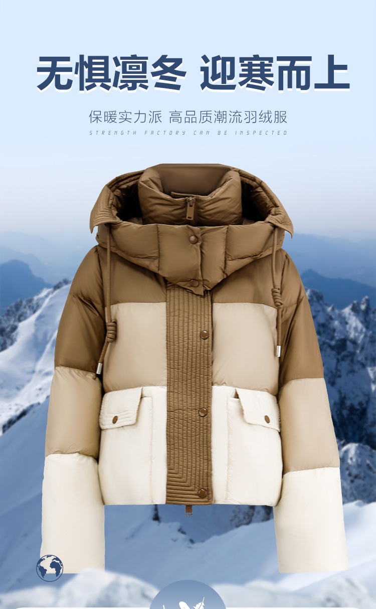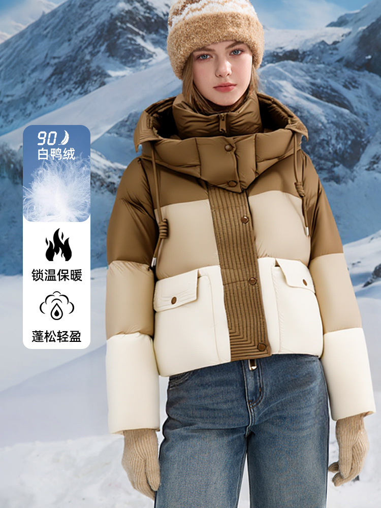 쇼트 기장의 고급스러운 컬러감의 다운점퍼와 트렌디한 키 방한 빵복 아우터