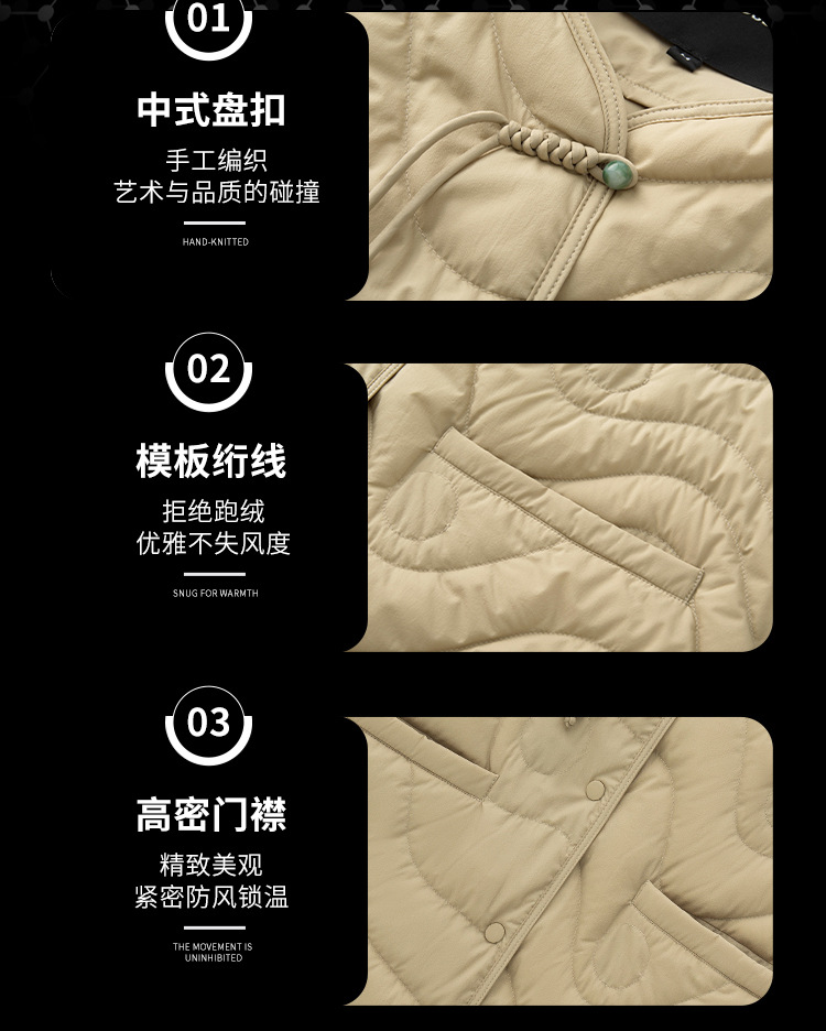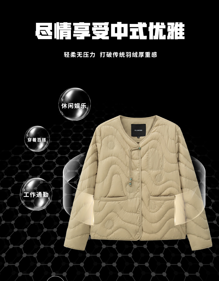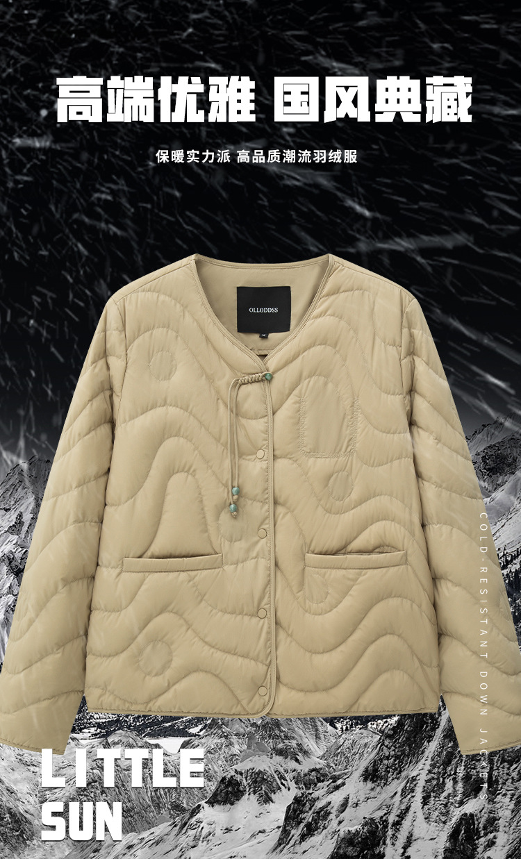 얇은 구스다운 여성복 가을 겨울 신상품 신중국식 외투 패턴 퀼팅 인텐더 계열 크루넥 다운