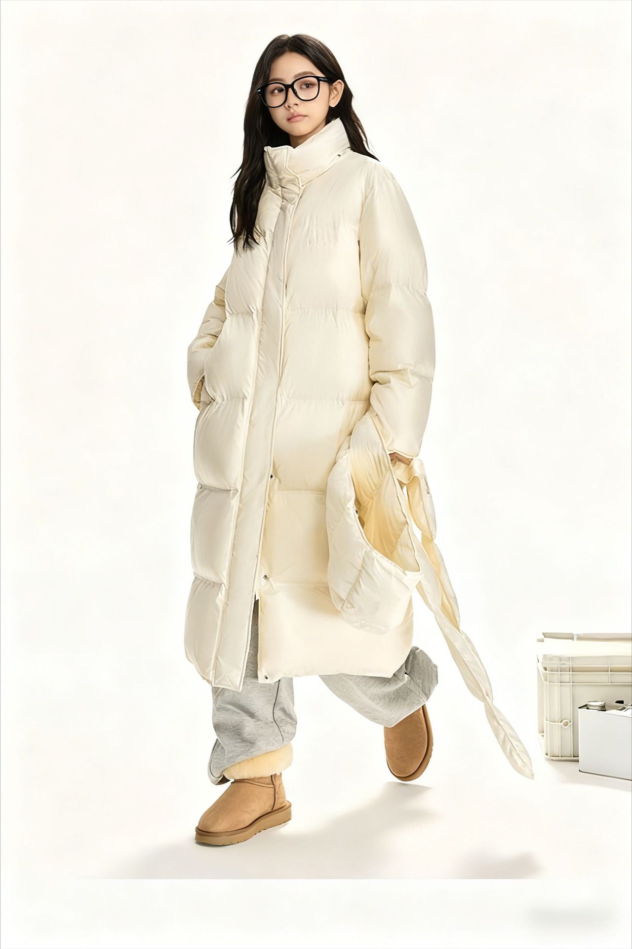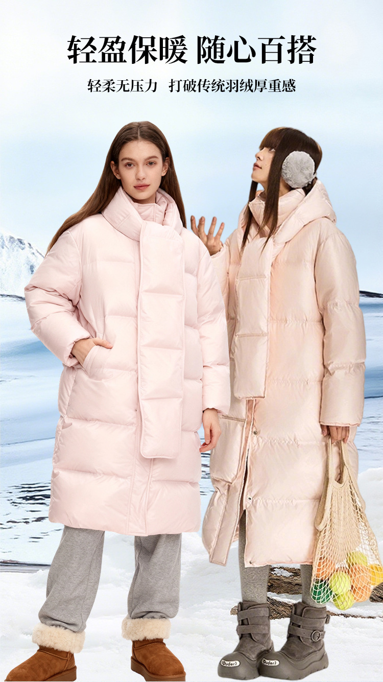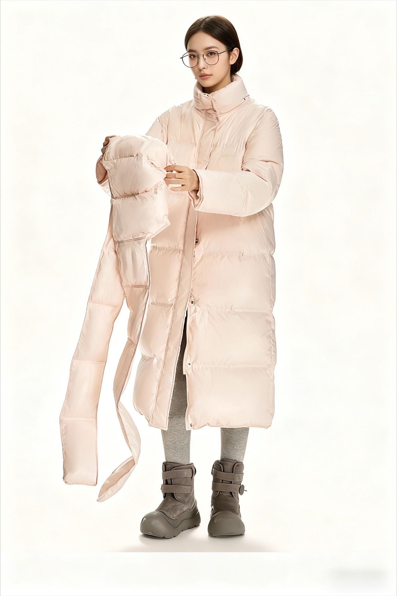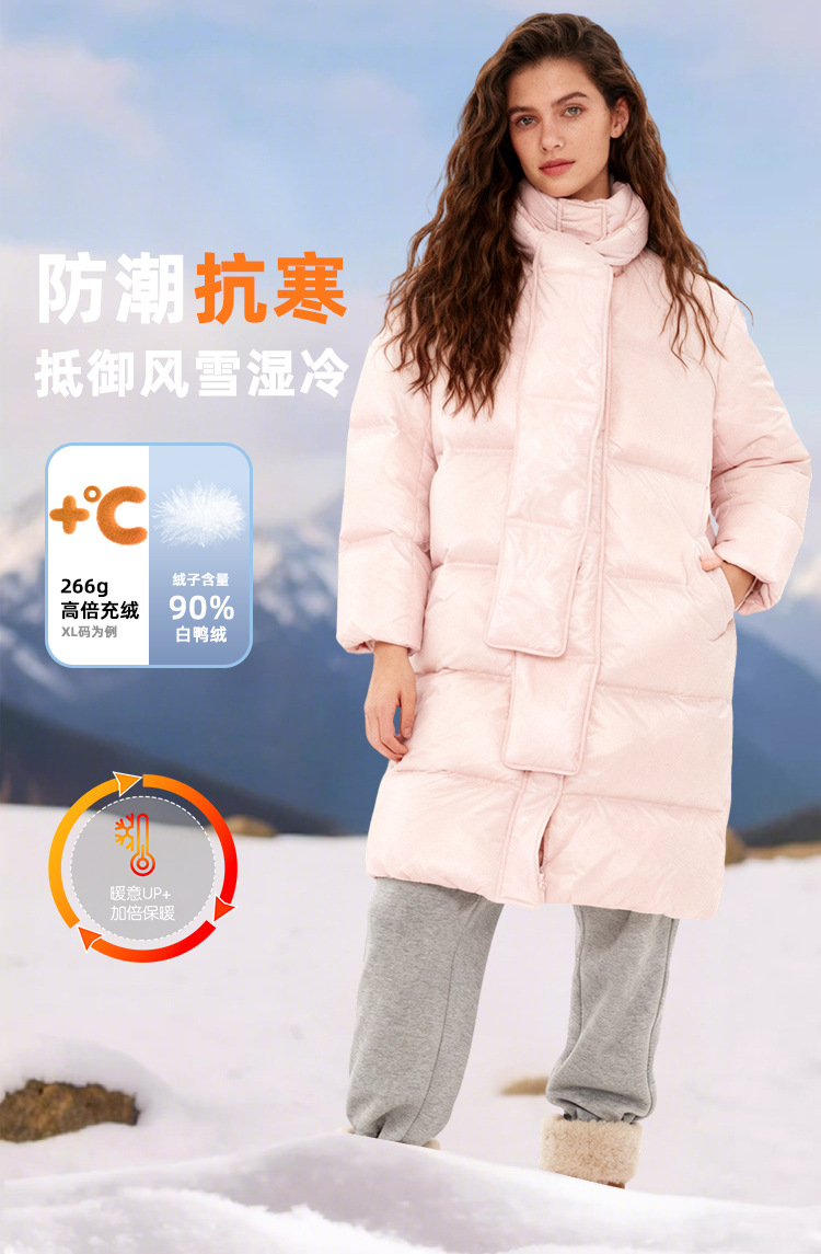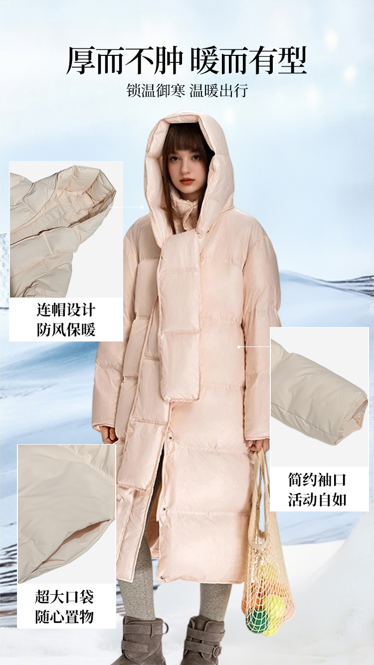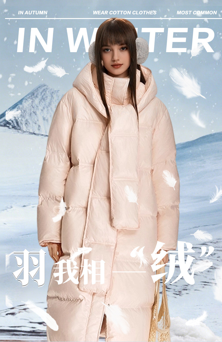 신상 겨울 플러스 롱 슬림핏 후드 머플러 탈부착 후드 하이엔드 슬림핏 다운 점퍼입니다