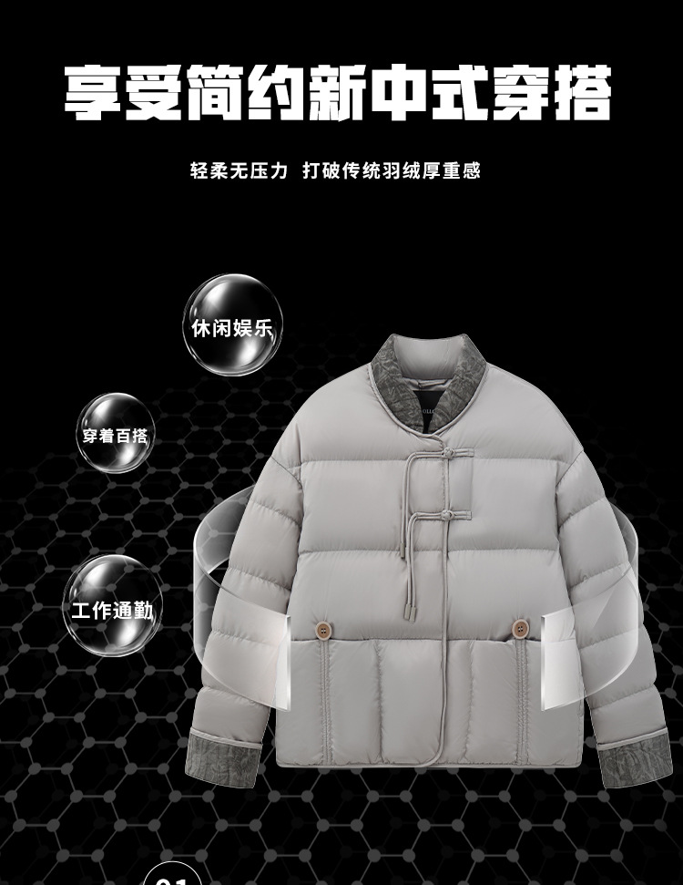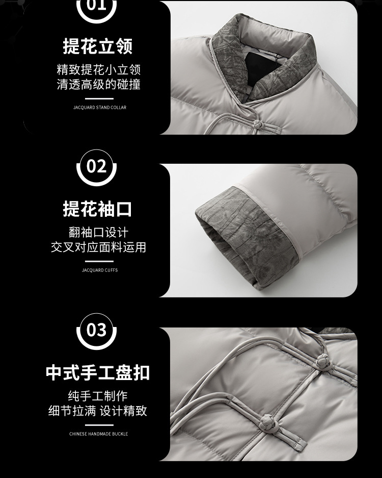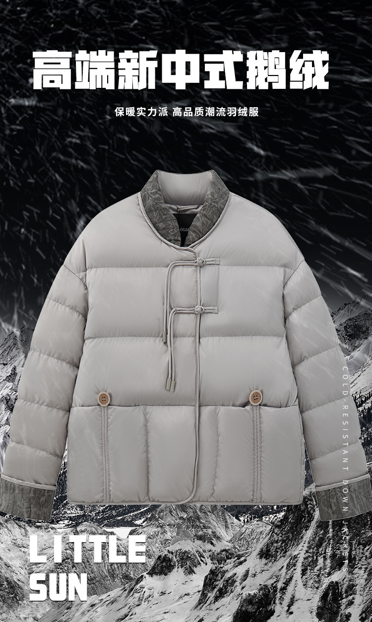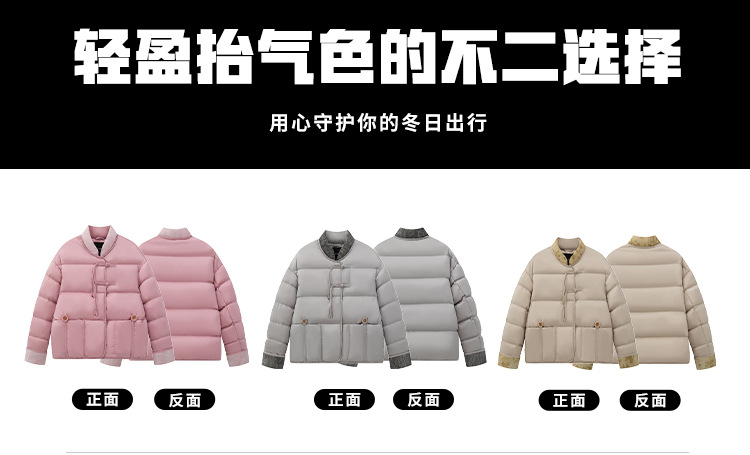 화이트 구스다운 패딩 국풍 레트로 자카드 신상 단추 페미네이션 아우터 쇼트 겨울