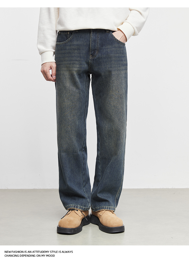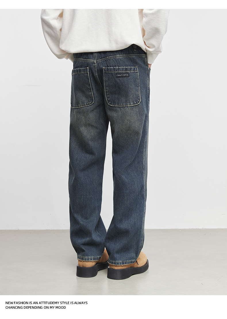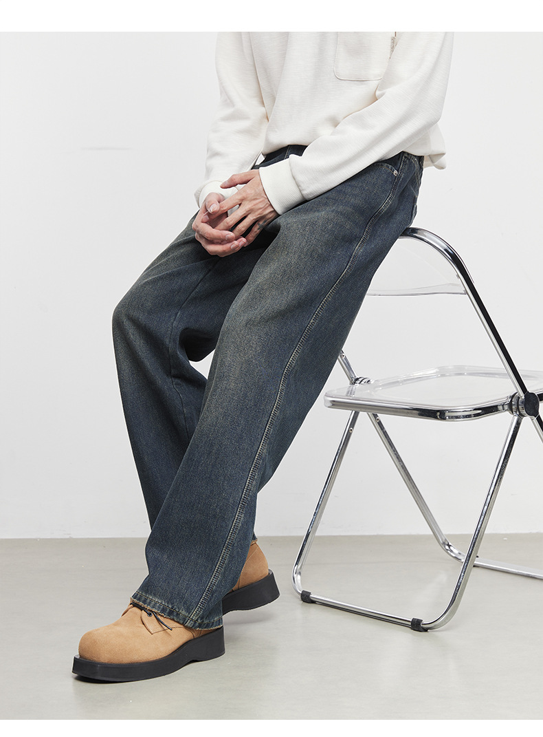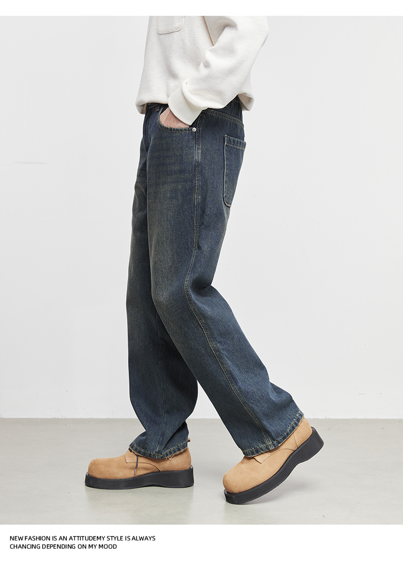 남성 빈티지 기모 통 청바지 가을 겨울 와이드 캐주얼 트렌드 구제 와이드 팬츠입니다