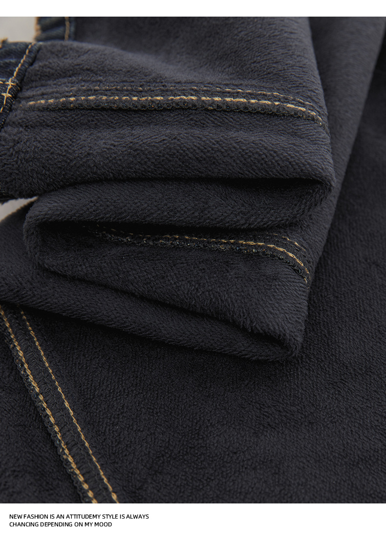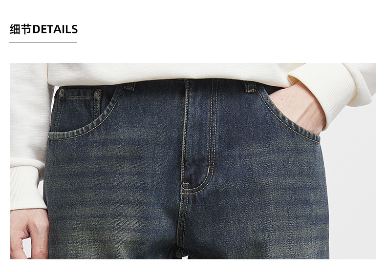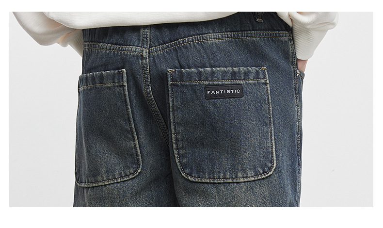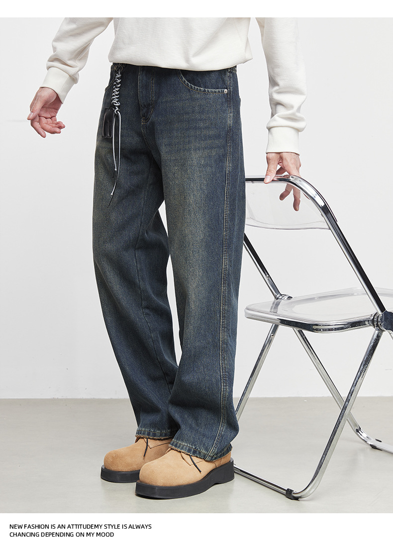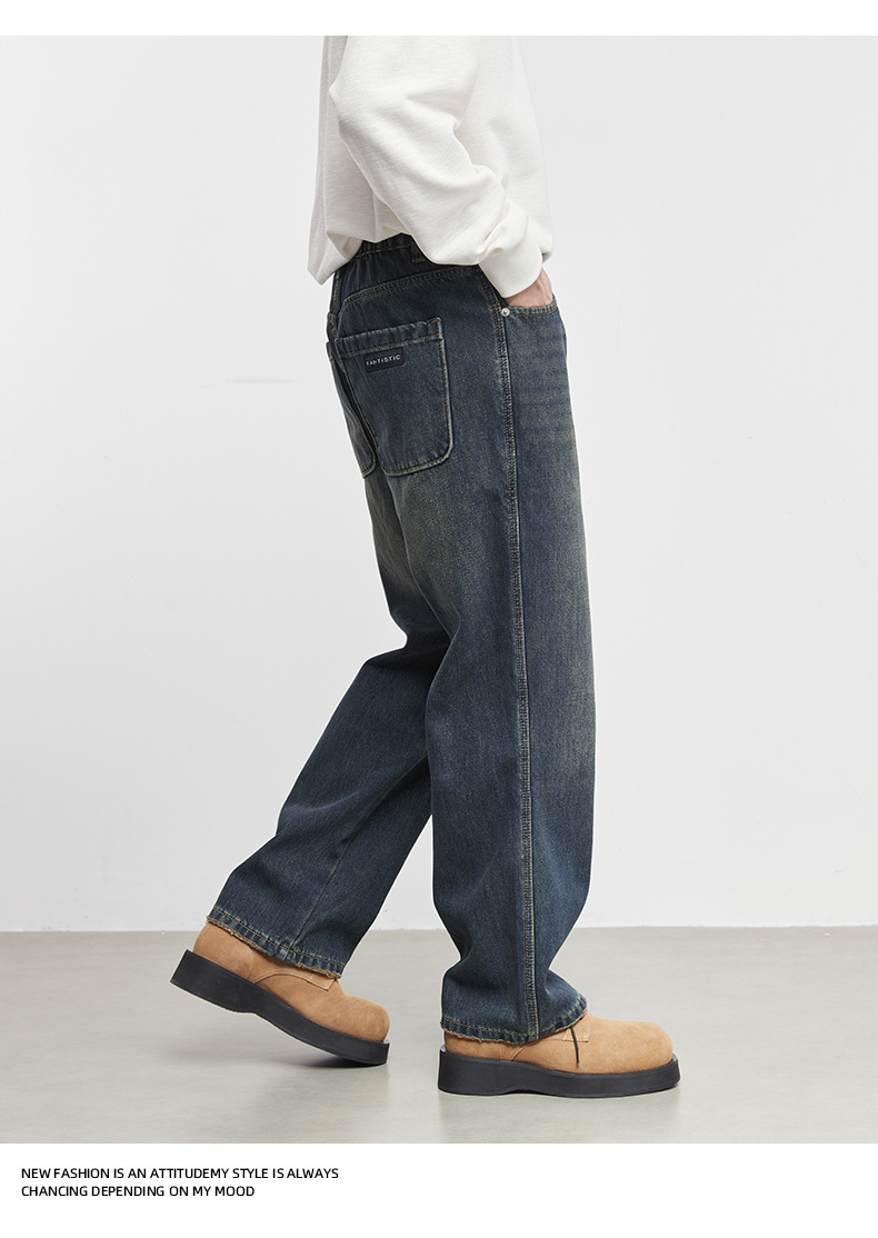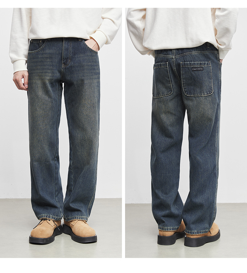 남성 빈티지 기모 통 청바지 가을 겨울 와이드 캐주얼 트렌드 구제 와이드 팬츠입니다