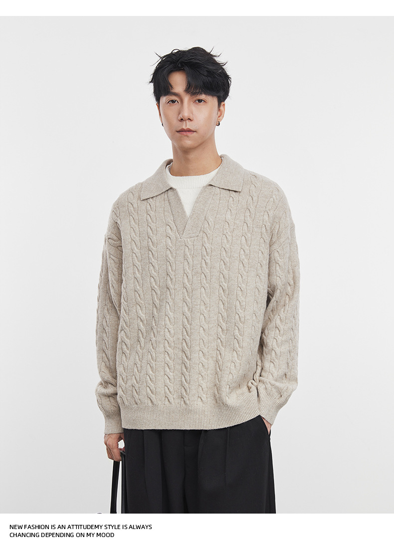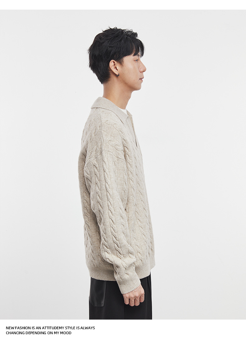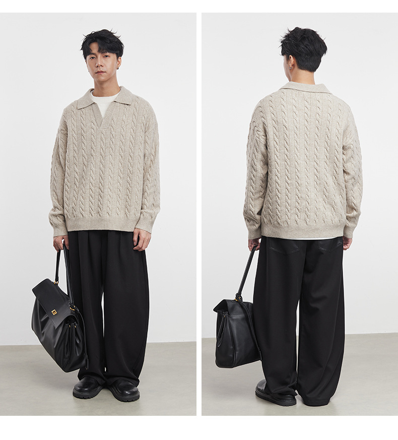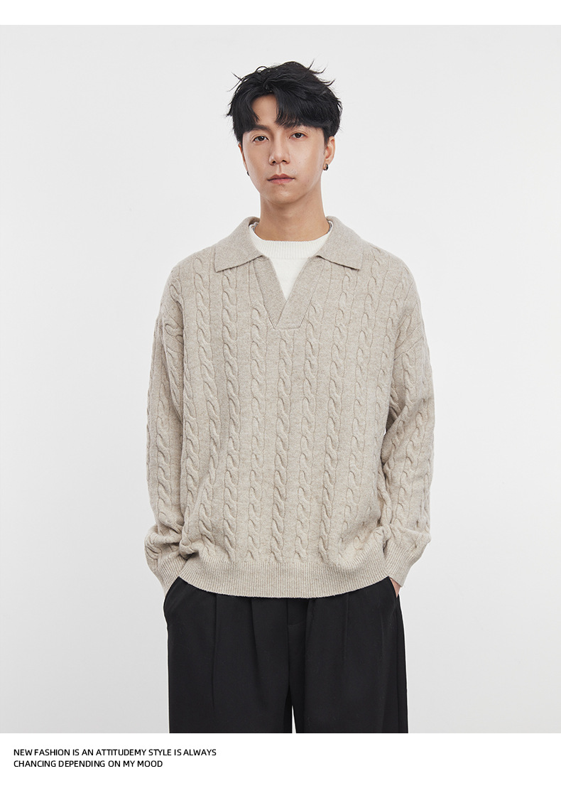 한국판 패치 투피스 터틀넥 니트 남성용 루스한 가을 탑 트렌디