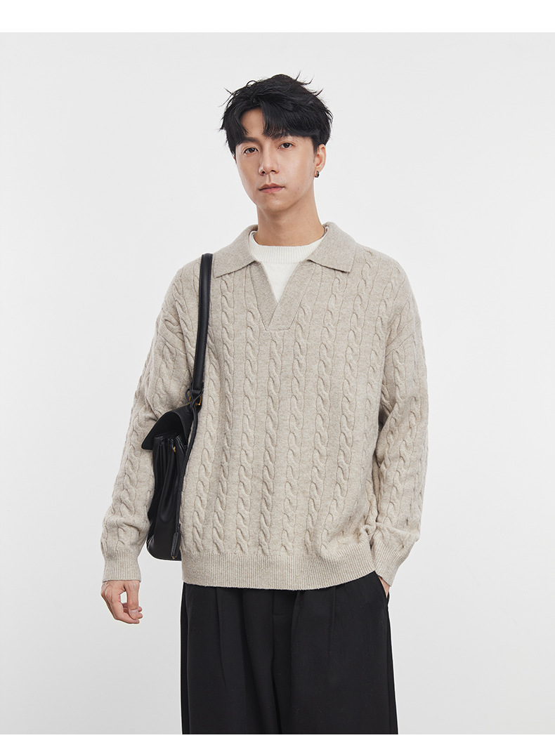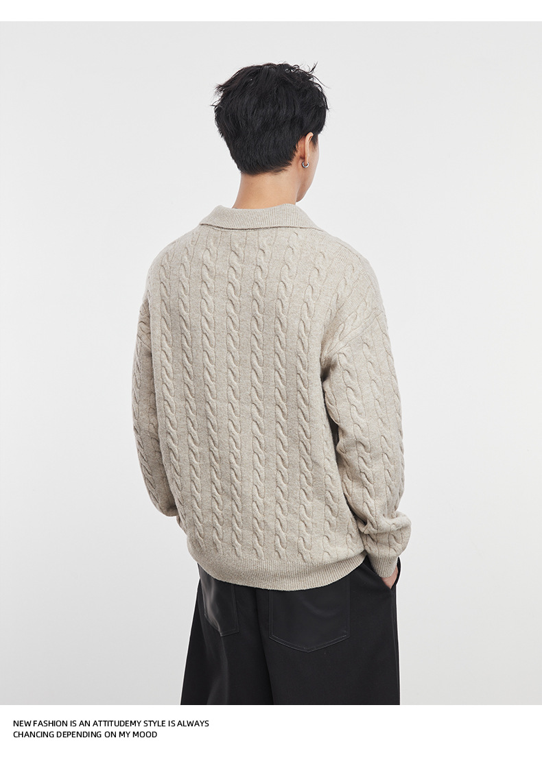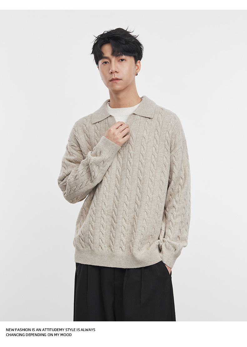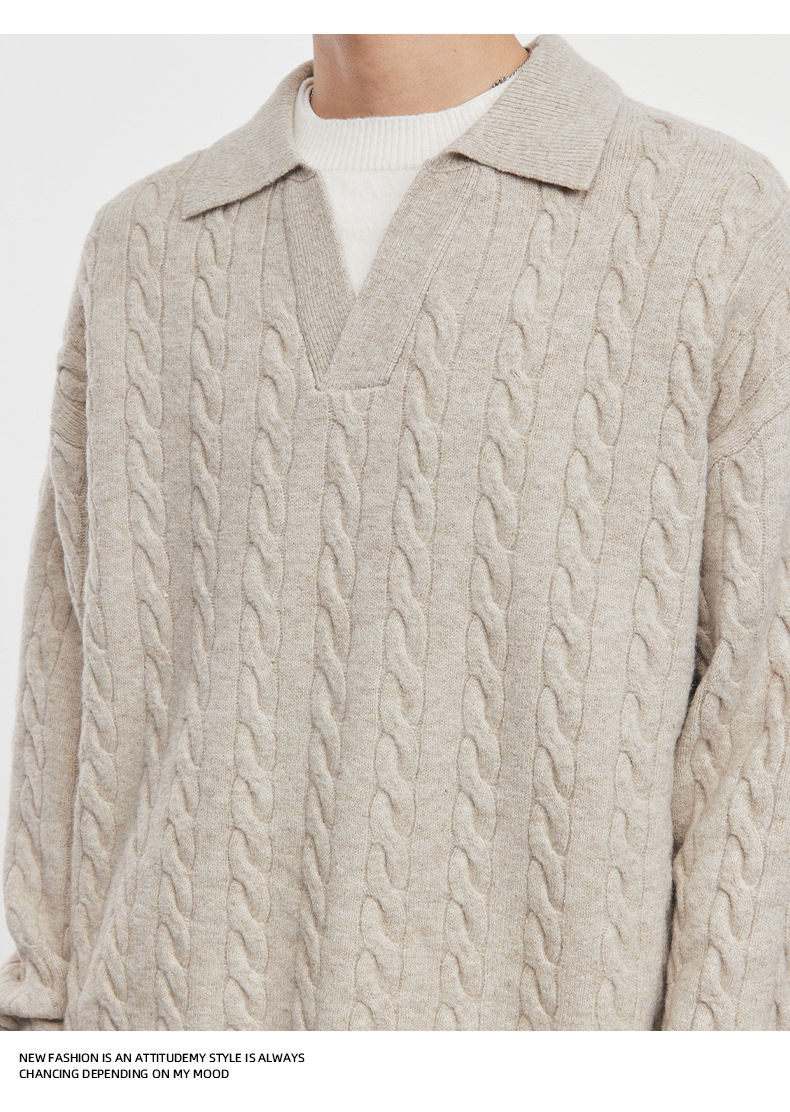 한국판 패치 투피스 터틀넥 니트 남성용 루스한 가을 탑 트렌디
