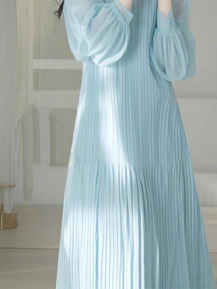 프랑스 드레스 고급 부드러운 느낌의 블루 드레스 봄