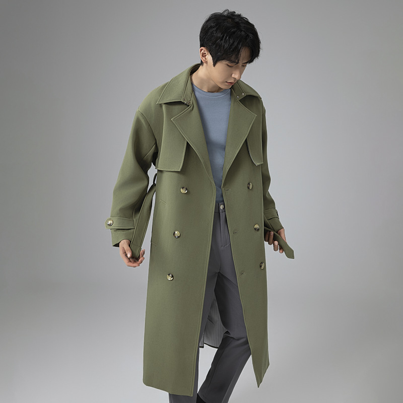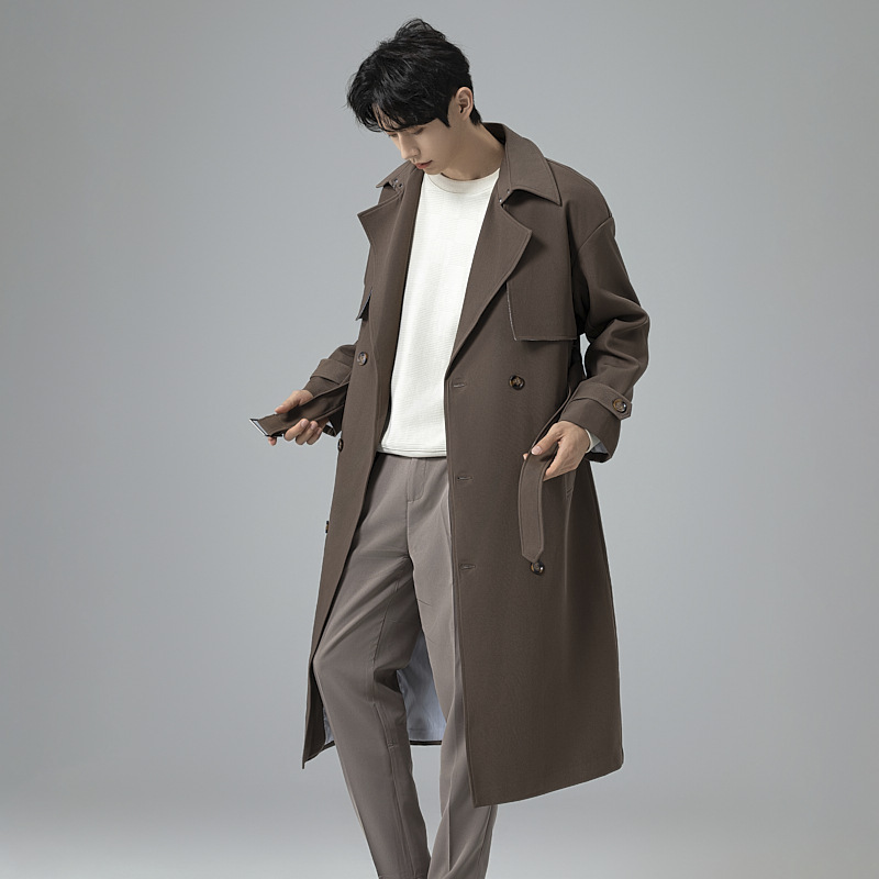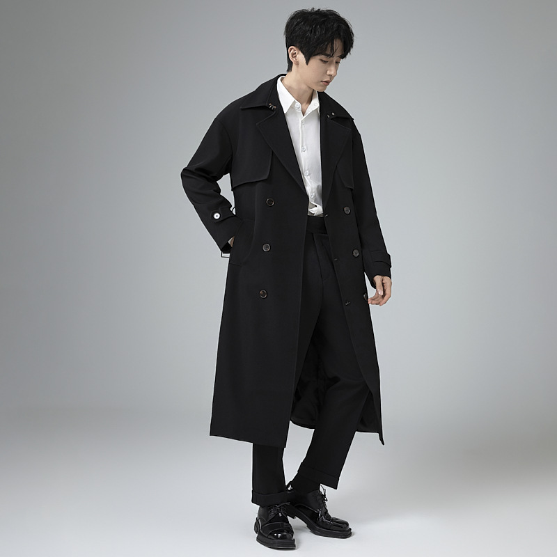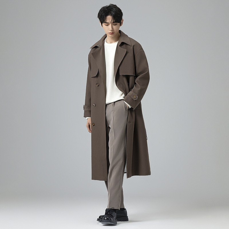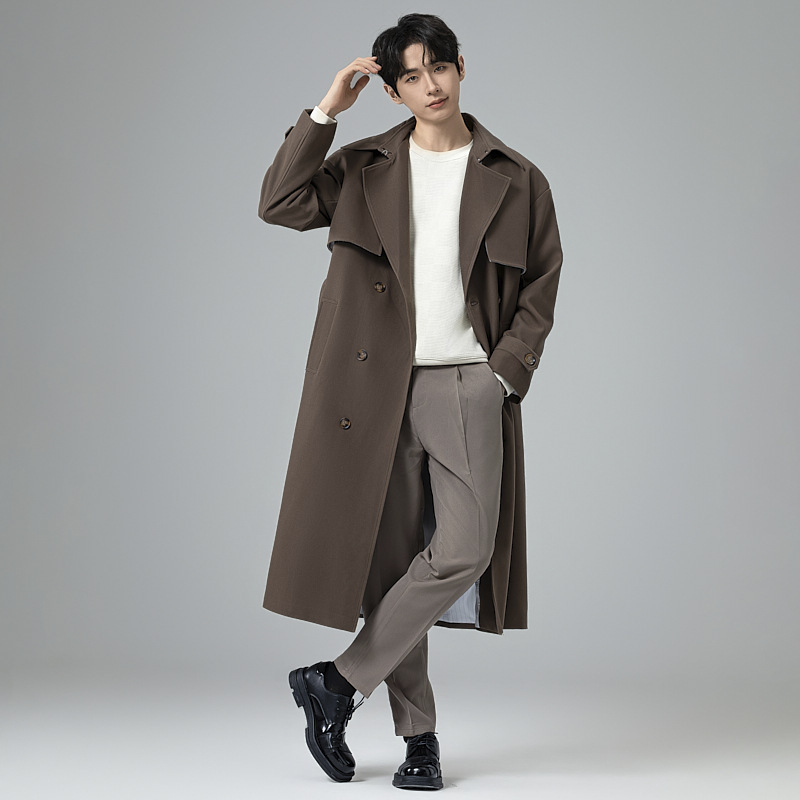 디자인 더블 접시 롱 트렌치코트 남성 무릎 아래로 내려오는 더블 버튼의 루즈핏 탑으로 고급스러운