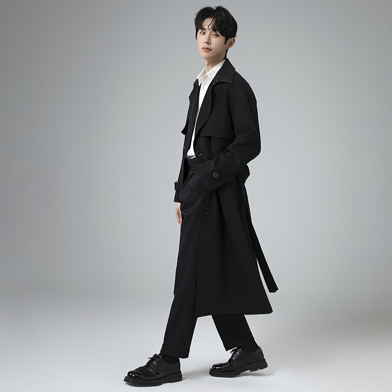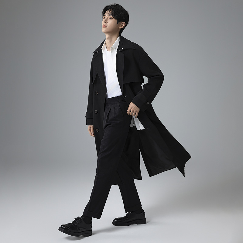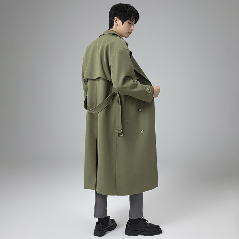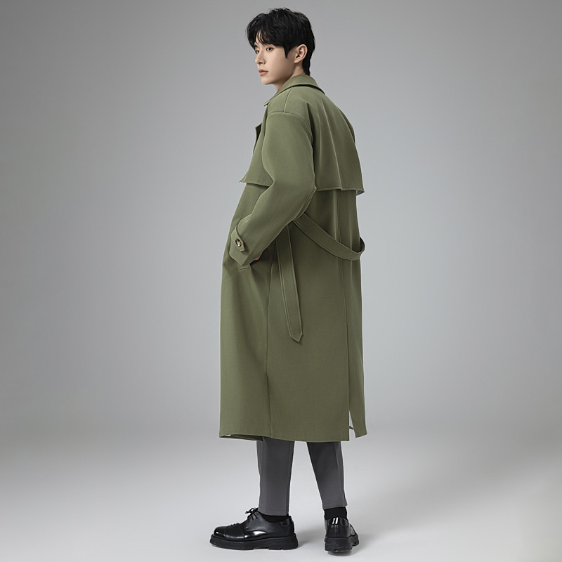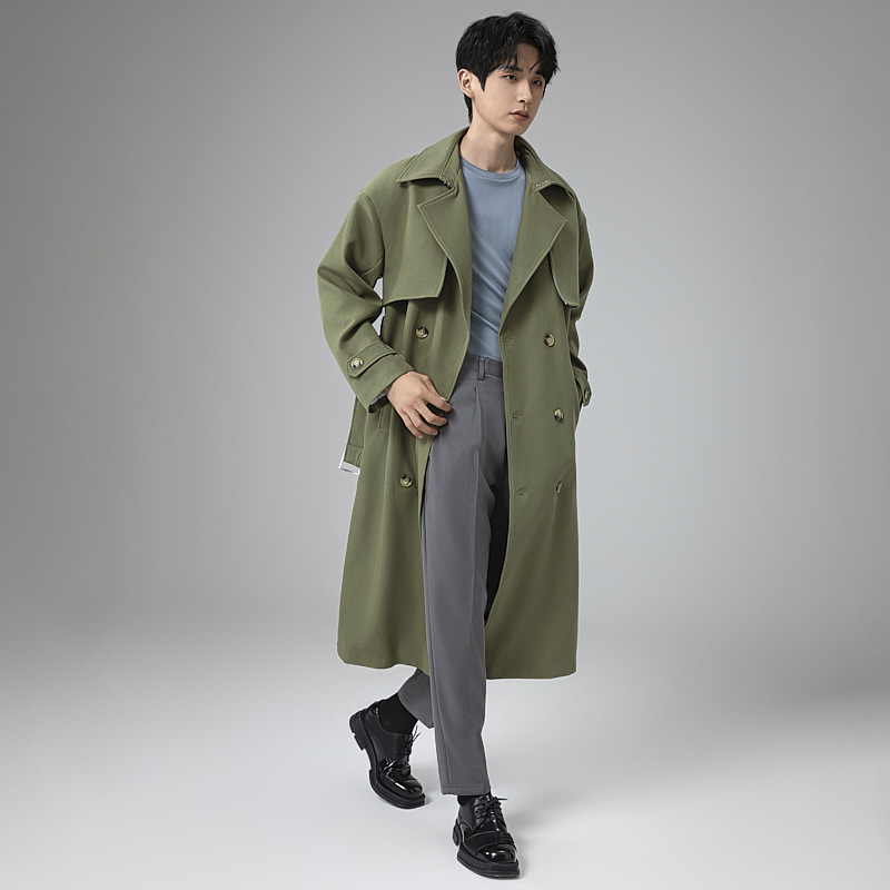 디자인 더블 접시 롱 트렌치코트 남성 무릎 아래로 내려오는 더블 버튼의 루즈핏 탑으로 고급스러운