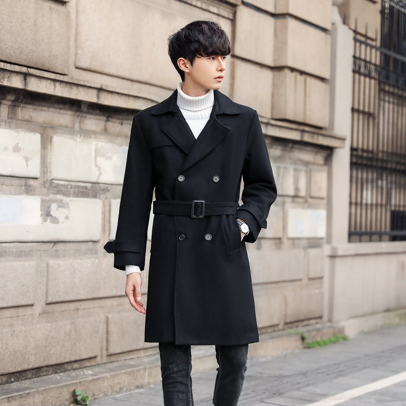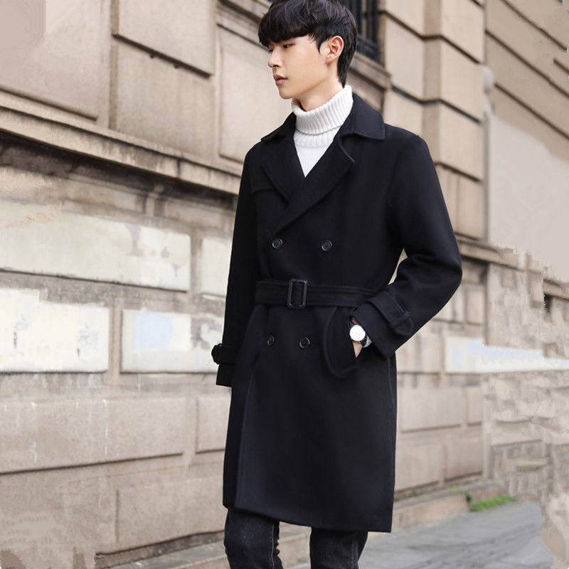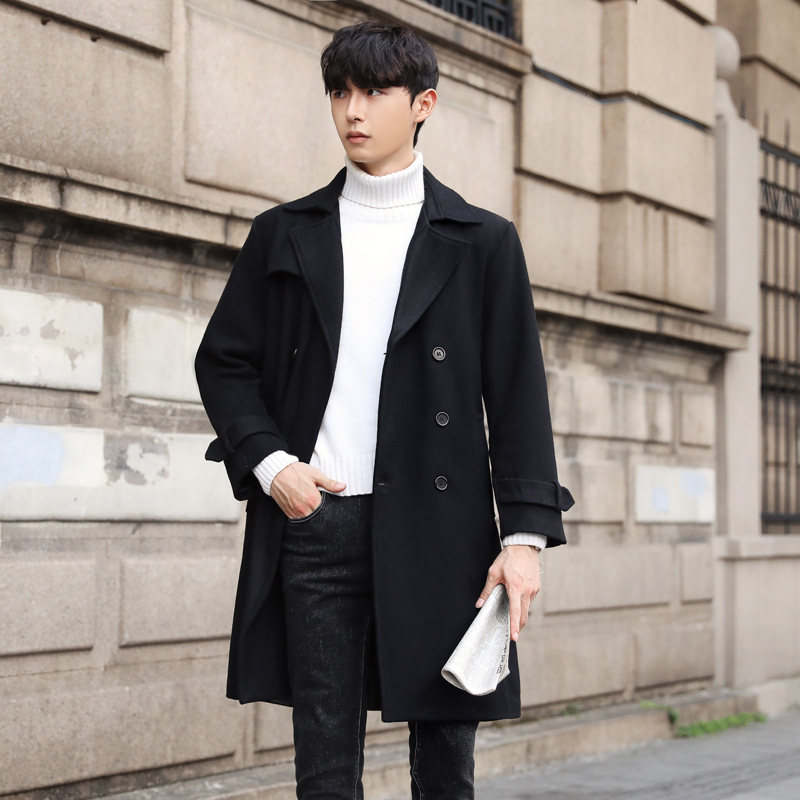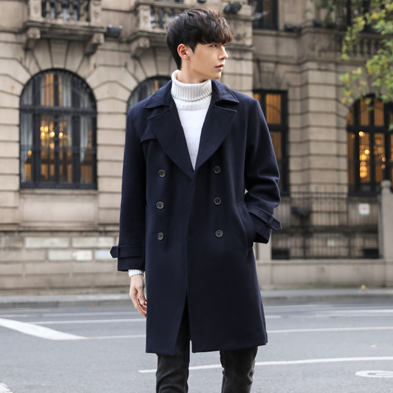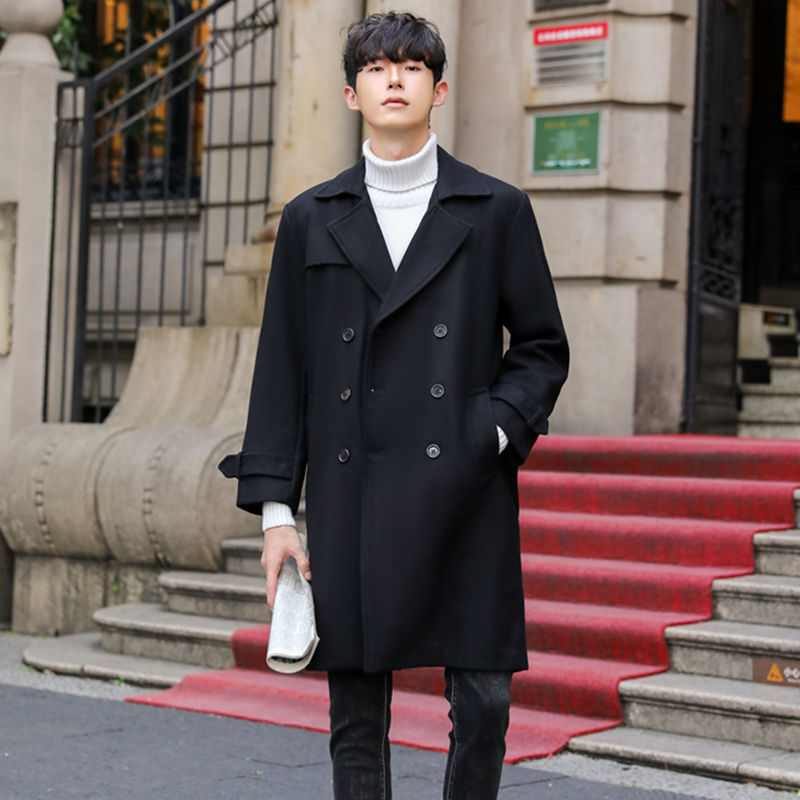 신상 모직 코트남성 미디엄 기장의 모직 코트양면 코트캐시미어 트렌치코트남성