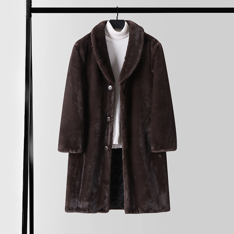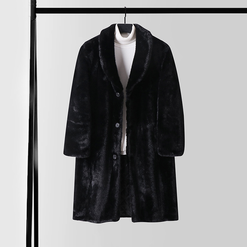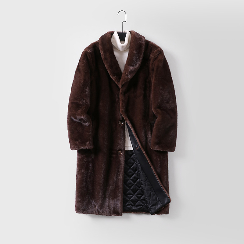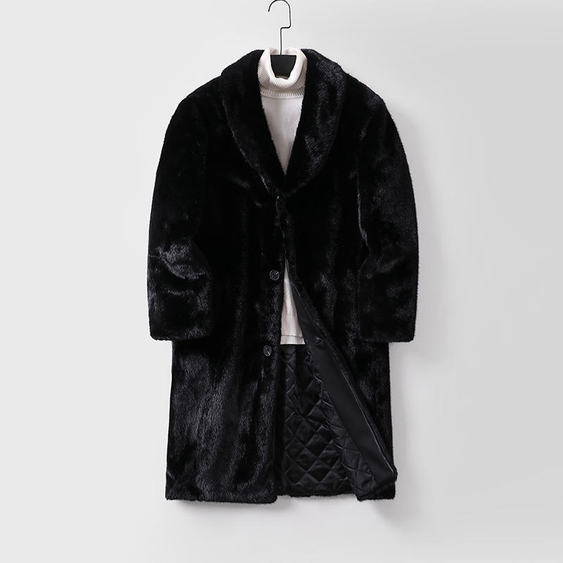 가을 겨울 모조 밍크 라지 사이즈 코트 남성용 롱 모피 아우터에 두툼한 트렌치코트