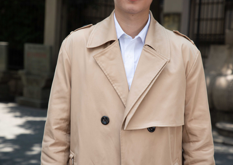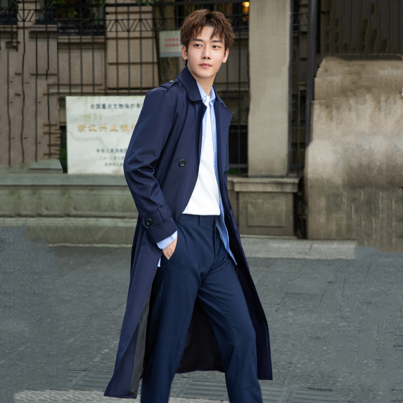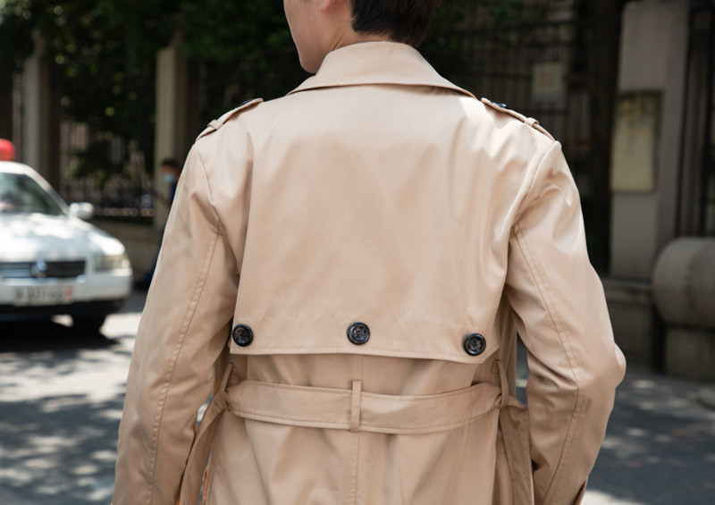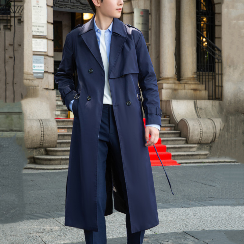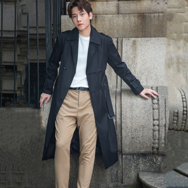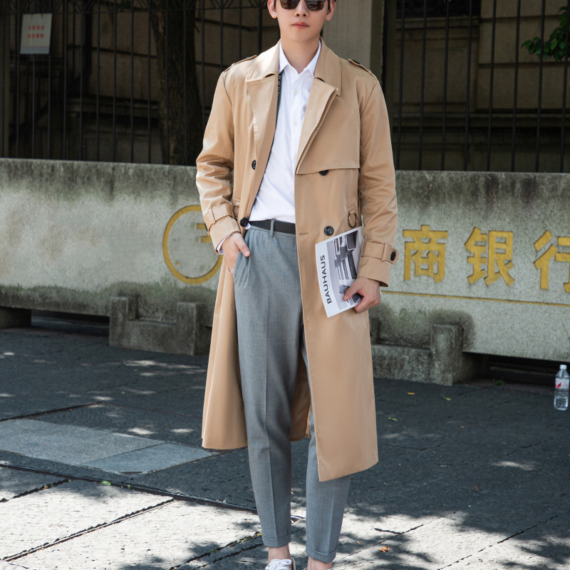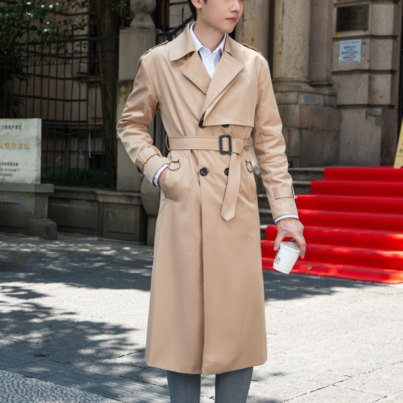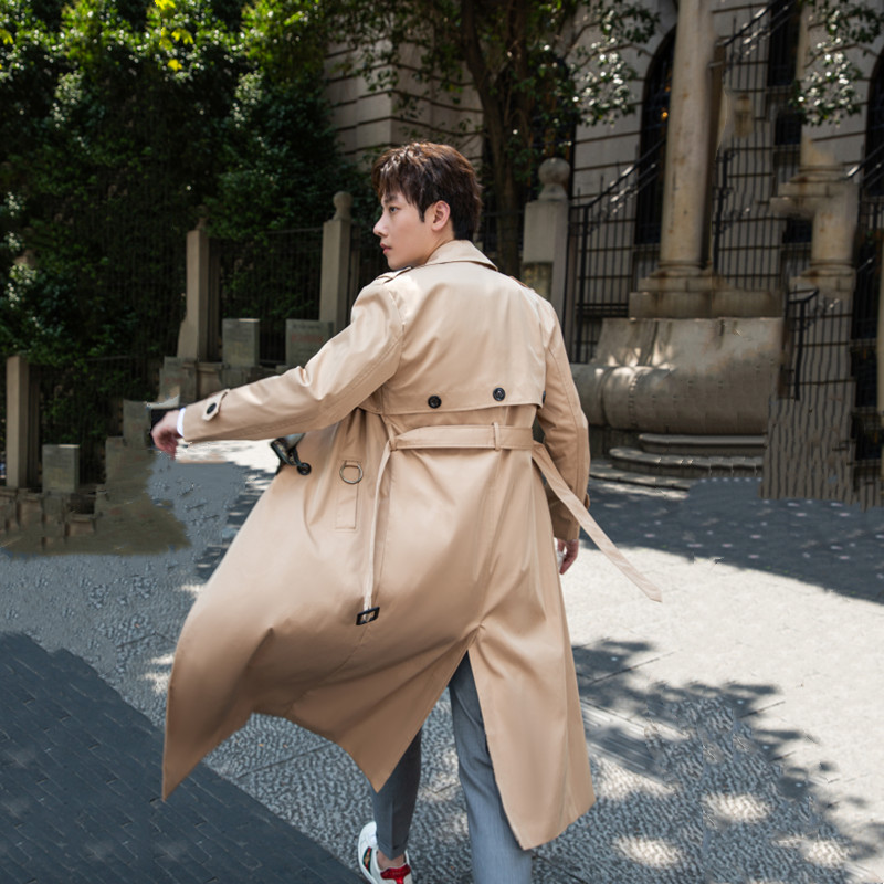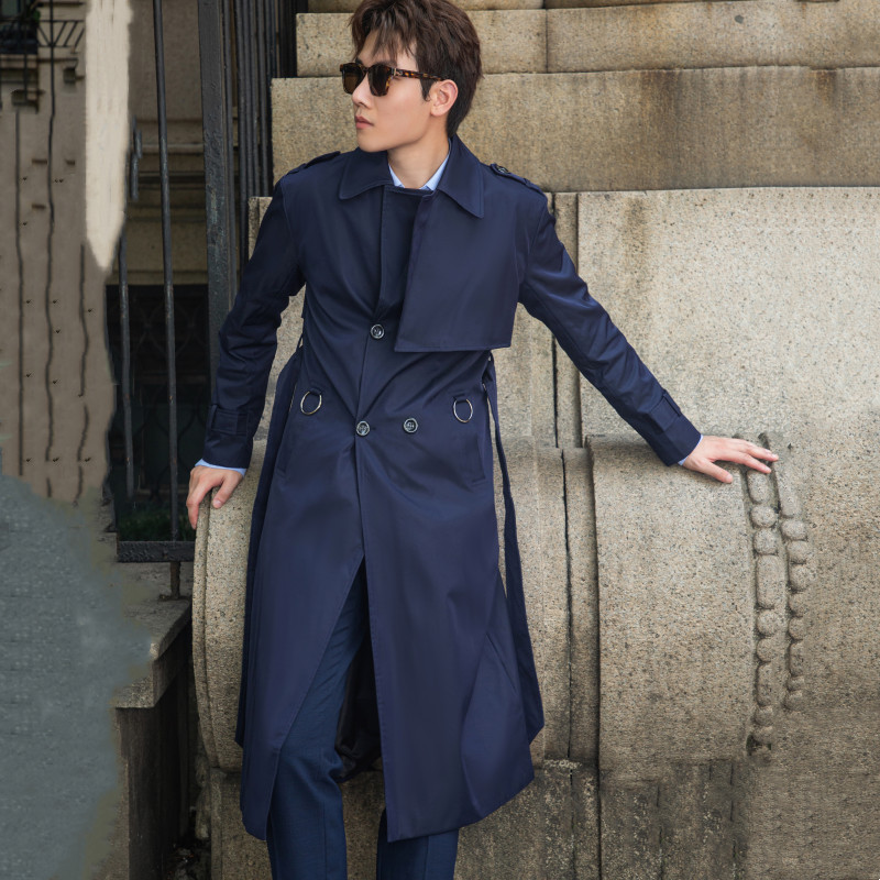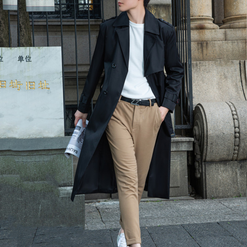 감각적인 디자인의 트렌치코트입니다. 남성용 봄 · 가을 기장으로 무릎 위로 내려오는 롱 기장의 코트입니다