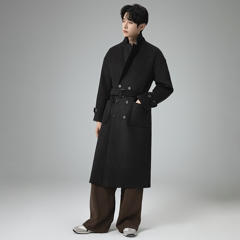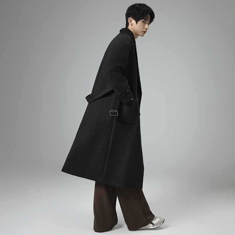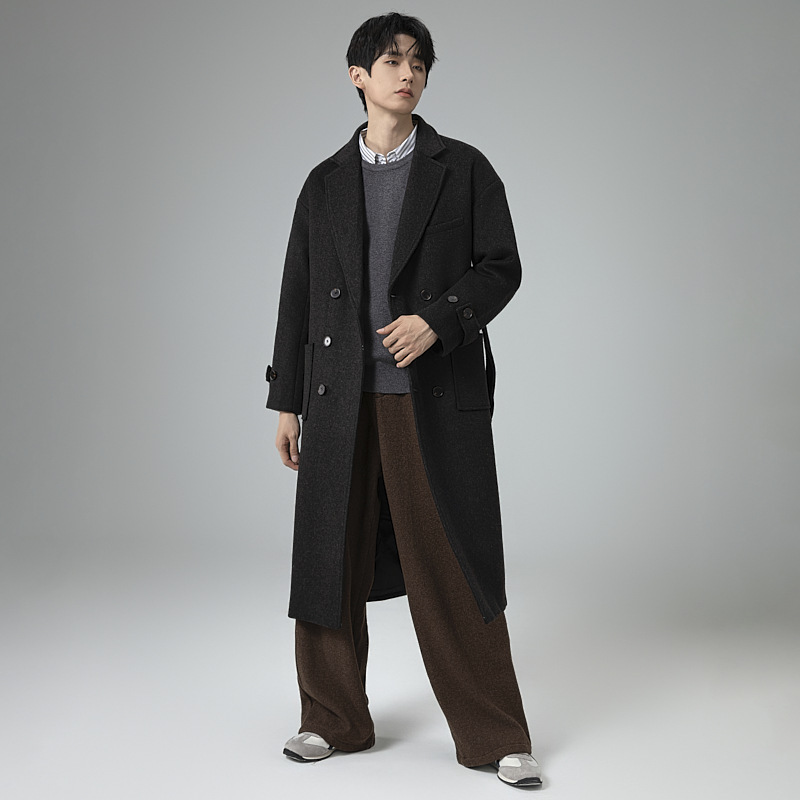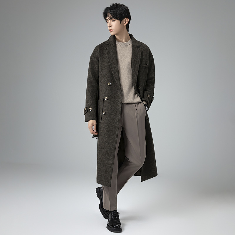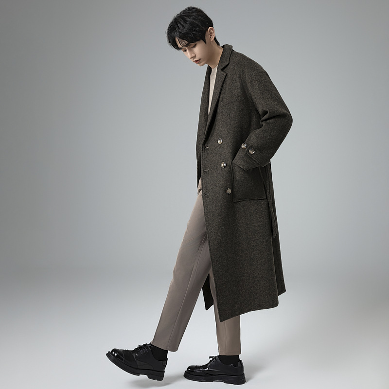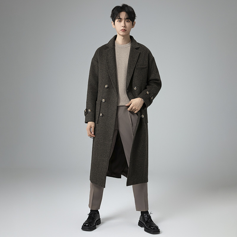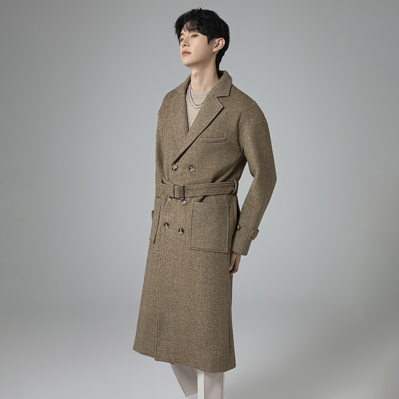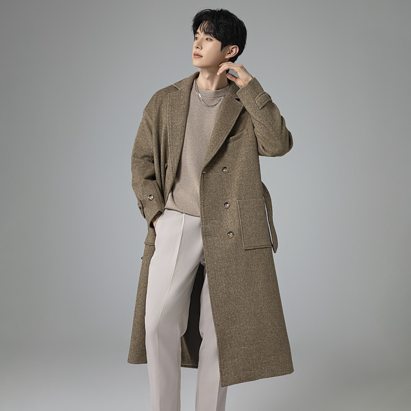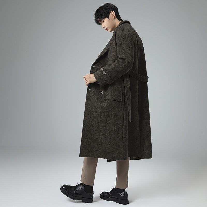 가을 겨울 멜라드 모직 코트 남성 고급스러운 느낌의 롱 트렌치코트 무릎 내려오는 루즈핏 모직 코트남