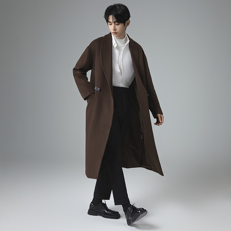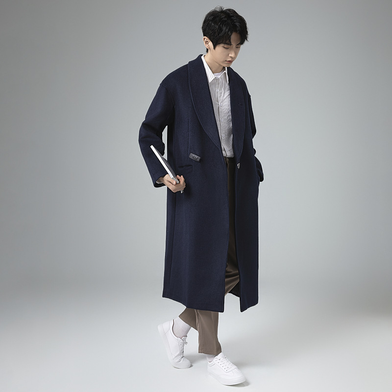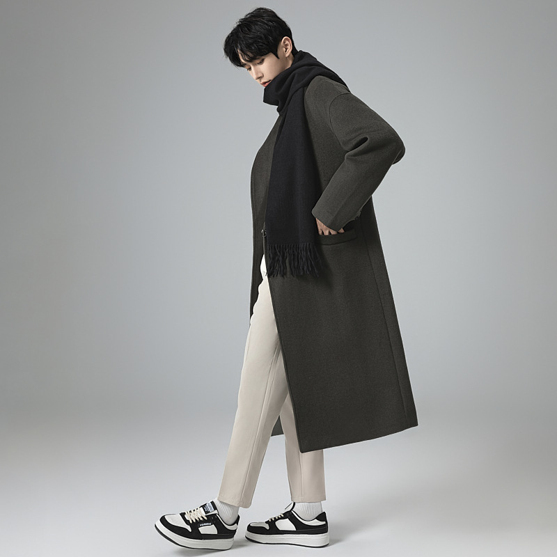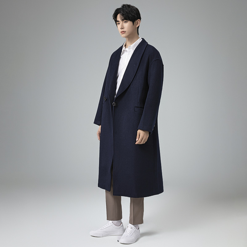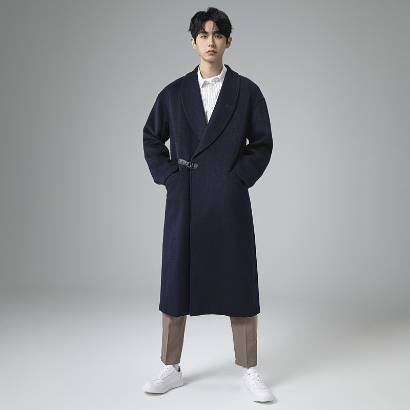고급 모직 코트 남자 울 롱 트렌치코트 무릎까지 내려오는 코트 라지 사이즈 캐시미어 코트 남자