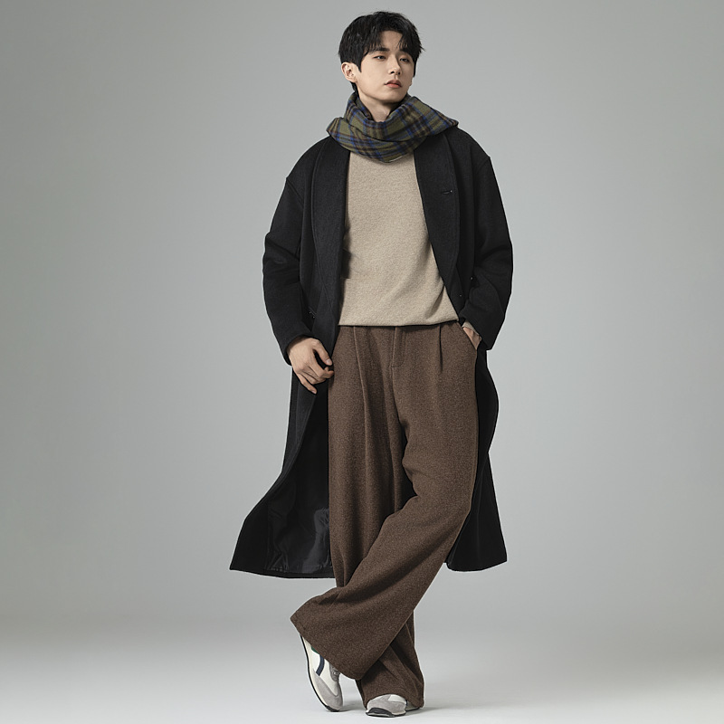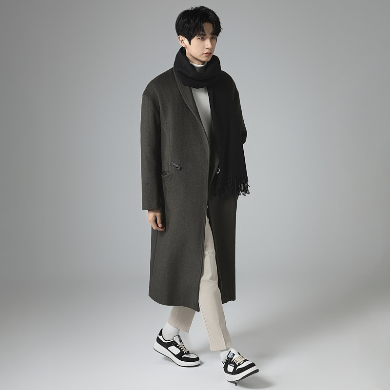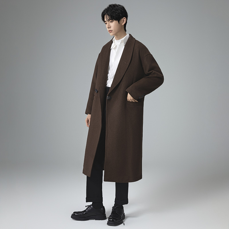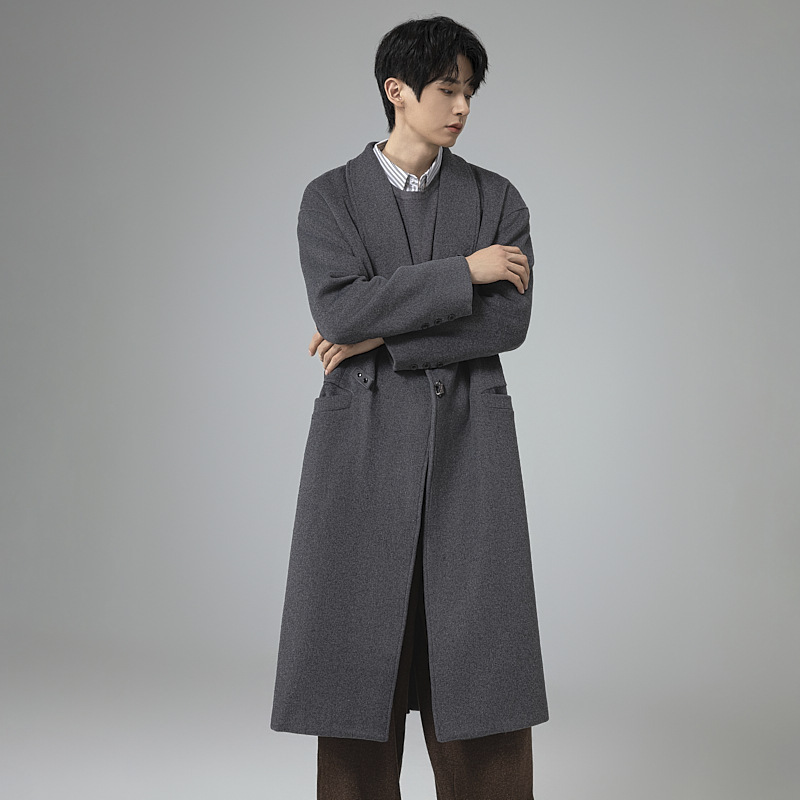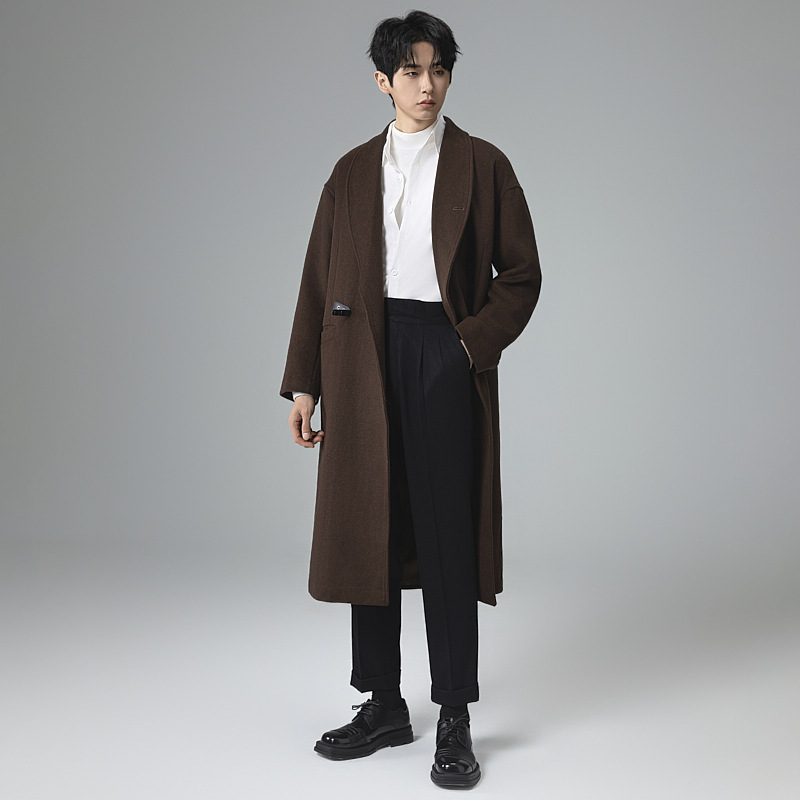 고급 모직 코트 남자 울 롱 트렌치코트 무릎까지 내려오는 코트 라지 사이즈 캐시미어 코트 남자