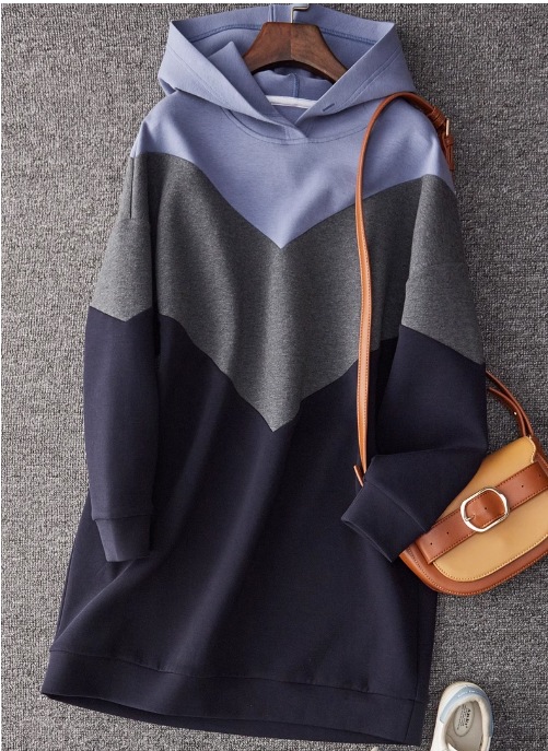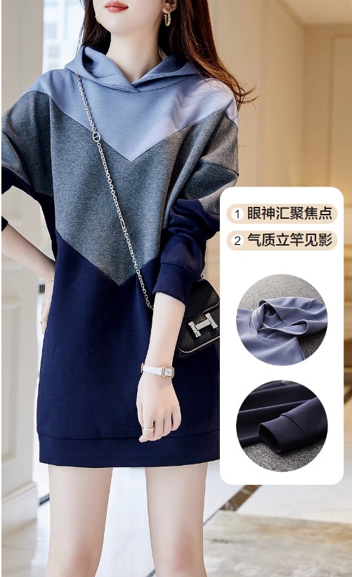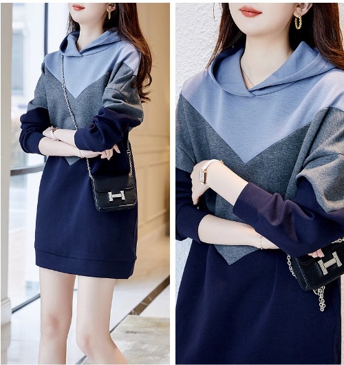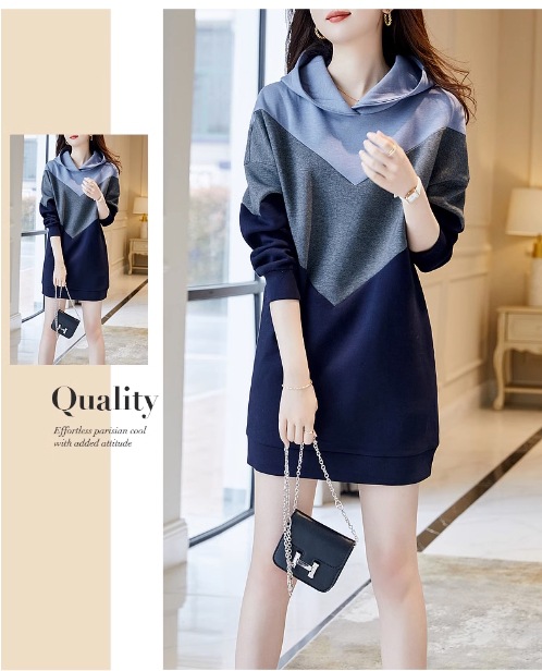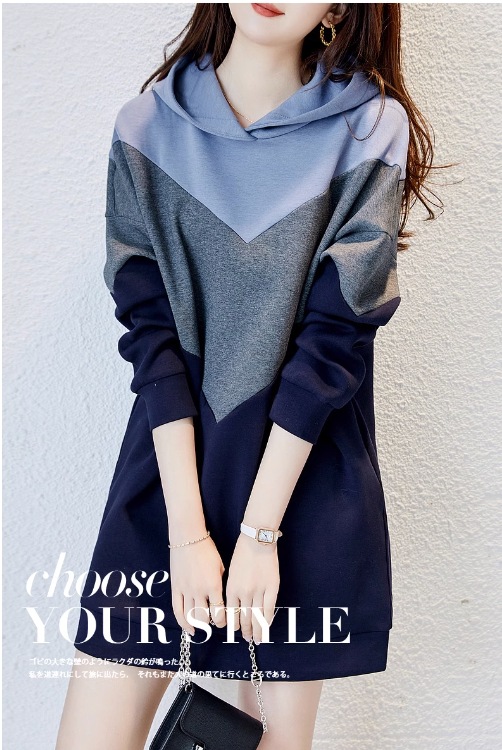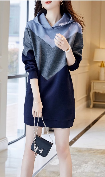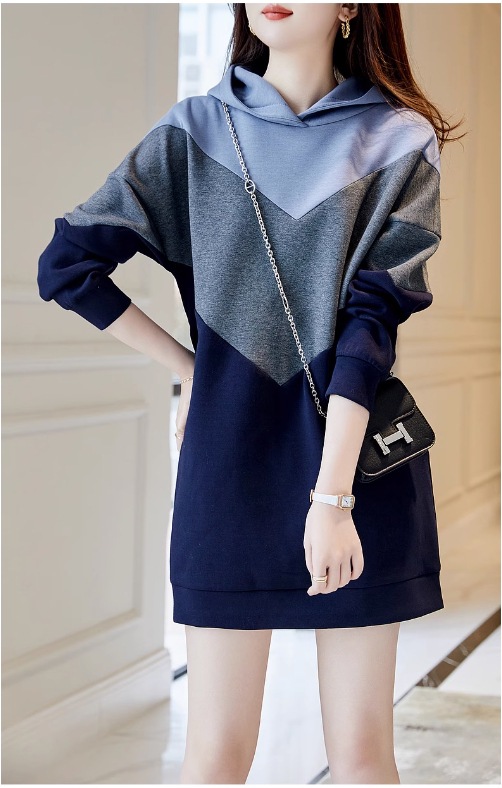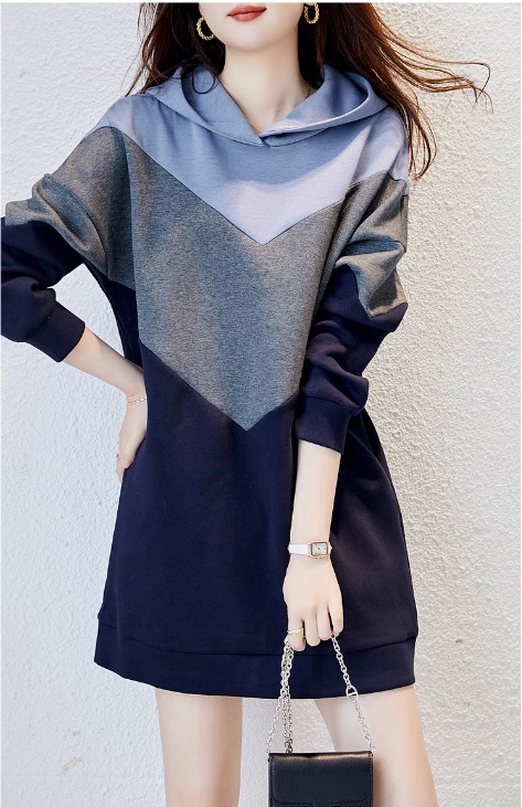 후드 짜임 미디엄 기장 맨투맨 원피스 가을