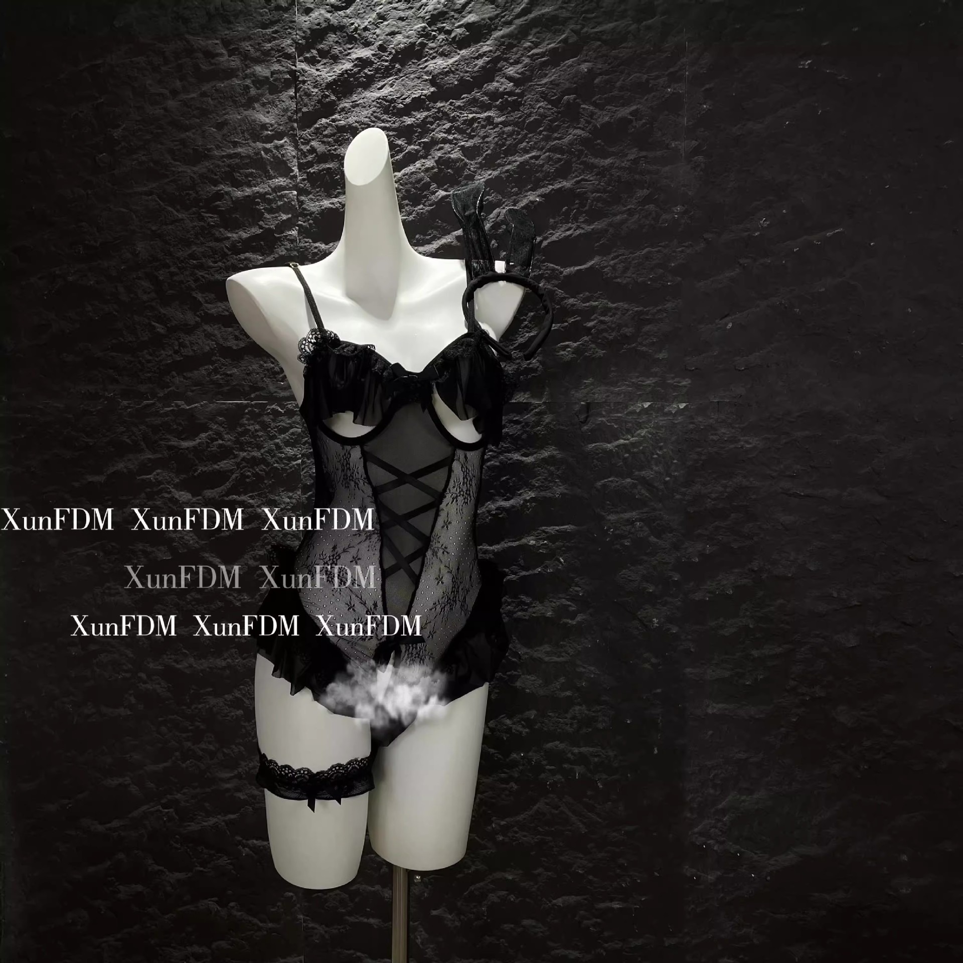 섹스 란제리 민소매 레이스 섹시 홀터넥 펀칭 스타킹 전신 망사 섹스 용품 8961