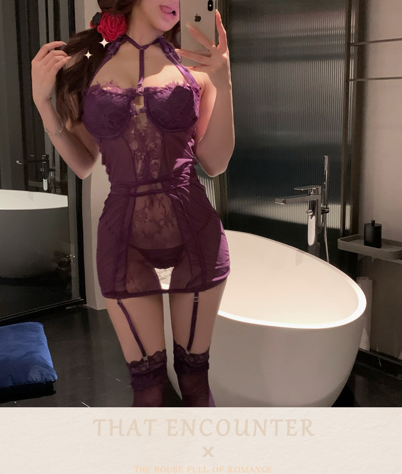 섹스 란제리 민소매 레이스 섹시 홀터넥 펀칭 스타킹 전신 망사 섹스 용품 8961