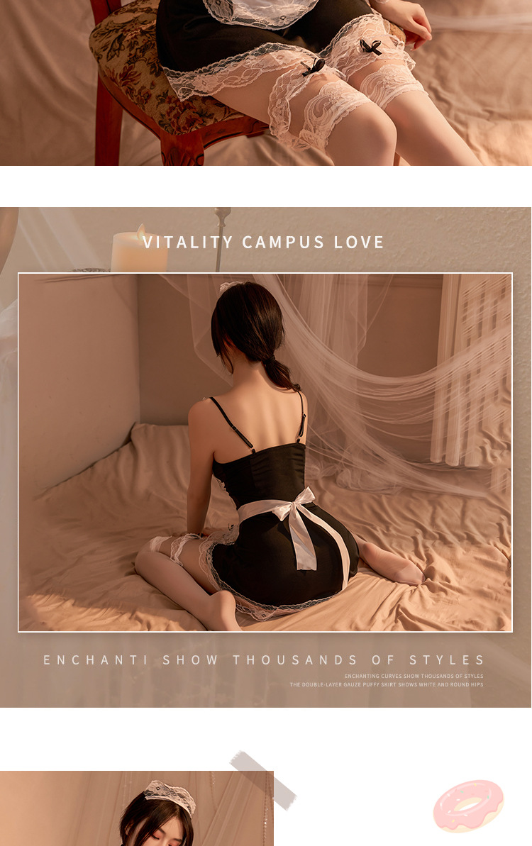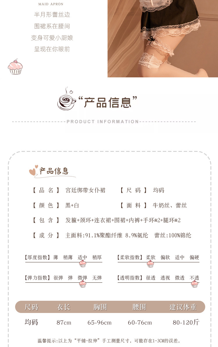 섹시 라지 사이즈 파자마 배주머니 메이드 룩 섹시 란제리 유니폼 롤플레어 등이 보이는 통통한 치마스커트