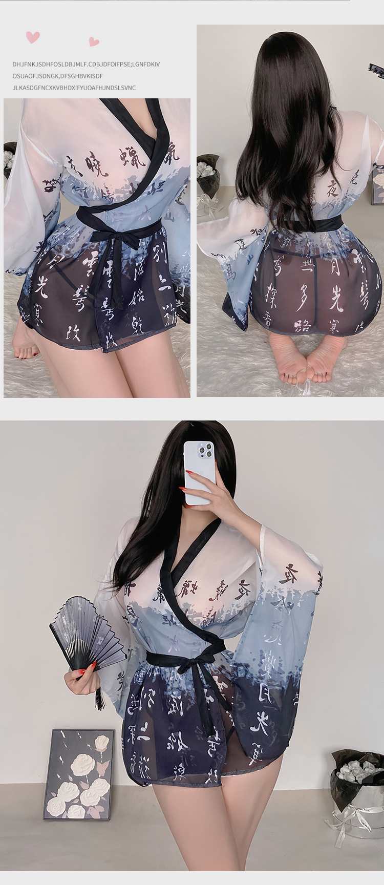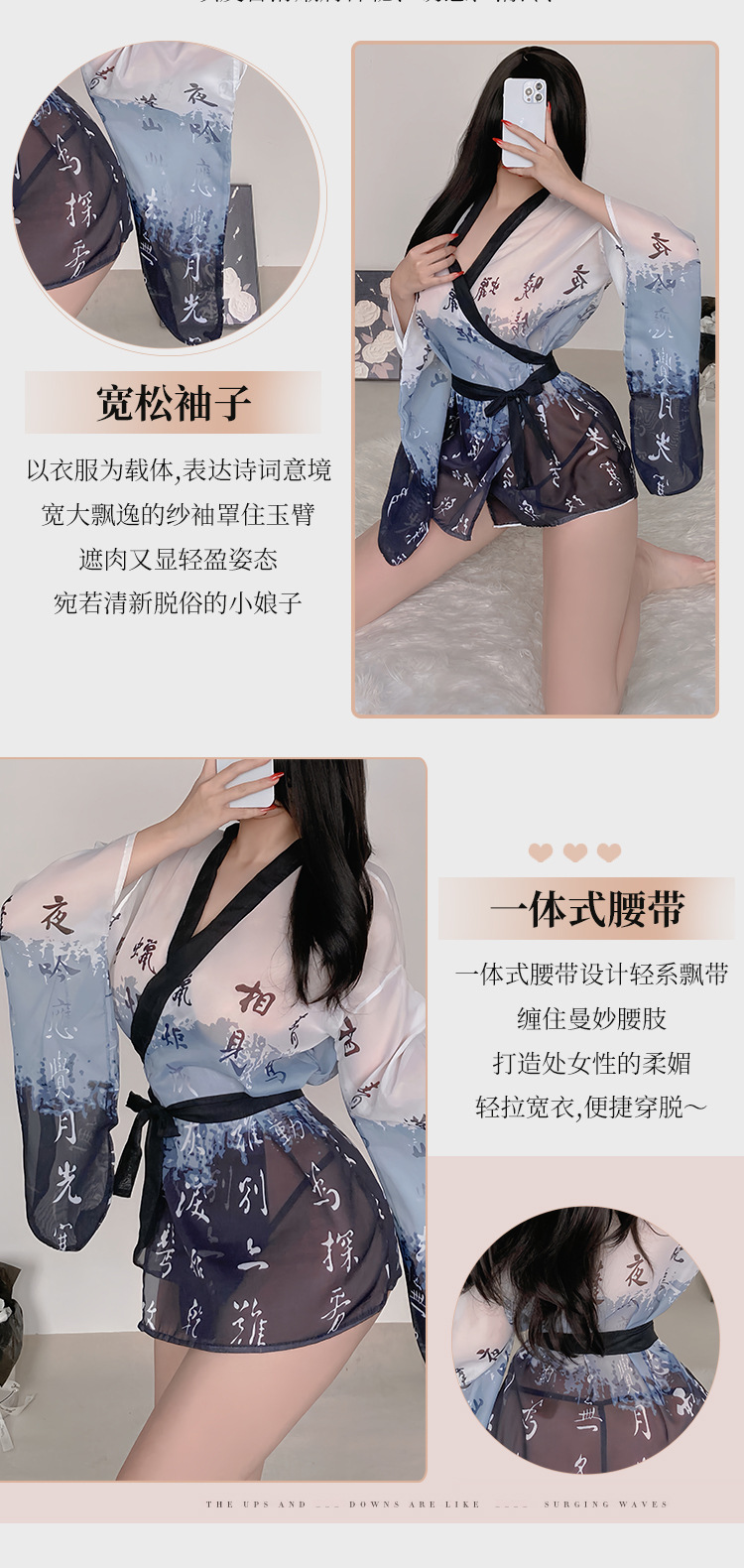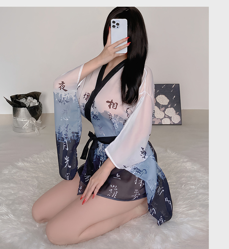 정취 내의 잠옷 일본식 기모노 정복 세트 정취 용품 고풍 중국식 목욕가운 대 사이즈