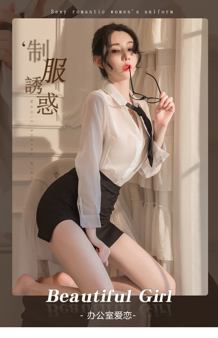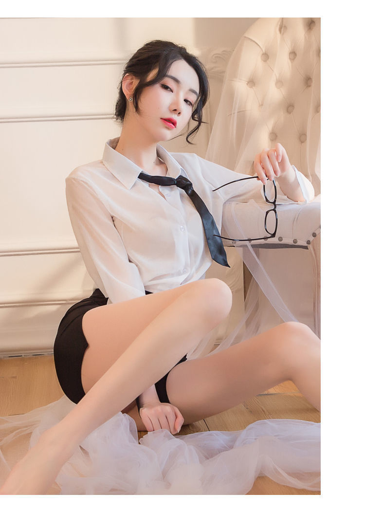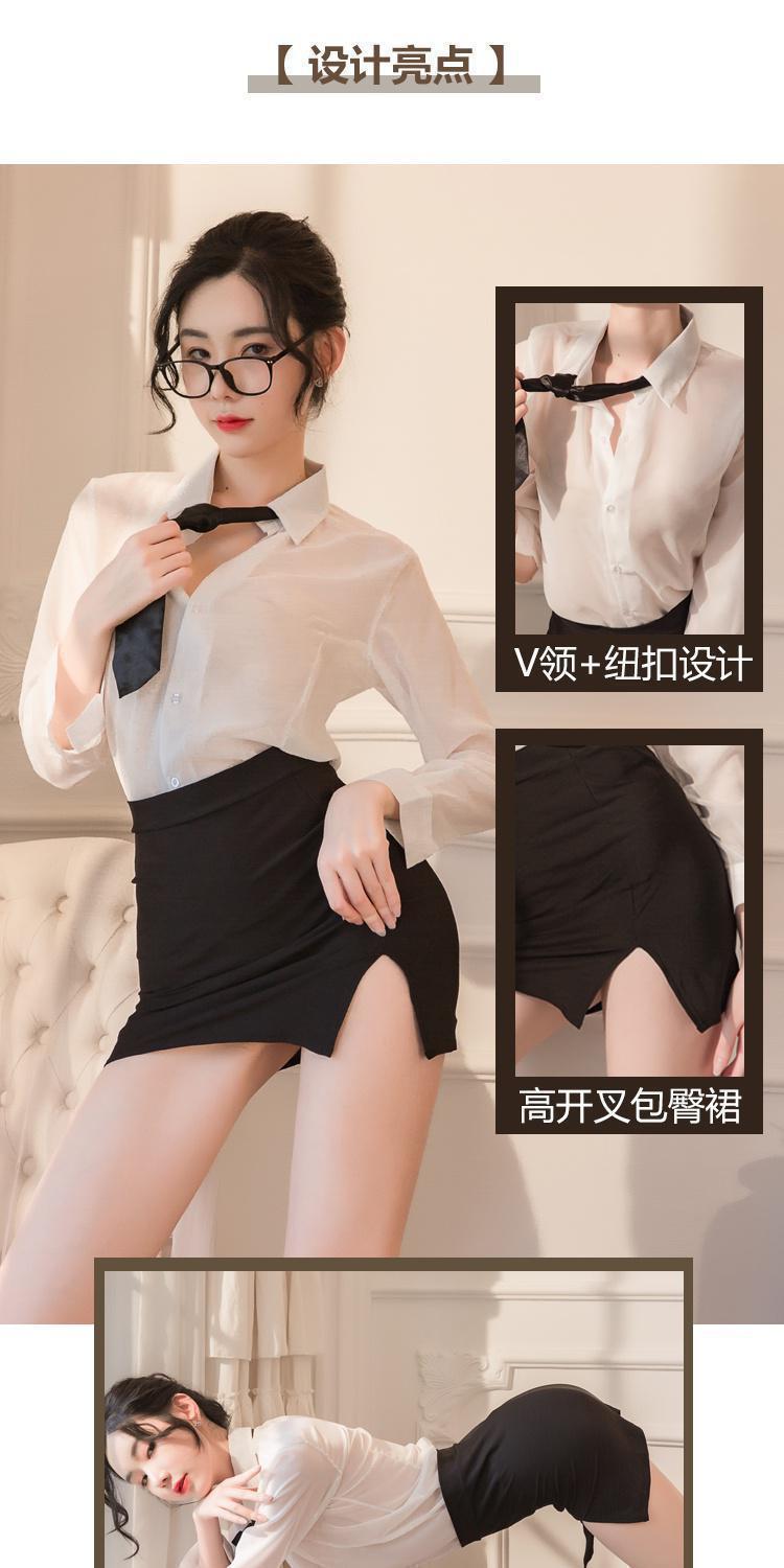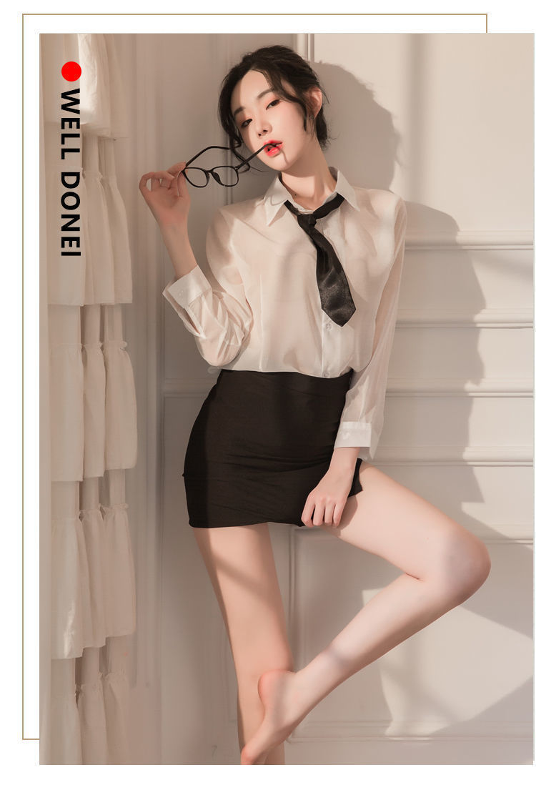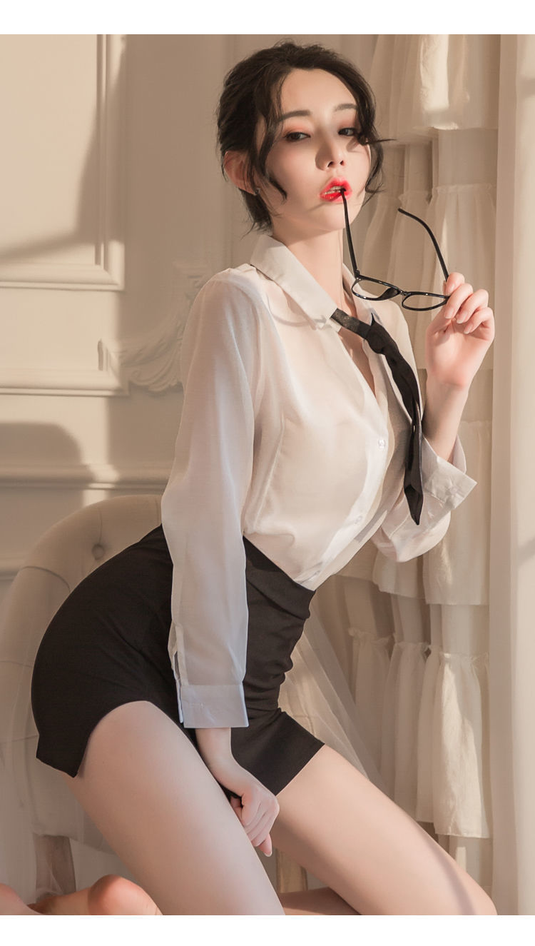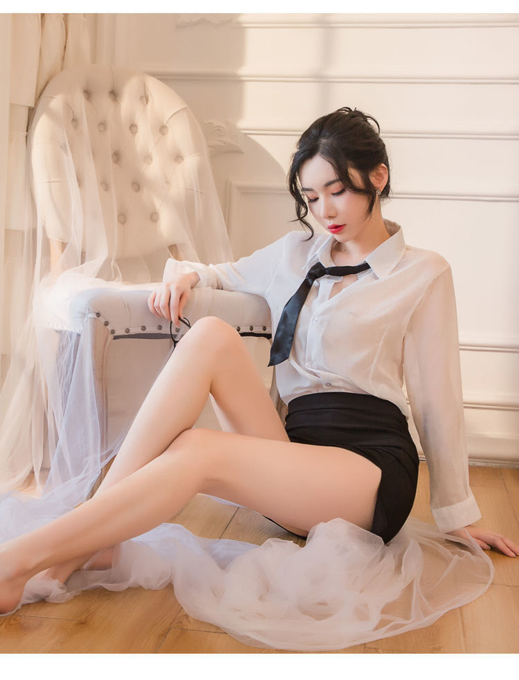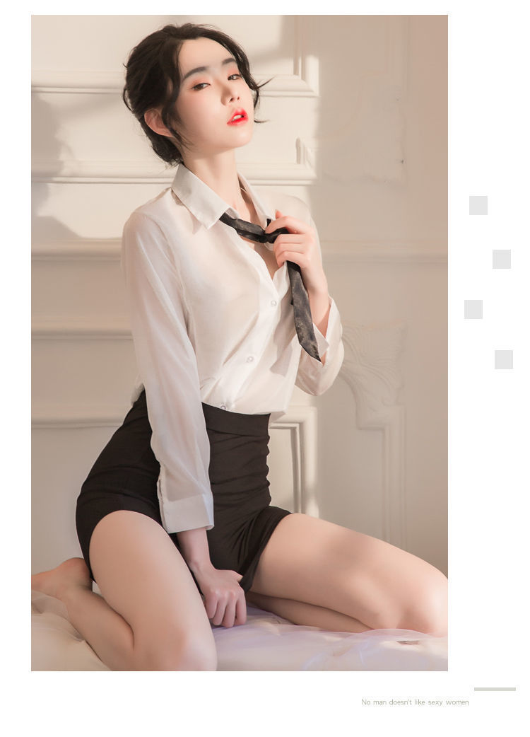 섹시한 속옷 섹시한 흰 셔츠에 엉덩이를 감싸는 타이트한 비서 유니폼 시스루 글래머 파자마