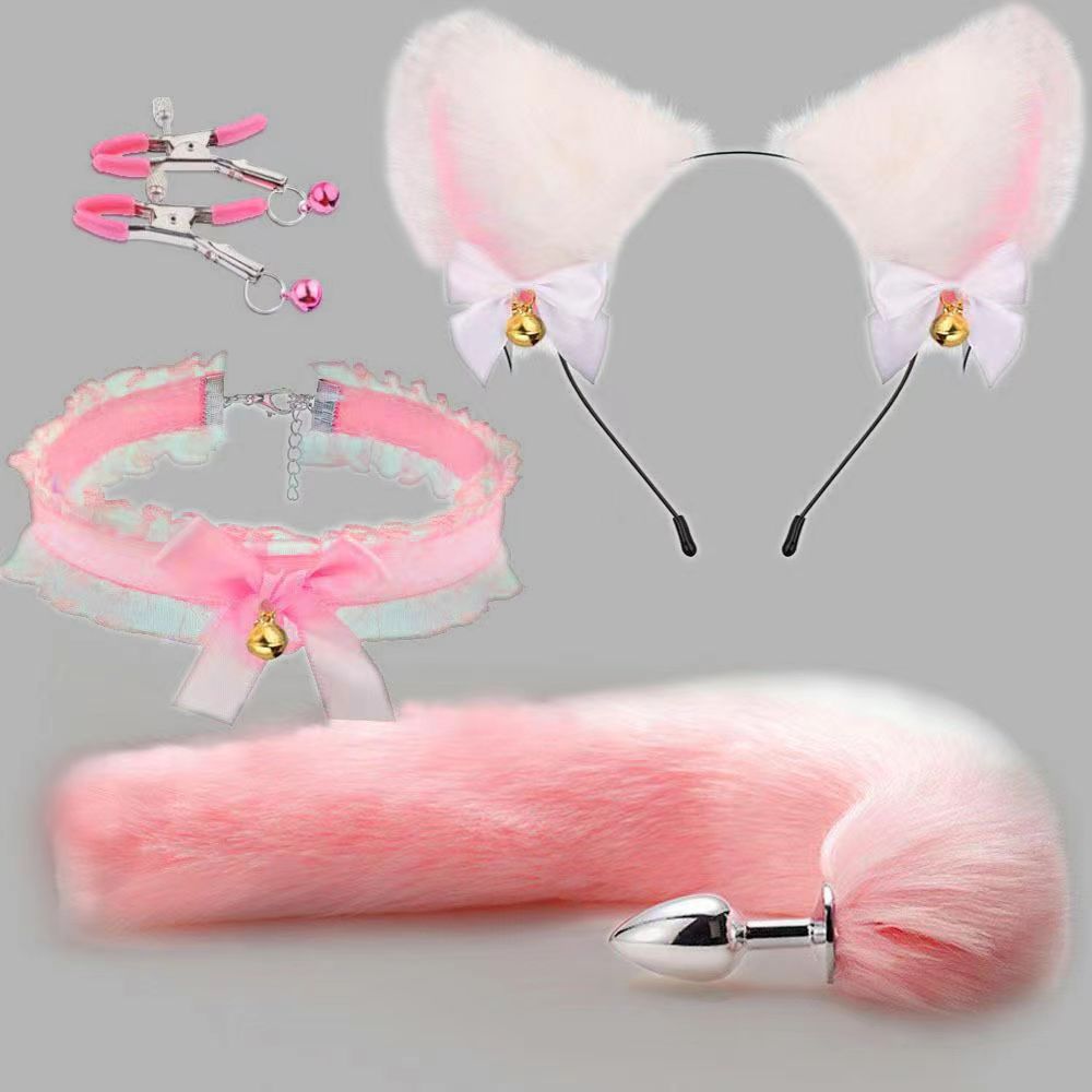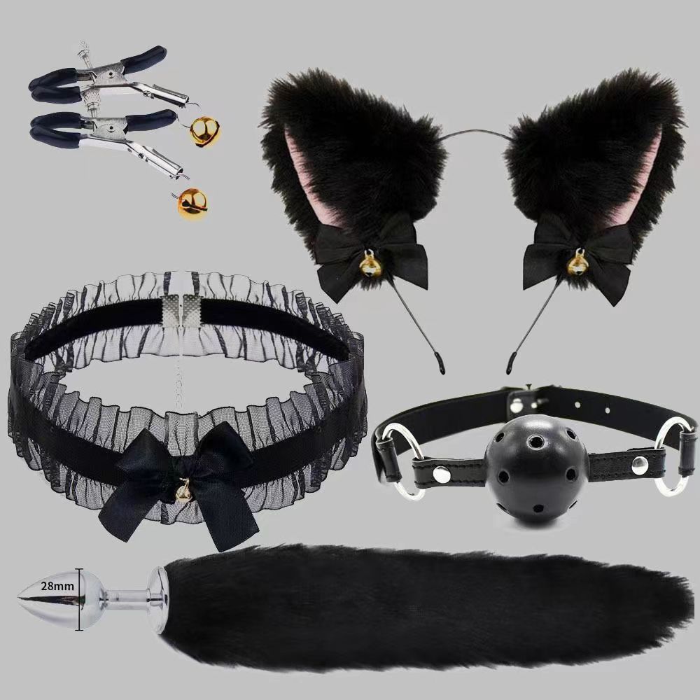 취미 도구 항문 마개 여우 뒷면 꼬리 목걸이 성인 성애 용품 고양이 머리띠 sm 뒷면 세트