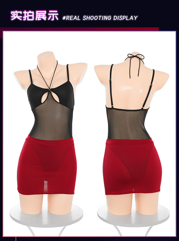 섹스 란제리 민소매 레이스 섹시 홀터넥 펀칭 스타킹 전신 망사 섹스 용품 8961