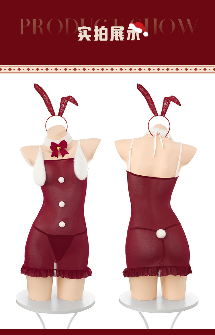 섹시 란제리 크리스마스 밀크 커버 토끼는 섹시하고 순수한 엉덩이를 감싸는 스커트로 섹시한 시스루 가슴을 드러내 유혹한다