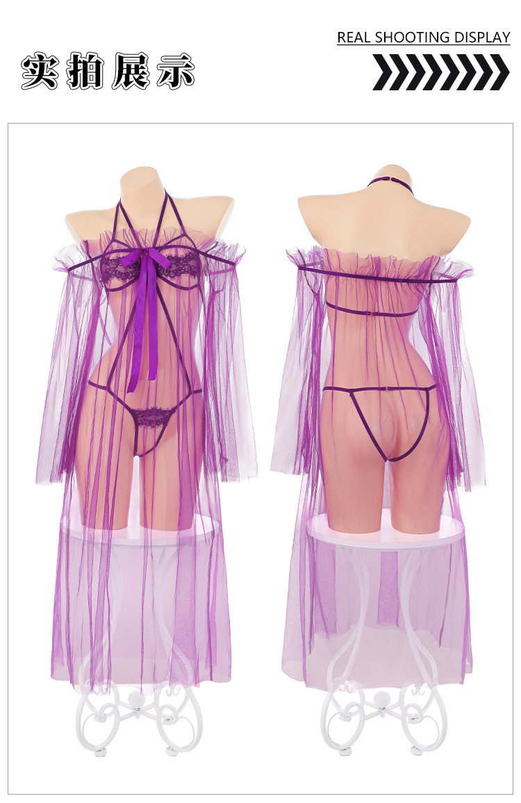 섹스 란제리 보라색 몽롱한 시스루 가랑이 정장 섹시 치렁치렁한 가슴이 드러나는 잠옷