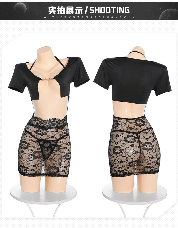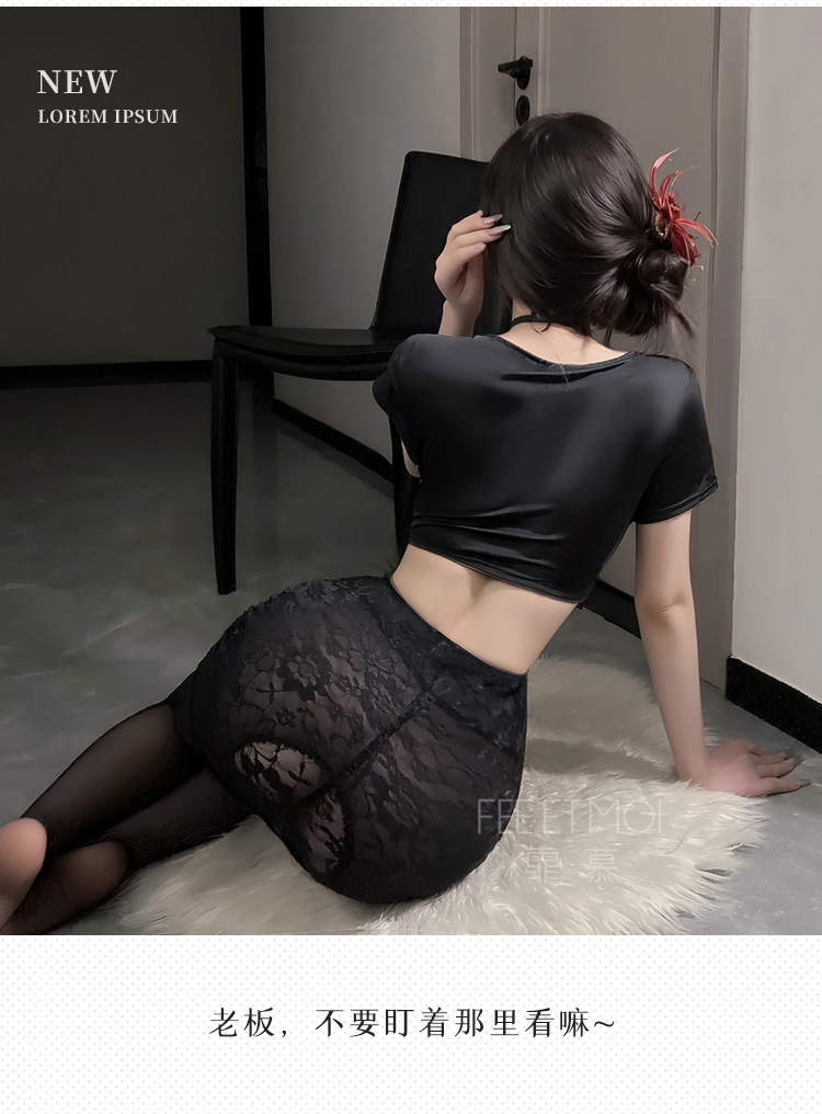 섹시한 속옷 시스루 레이스로 엉덩이를 감싸는 비서 제복 섹시한 섹시 섹시 가슴이 드러나는 잠옷 세트