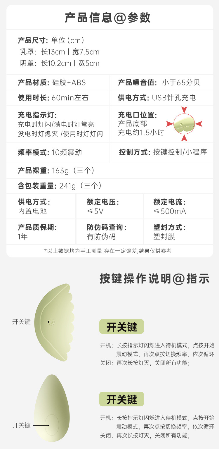 产品尺寸(cm):乳贴13*7.5 阴罩长10.2 cm宽5cm厚2.7cm