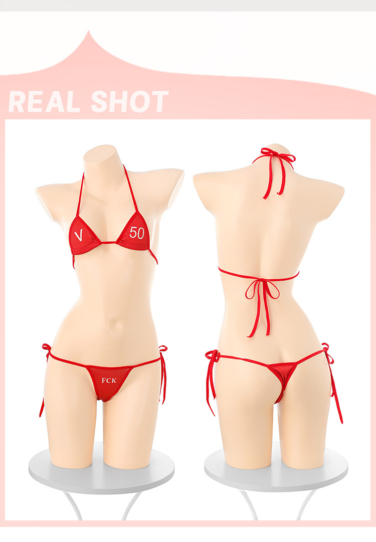 섹시한 속옷 미니 비키니 세 가지 세트 가슴 드러내고 치렁치렁하다