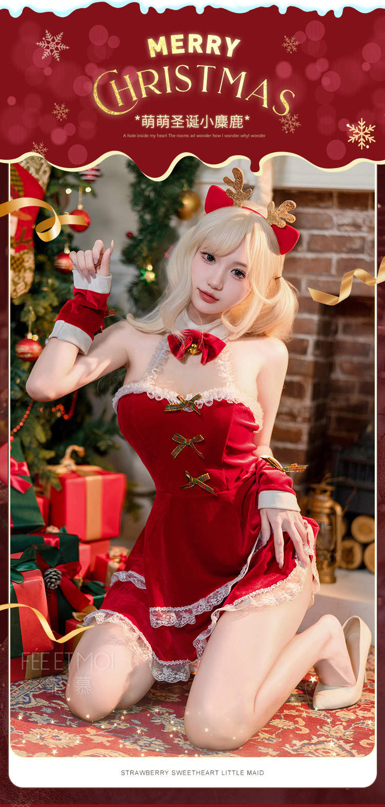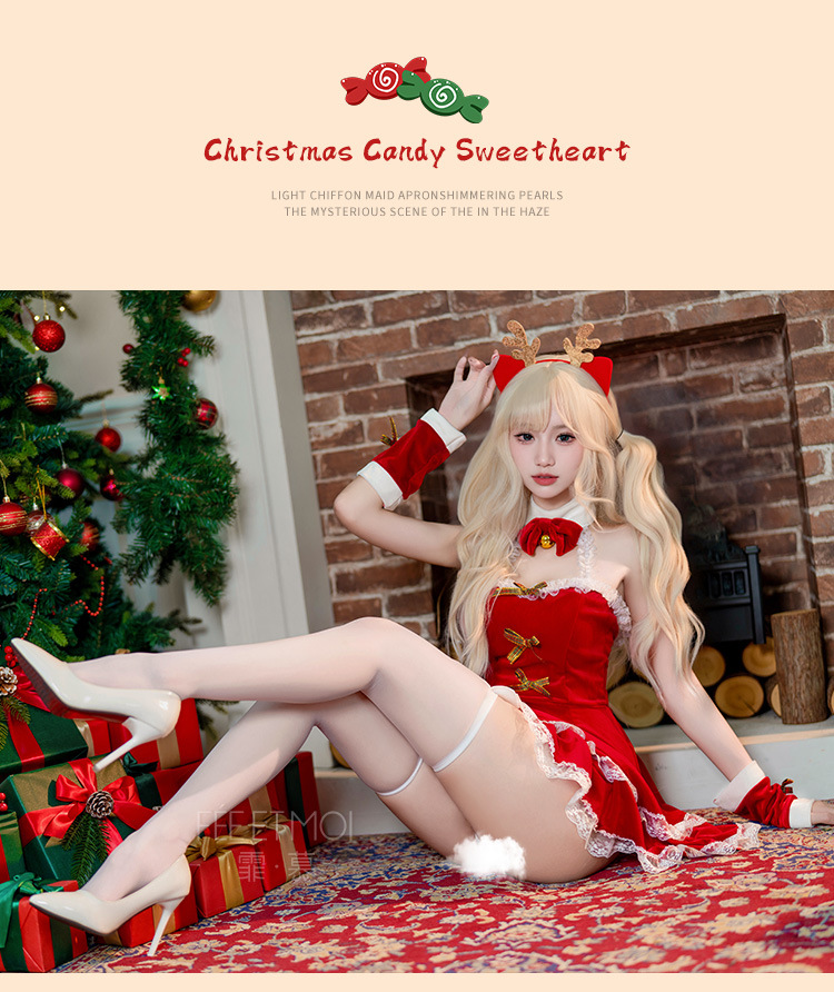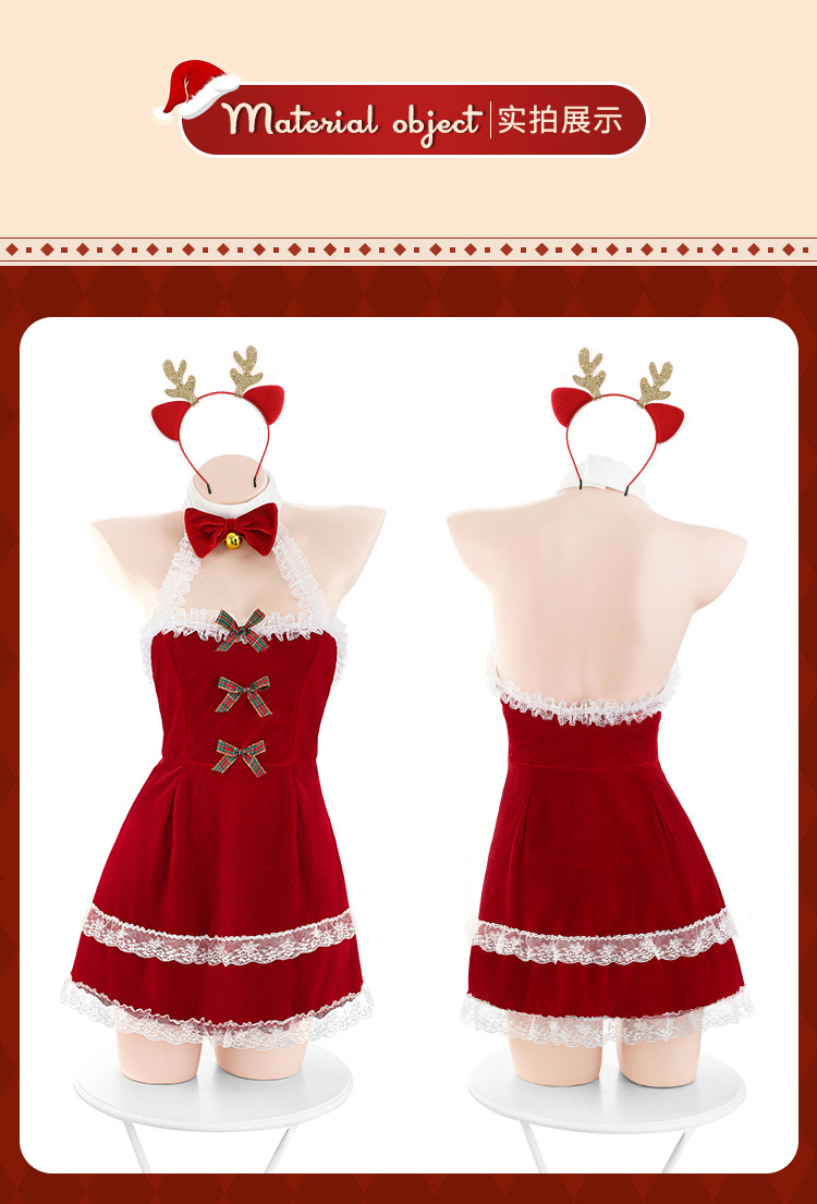 감성 란제리 크리스마스 세트 벨벳 튜브탑 슬리브 누드 홀터넥 섹시한 잠옷