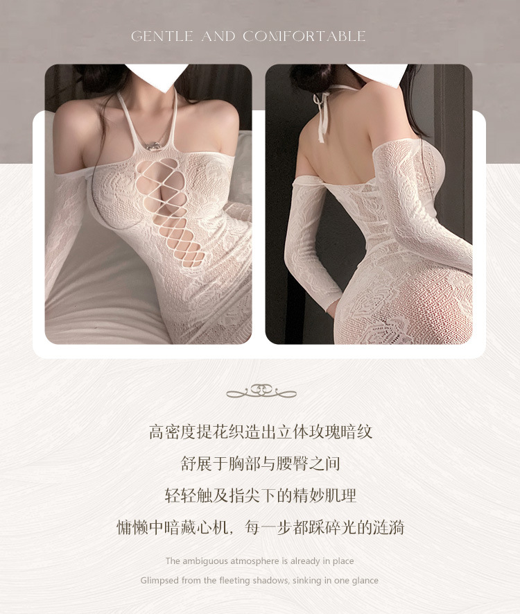 섹스 란제리 민소매 레이스 섹시 홀터넥 펀칭 스타킹 전신 망사 섹스 용품 8961