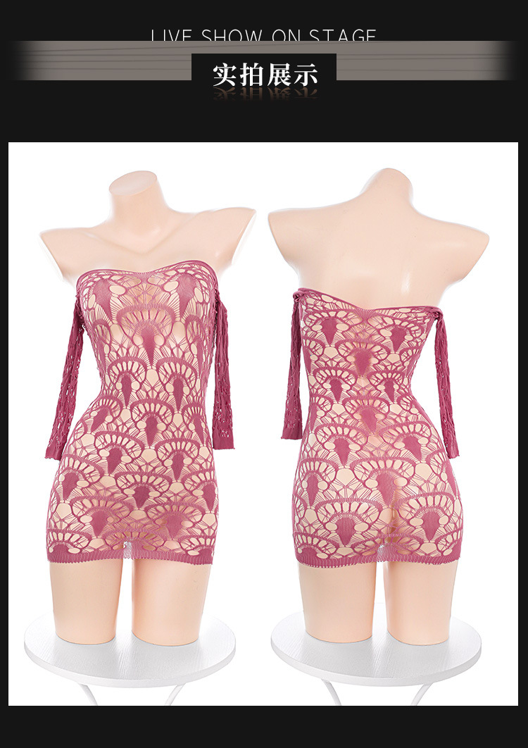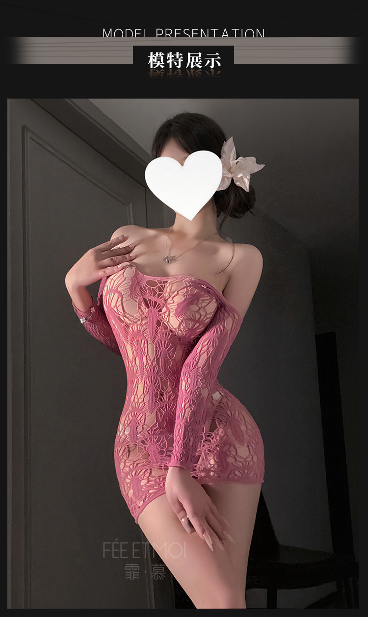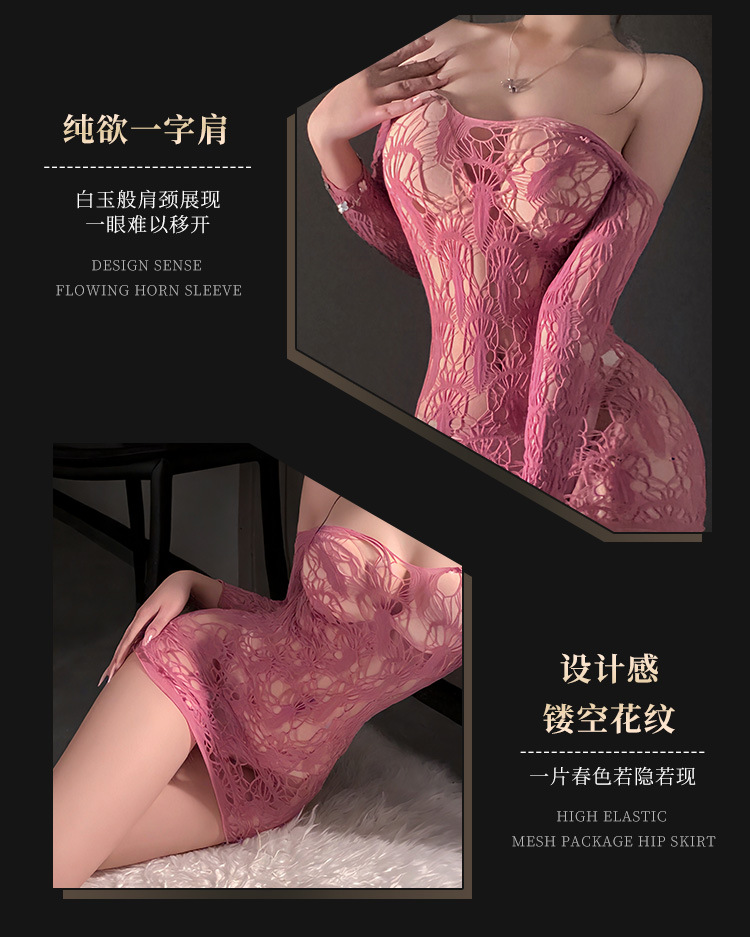 섹시한 속옷의 매혹적인 일자 어깨 펀칭 원피스 망사 섹시한 시스루 가슴이 드러나 엉덩이를 감싸준다