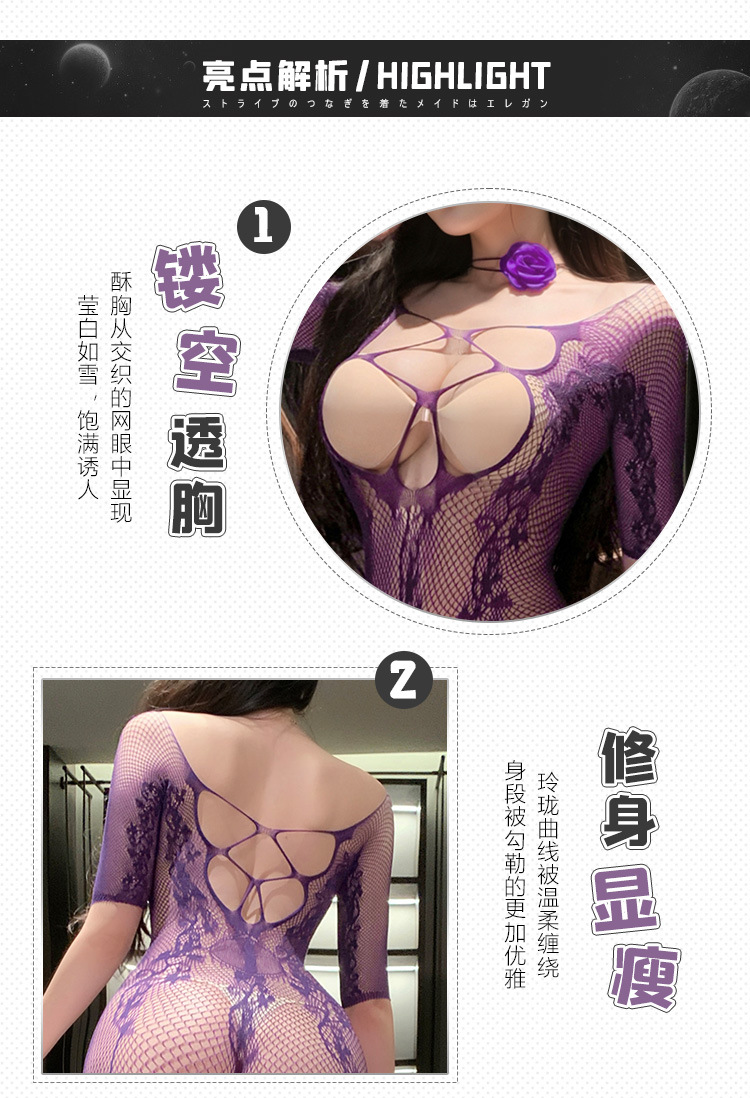 자카드 상체, 펀칭 가랭이, 망사 스타킹 매혹적인 속옷 섹시하고 순수한 블랙 실크 드레스