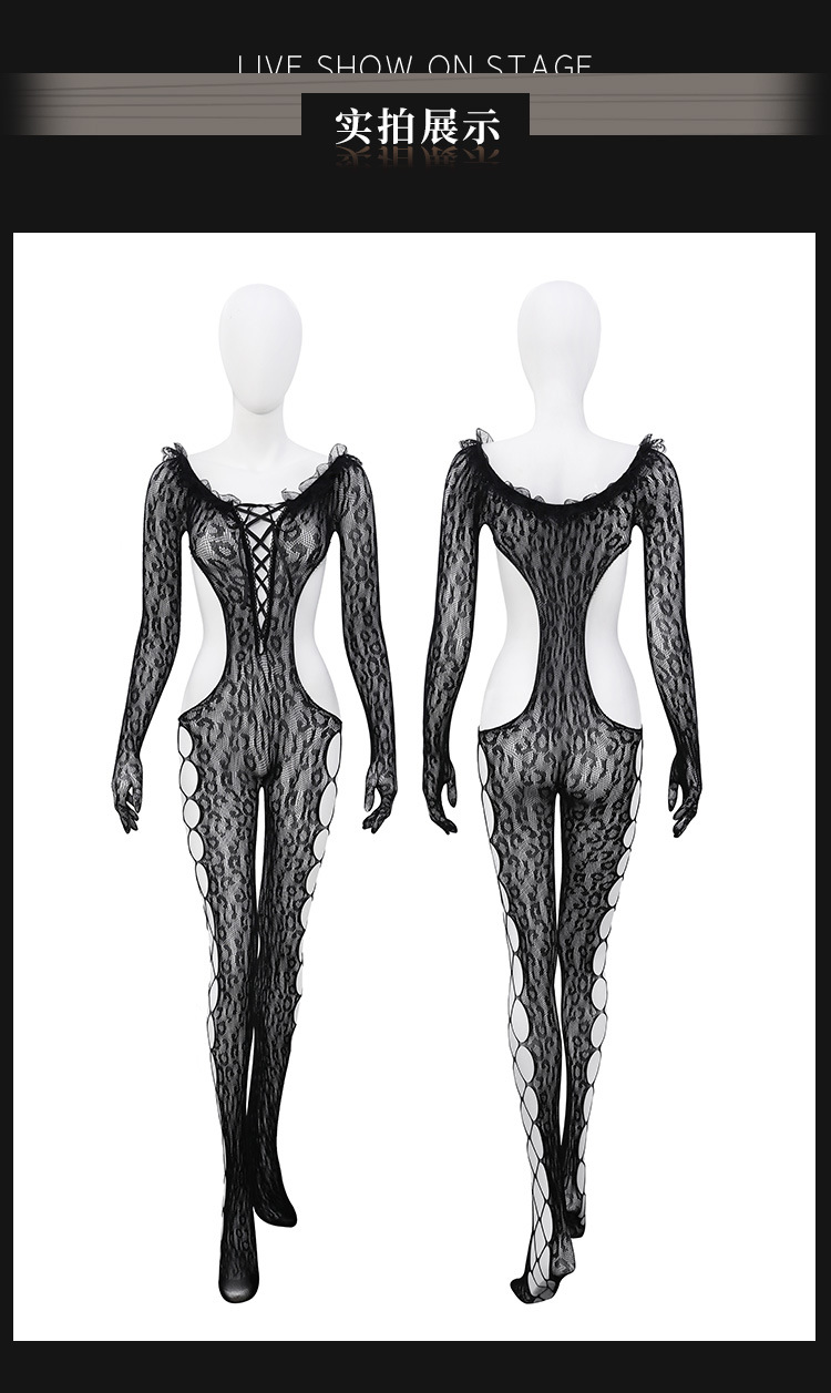 섹시 란제리 섹시 호피 무늬 찢을 수 있는 망사스타킹 섹시 시스루 오픈 히프 노출 망사복