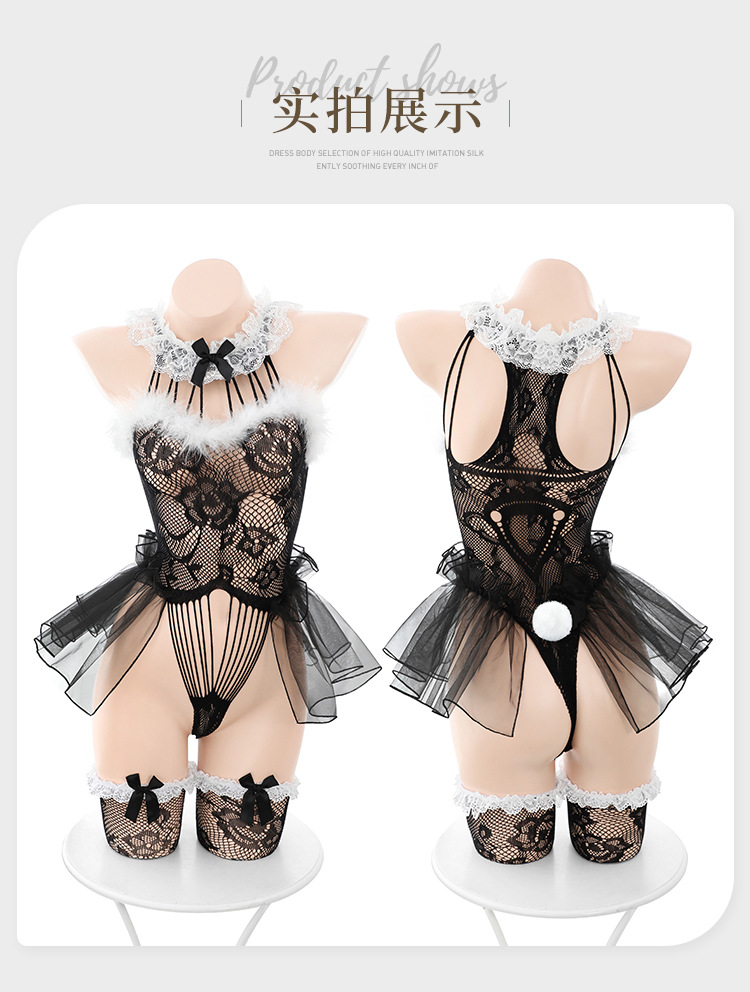 섹시 언더웨어 플란넬 래빗 가랑이 망사 유니폼 세트 섹시 시스루 가슴이 드러나는 6794