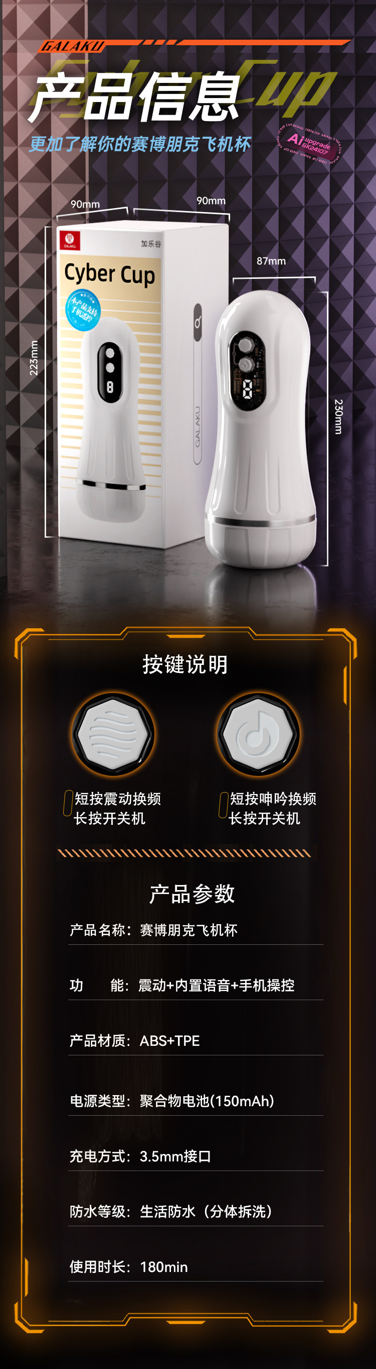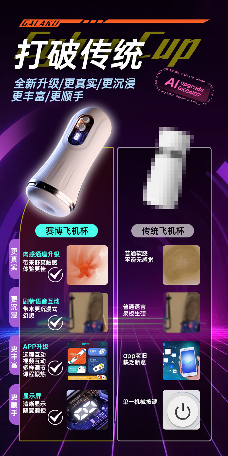 사이버펑크 비행기컵 ai 남성용 비행기컵 훈련기 자위컵 육감, 쌍점, 온도 조절 음성