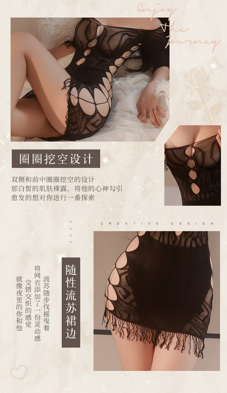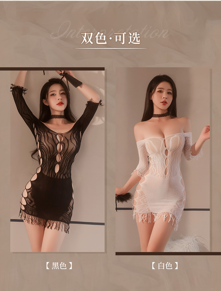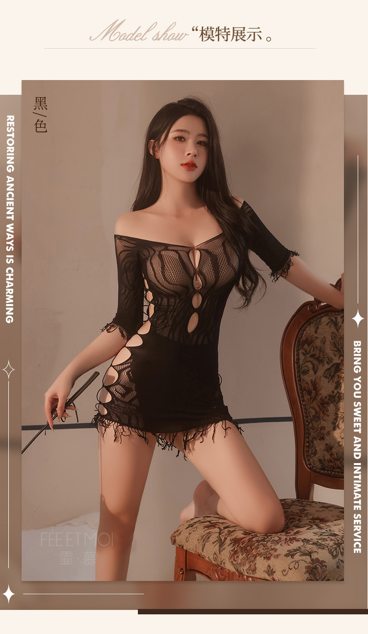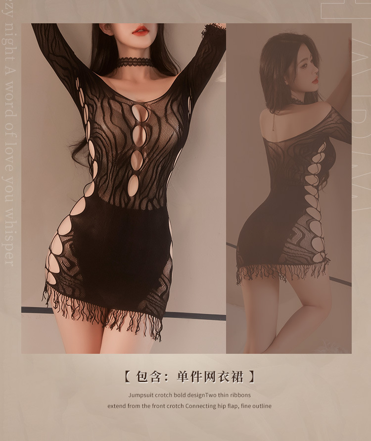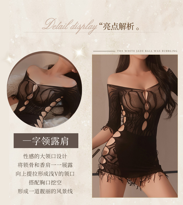일자 숄더 자카드 펀칭 그물 섹시 언더웨어 원피스로 섹시하게 성인 유혹